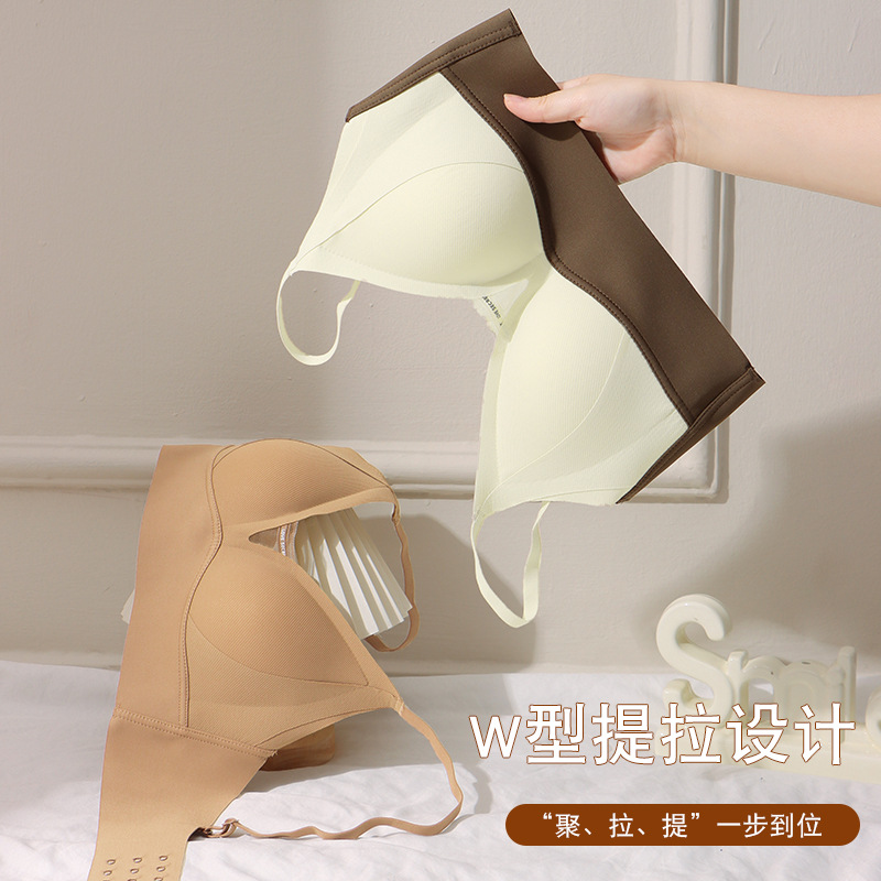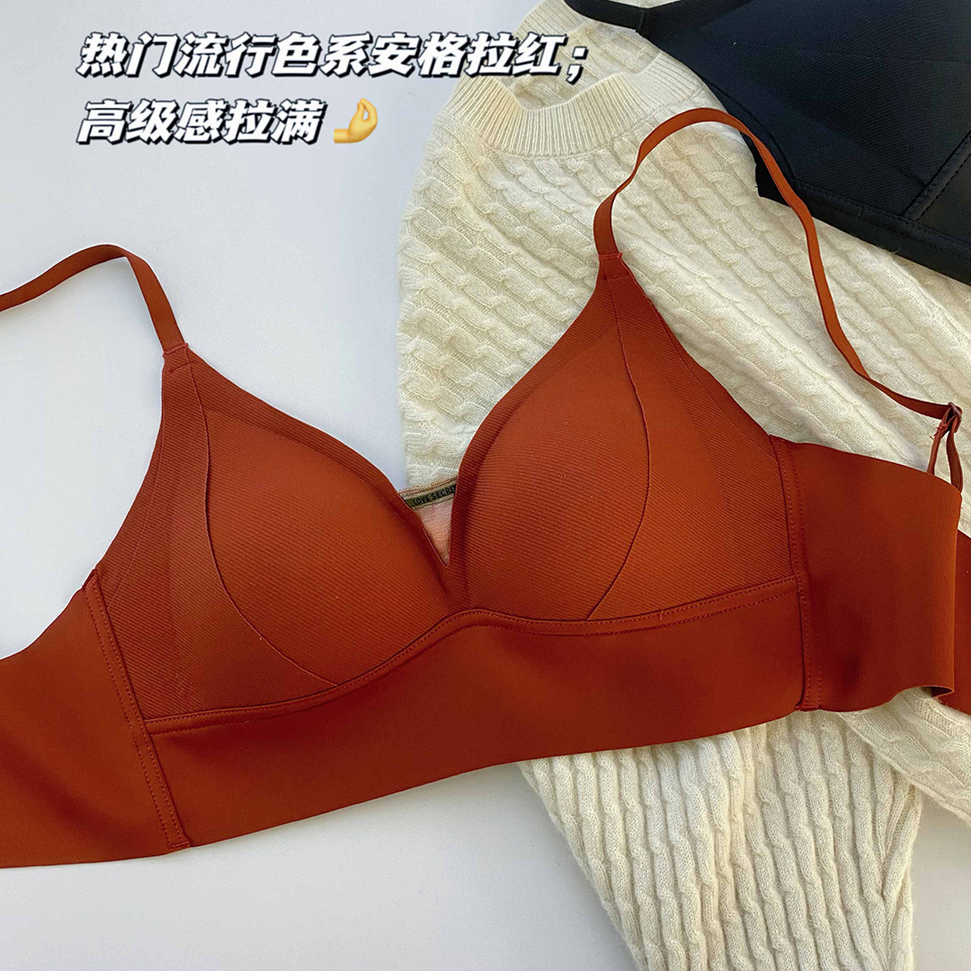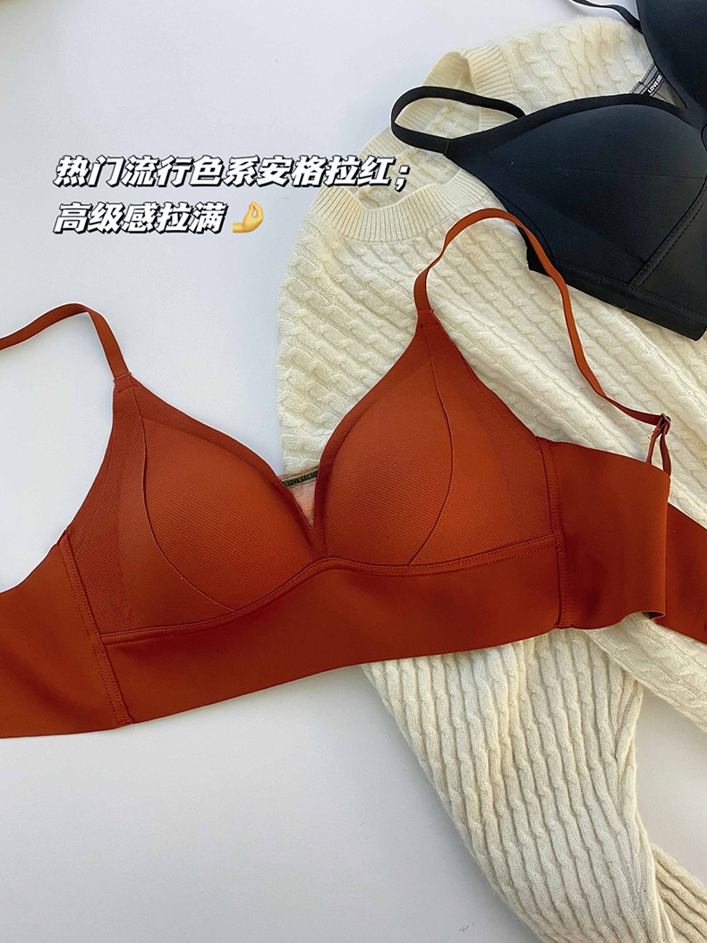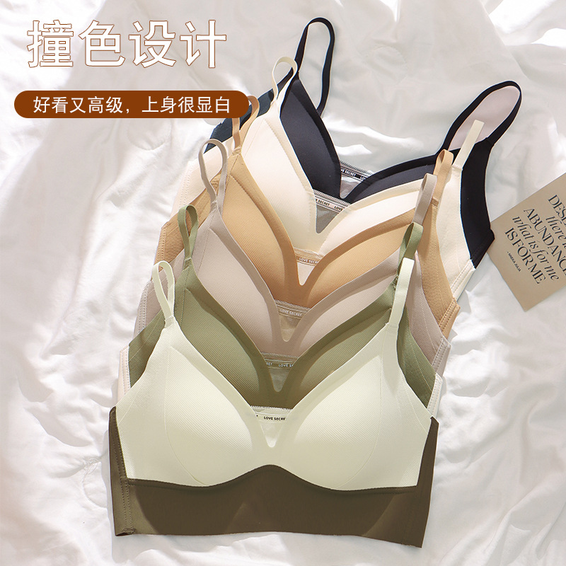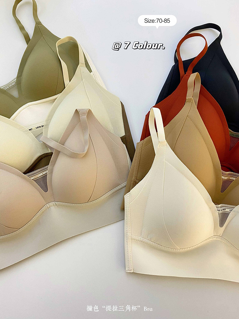 无痕法式三角杯时尚撞色性感文胸透气提拉薄小胸聚拢内衣女无钢圈