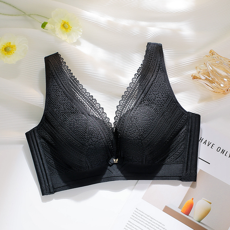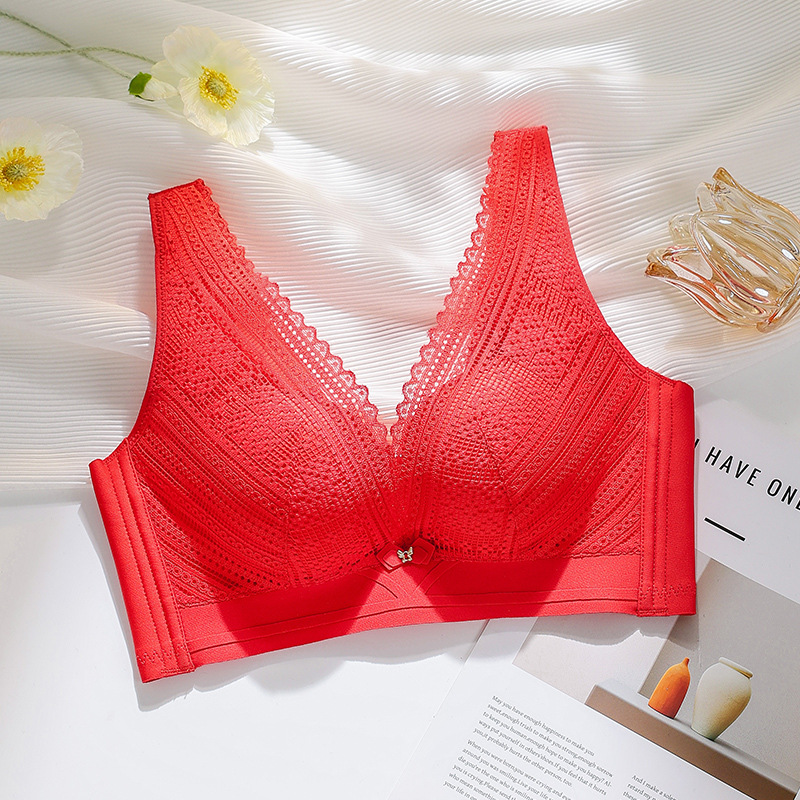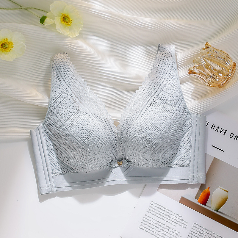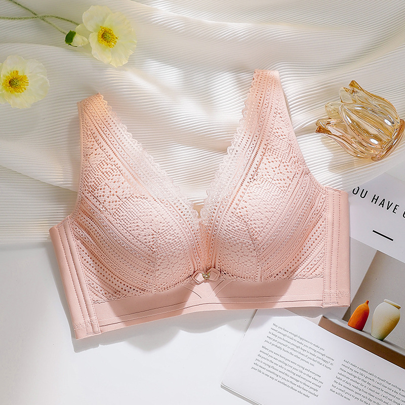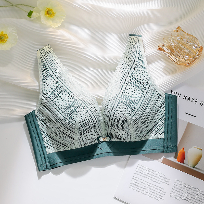 新款调整型乳胶棉文胸手掌型无钢圈蕾丝内衣女小胸聚拢透气收副乳