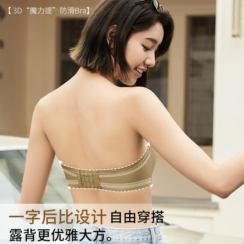 防滑文胸吊带小胸聚拢半杯光面防走光无肩带内衣女透气无钢圈胸罩