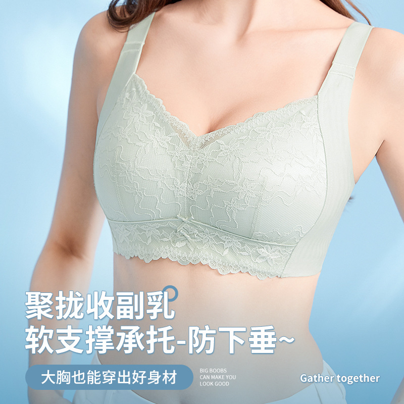 大胸显小纸片杯内衣女无钢圈无痕果冻胶软支撑胸罩舒适聚拢收副乳