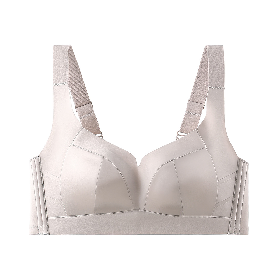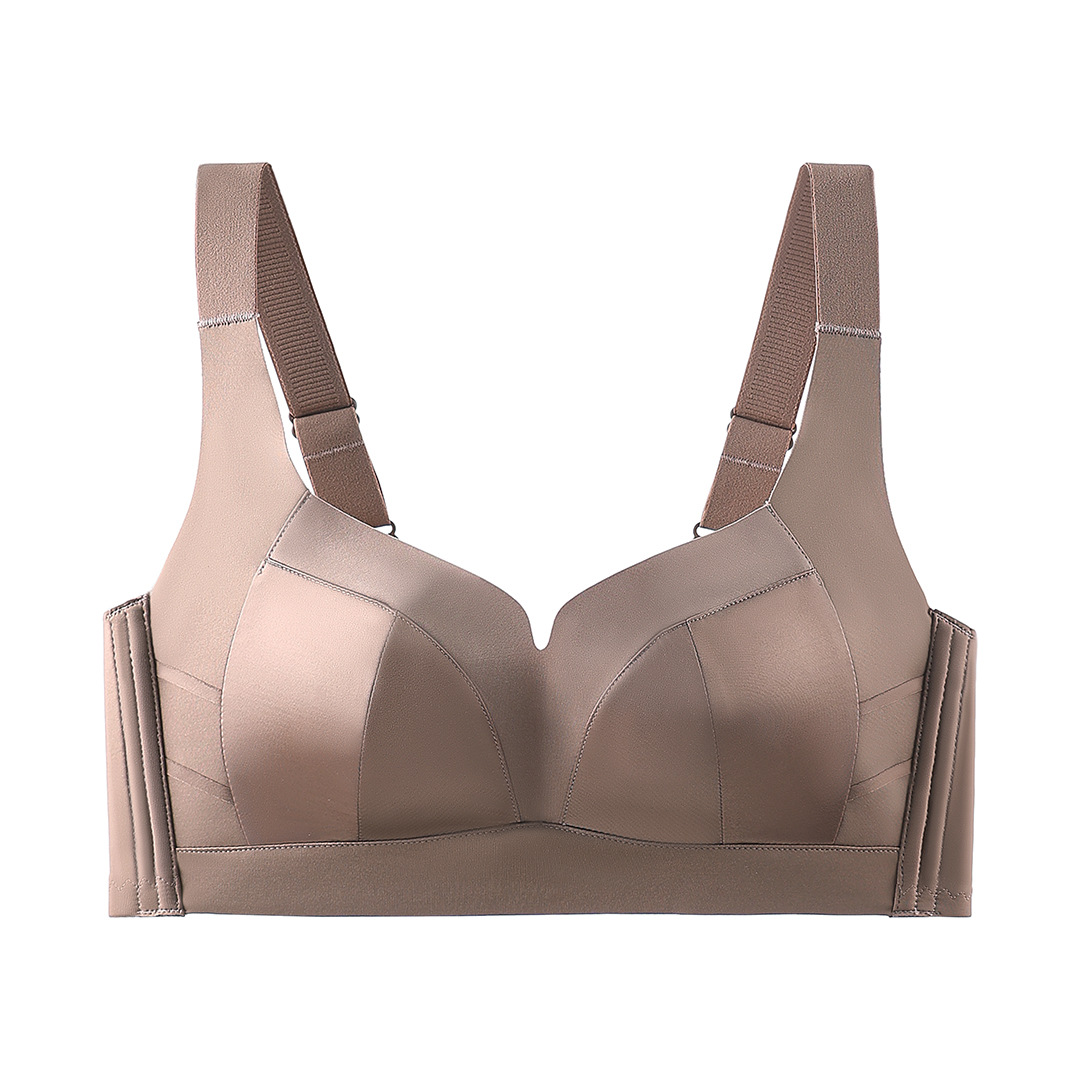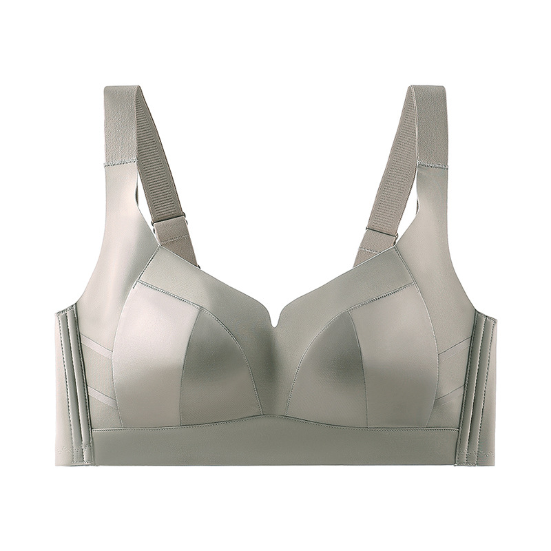 大胸显小聚拢乳胶内衣女光面文胸舒适无钢圈透气调整型收副乳胸罩