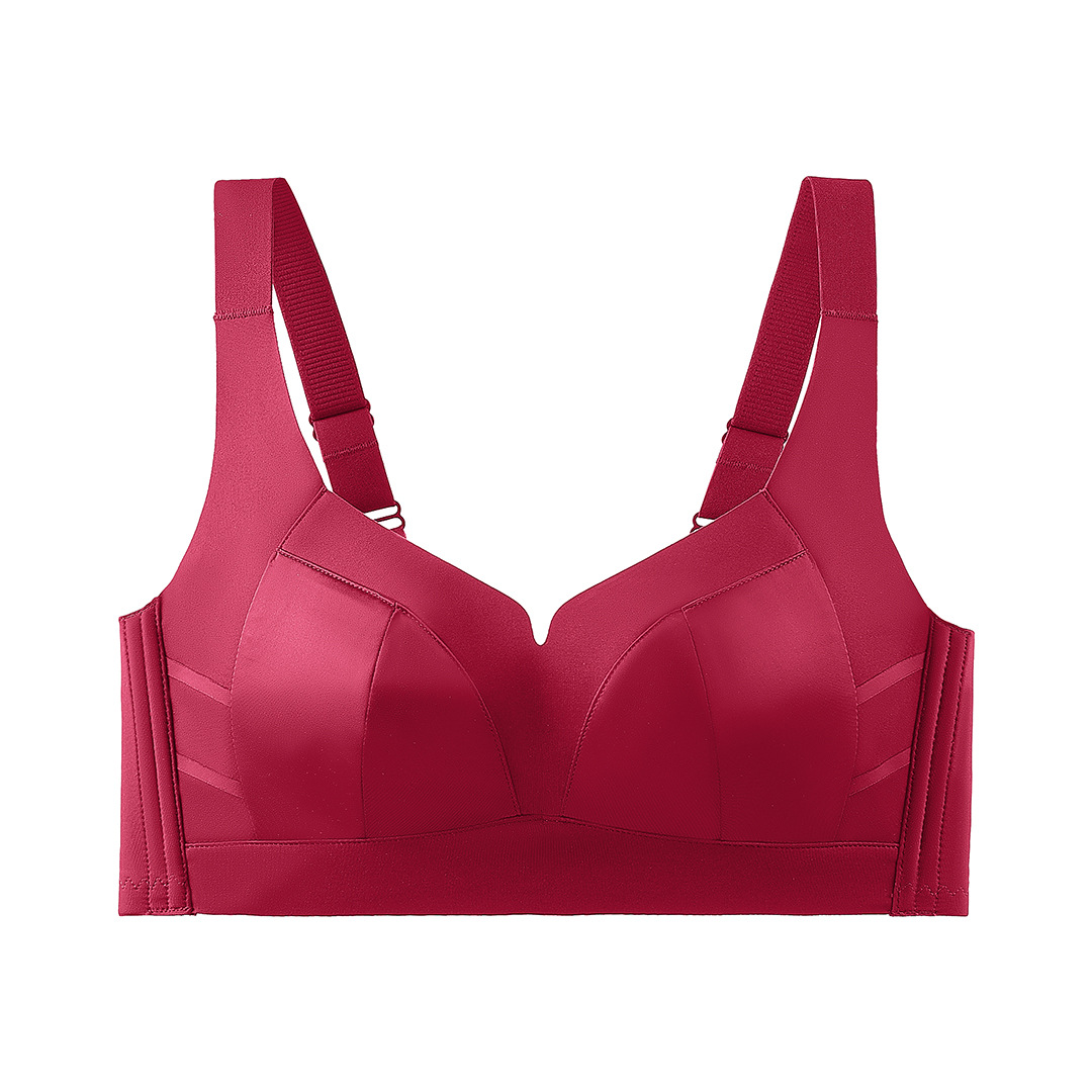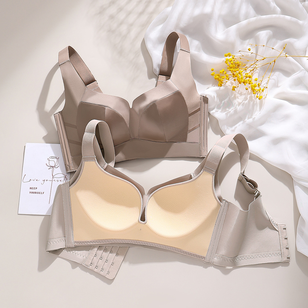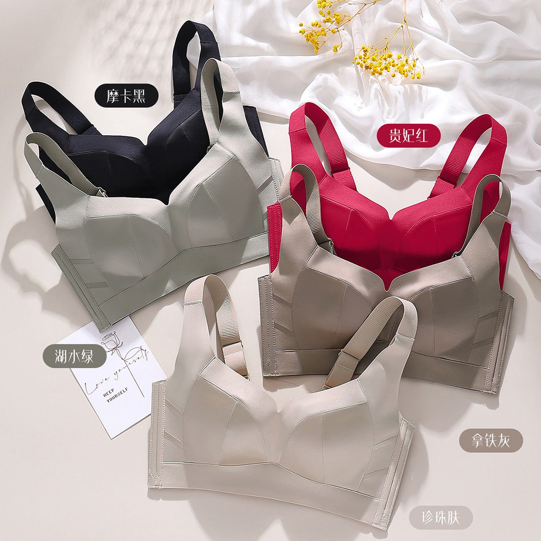 大胸显小聚拢乳胶内衣女光面文胸舒适无钢圈透气调整型收副乳胸罩