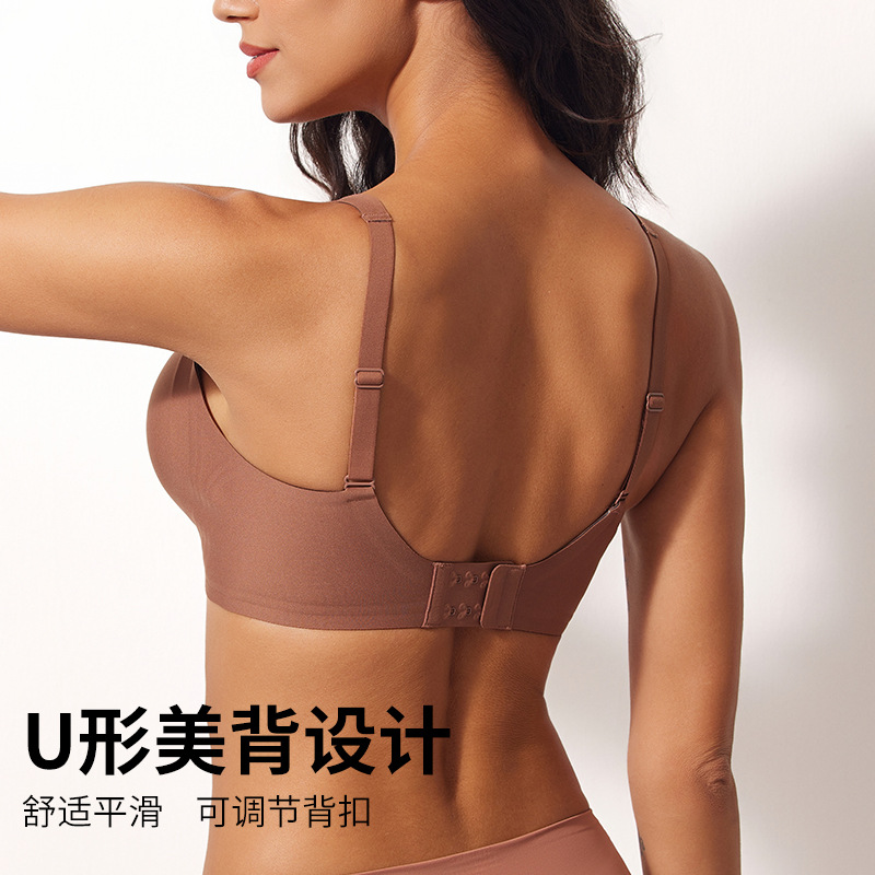 跨境外贸无钢圈亚马逊无痕果冻条内衣女大胸显小深V聚拢大码文胸
