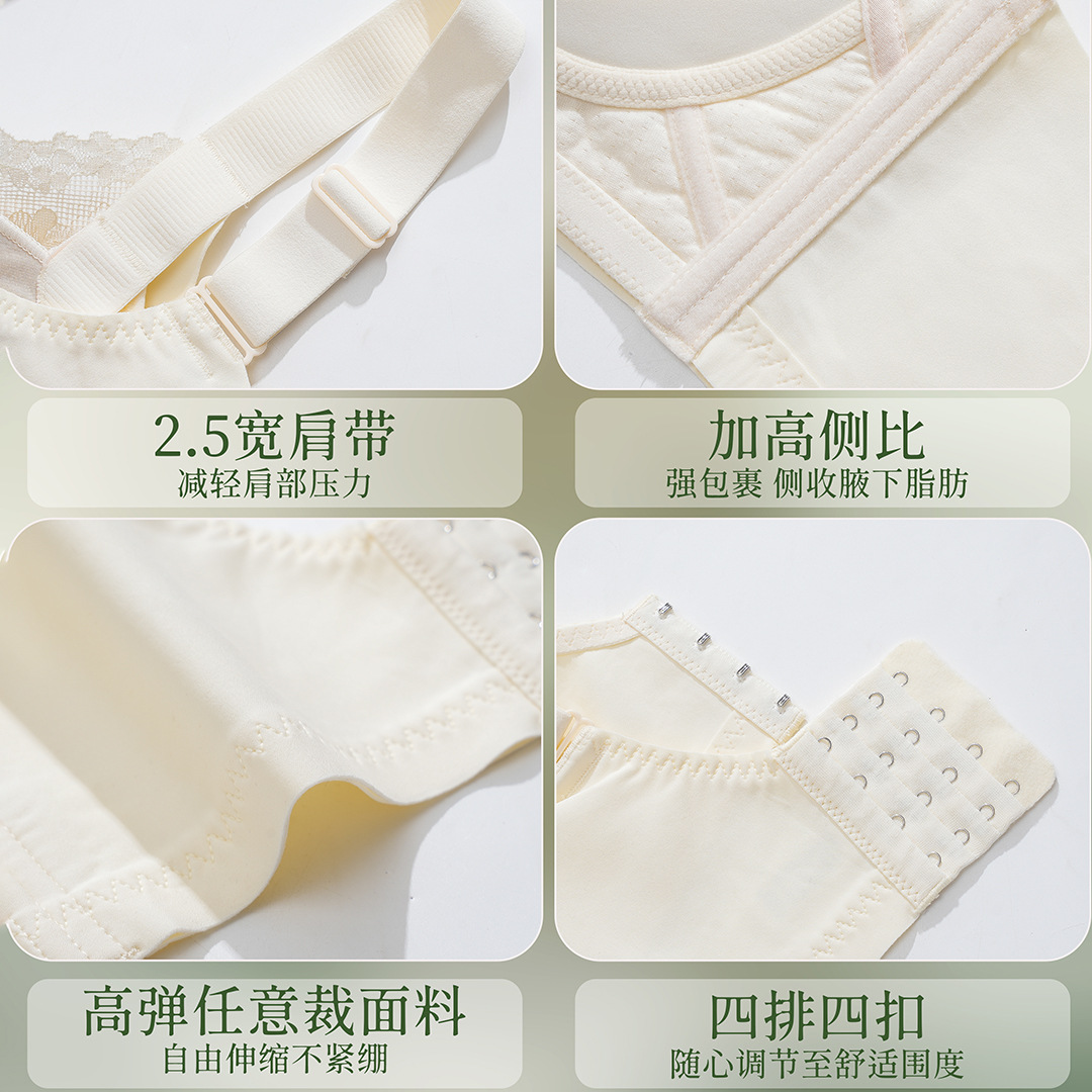 2025春夏内衣女无钢圈调整型性感蕾丝聚拢薄款文胸舒适收副乳胸罩