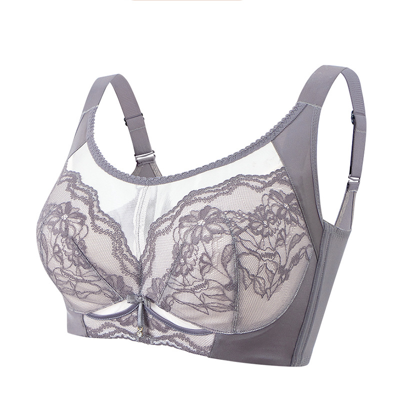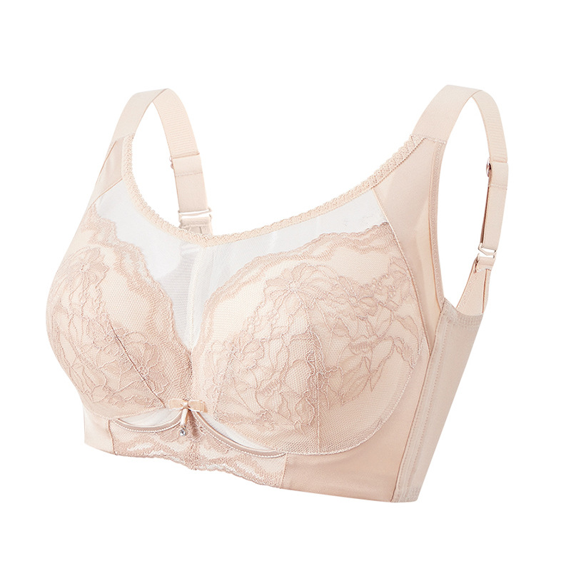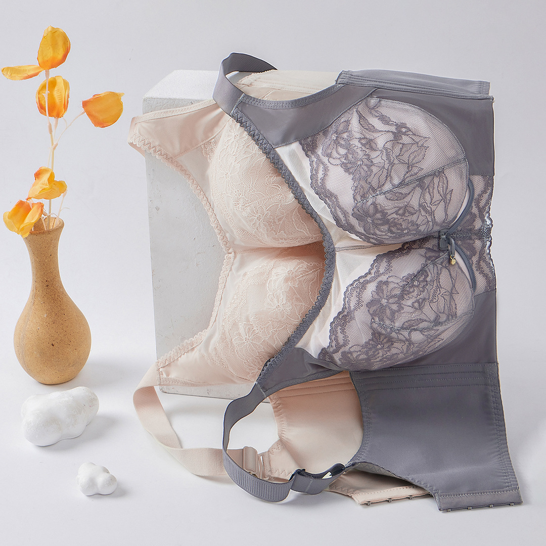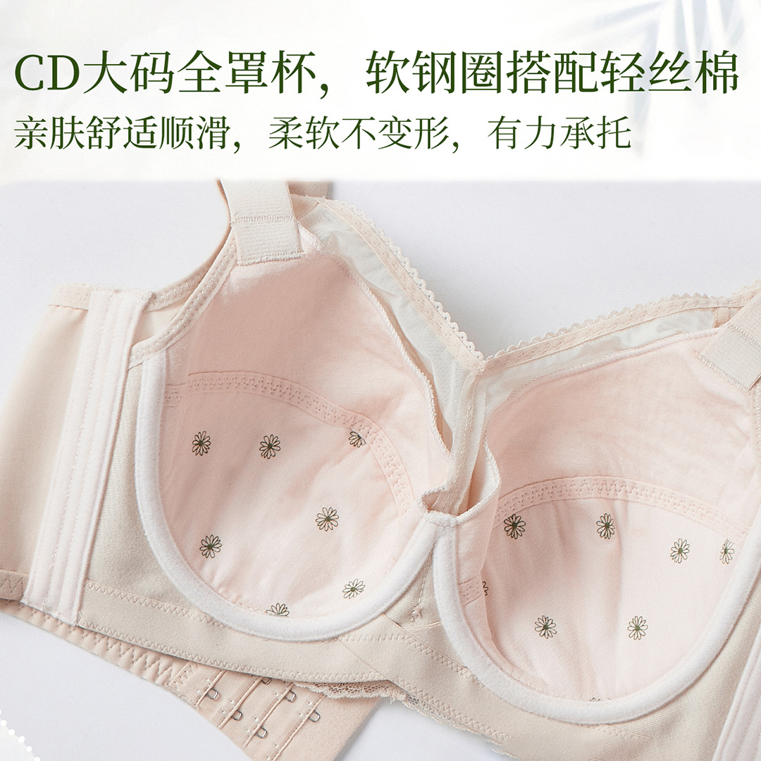 大胸显小薄款文胸全罩杯内衣女调整型聚拢透气收副乳大码蕾丝抹胸
