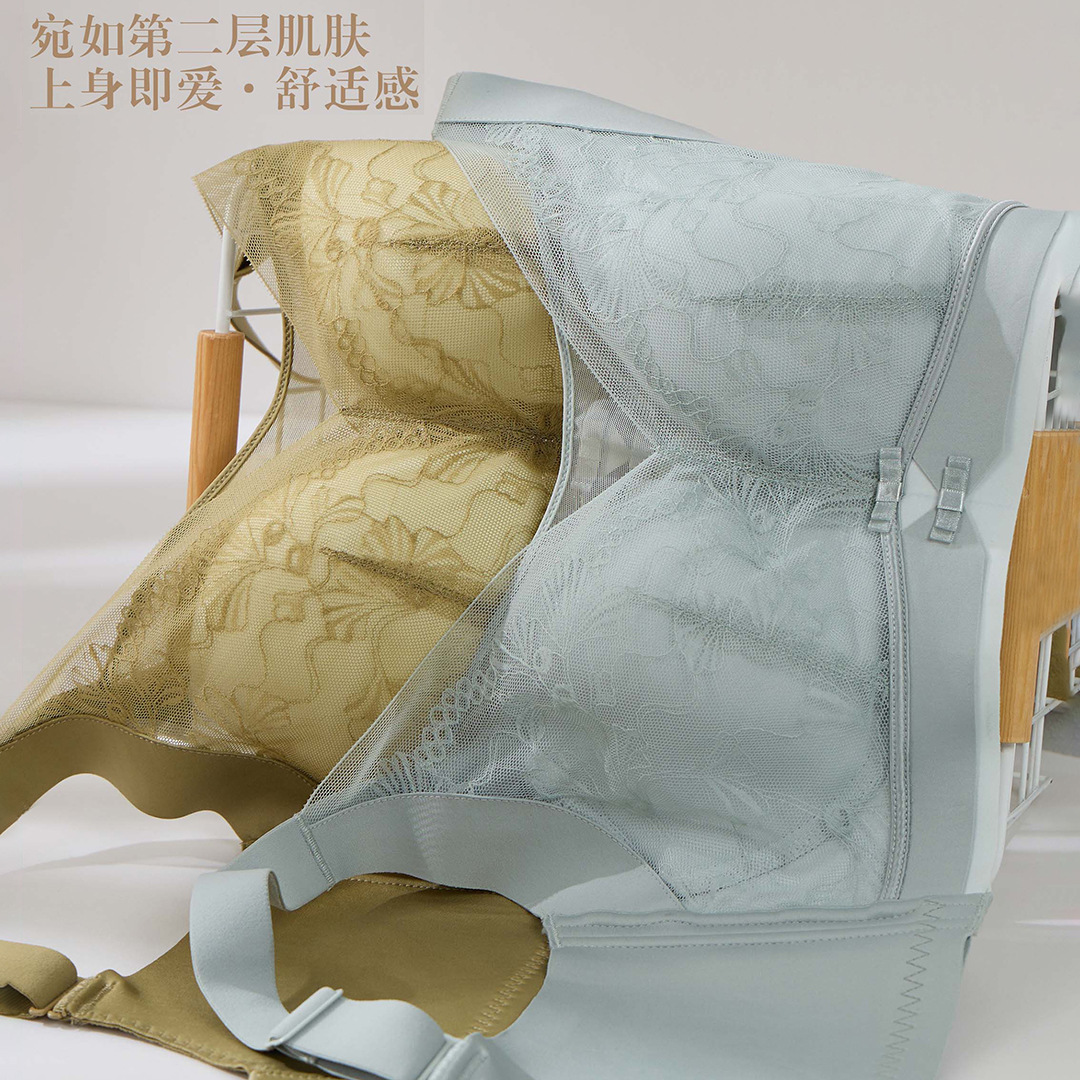 大胸显小内衣女透气三明治无钢圈超薄纸片杯聚拢抹胸收副乳文胸罩