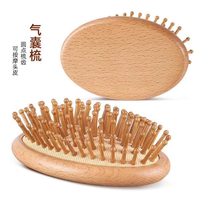 榉木椭圆气囊梳鸡蛋型顺发高弹气垫按摩梳圆润梳齿不卡发直发梳
