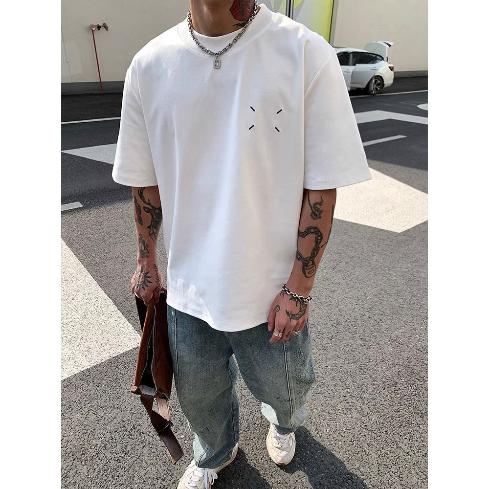 夏季新款美式ins潮牌简约纯色短袖T恤男宽松设计感纯棉上衣