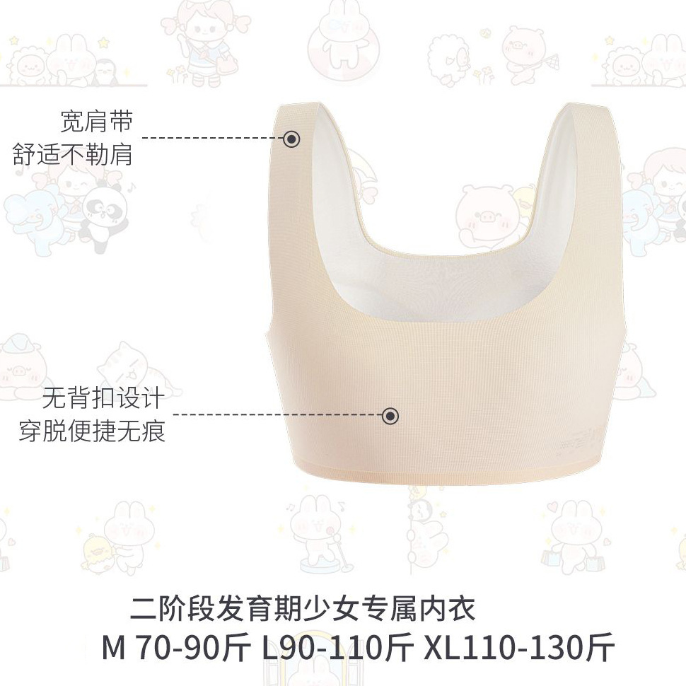 新款二阶段少女发育期内衣宽肩带无痕固定杯薄背心式少女文胸