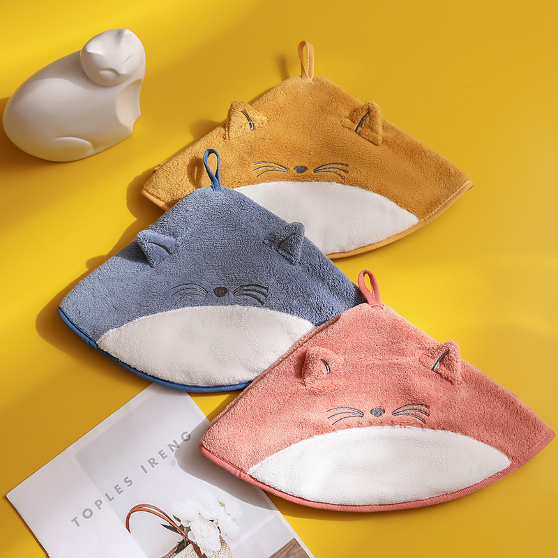 可爱动物艾米猫擦手巾厨房挂式珊瑚绒吸水毛巾浴室两用洗脸巾跨境
