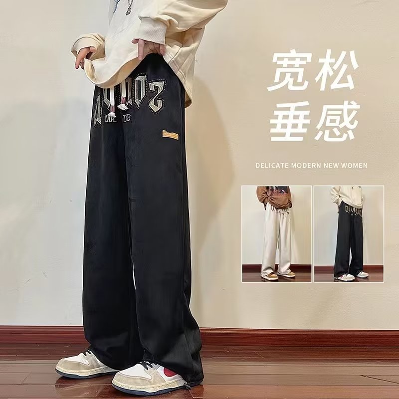 美式原创麂皮裤子男高街ins潮牌卫裤春秋季宽松直筒阔腿休闲长裤