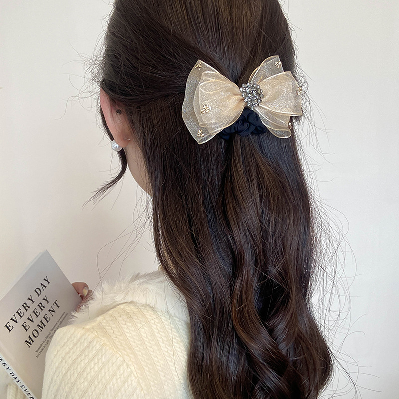 水钻蝴蝶结头绳女夏季扎头发皮筋发圈高级感欧根纱发绳丸子头发饰