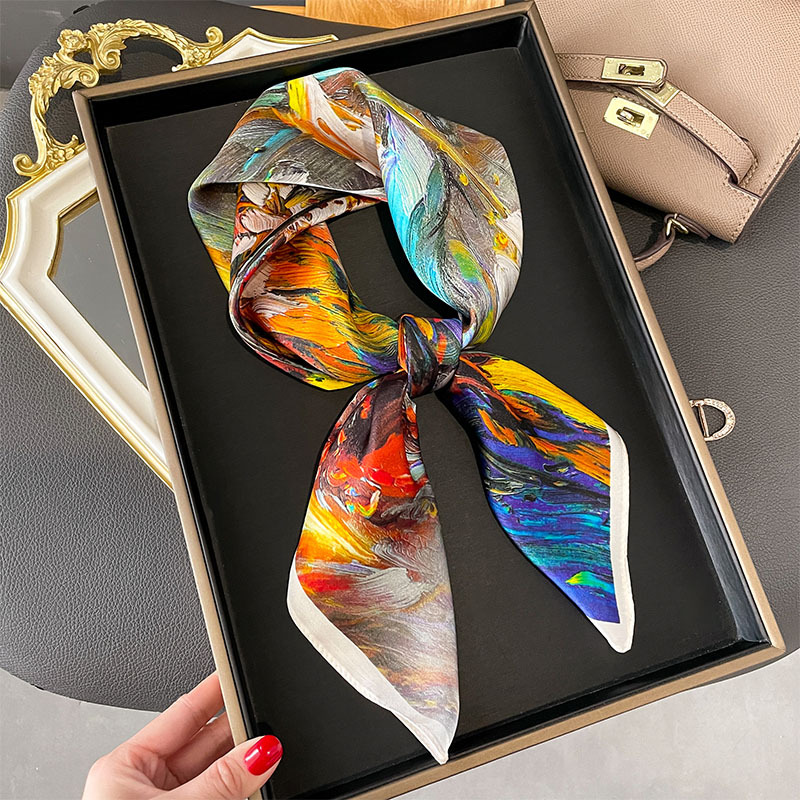 新款彩色油画百搭印花真丝70小方巾时尚装饰桑蚕丝丝巾母亲节礼品