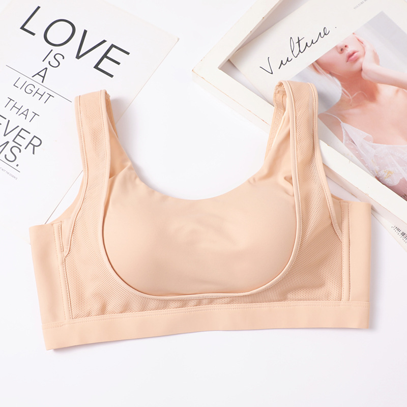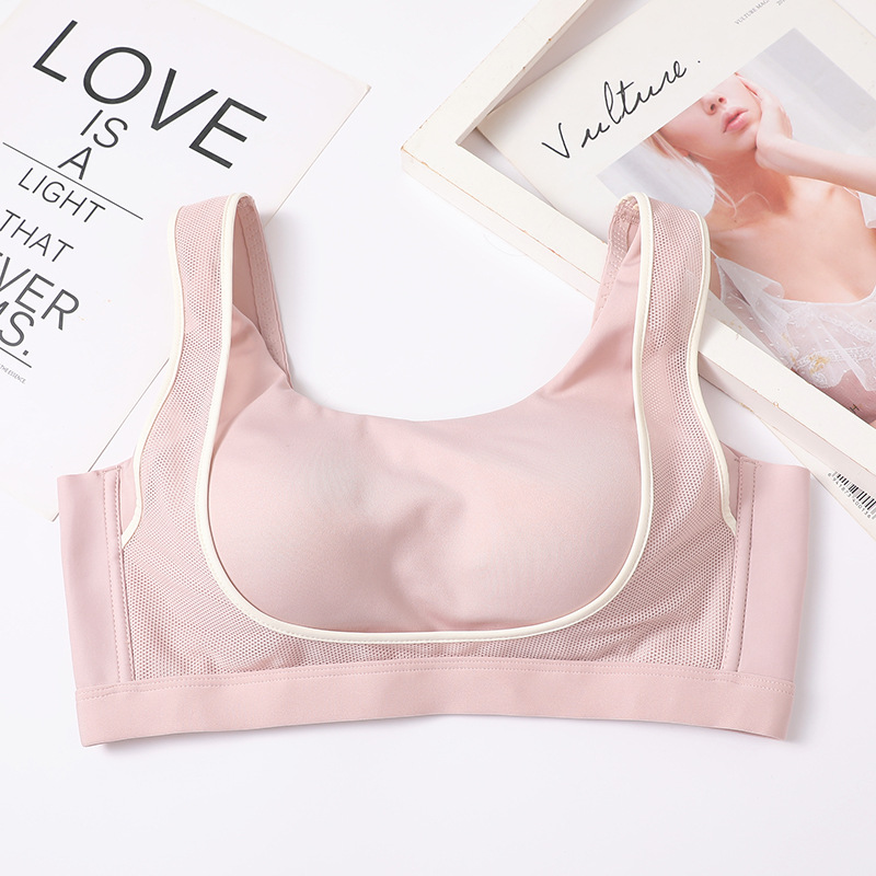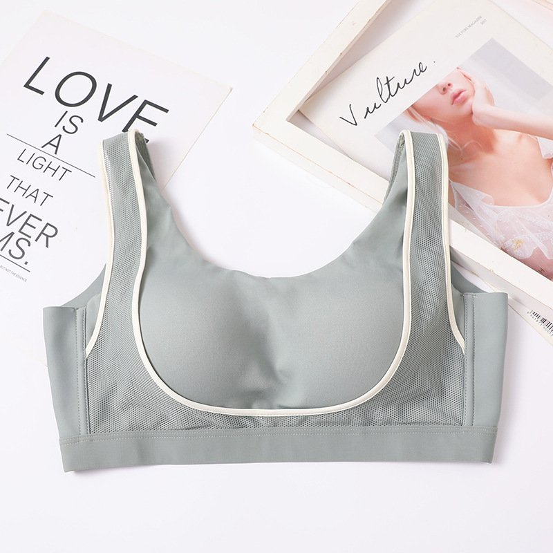 裸感瑜伽背心式运动内衣女无钢圈乳胶固定杯聚拢健身防震跑步文胸