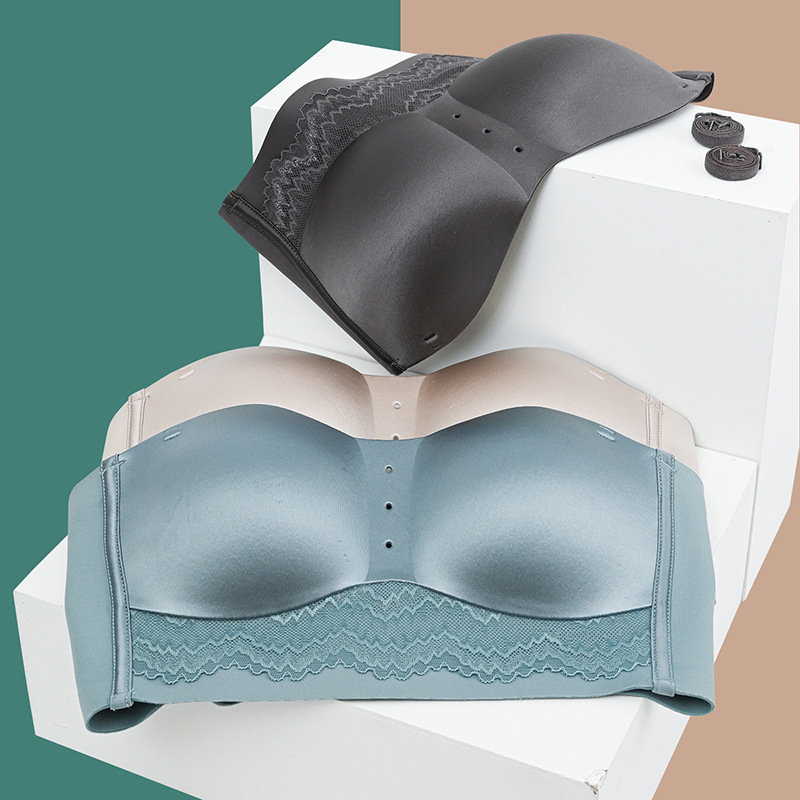 女胸罩无钢圈内衣聚拢无肩带抹胸文胸薄款无痕小吊带交叉美背