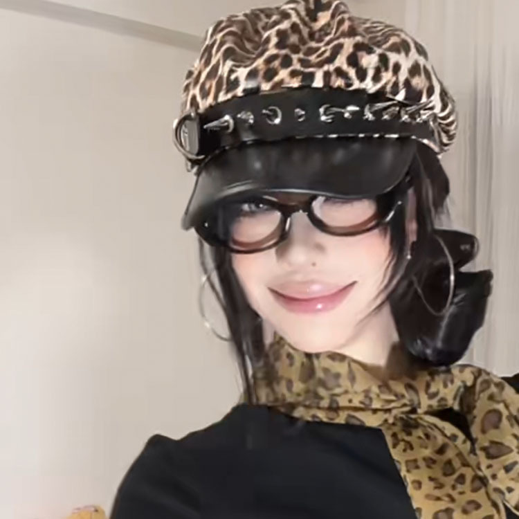 涩谷辣妹铆钉皮扣复古皮质报童帽亚文化时髦街头百搭画家帽鸭舌帽