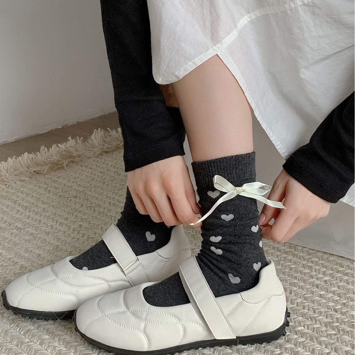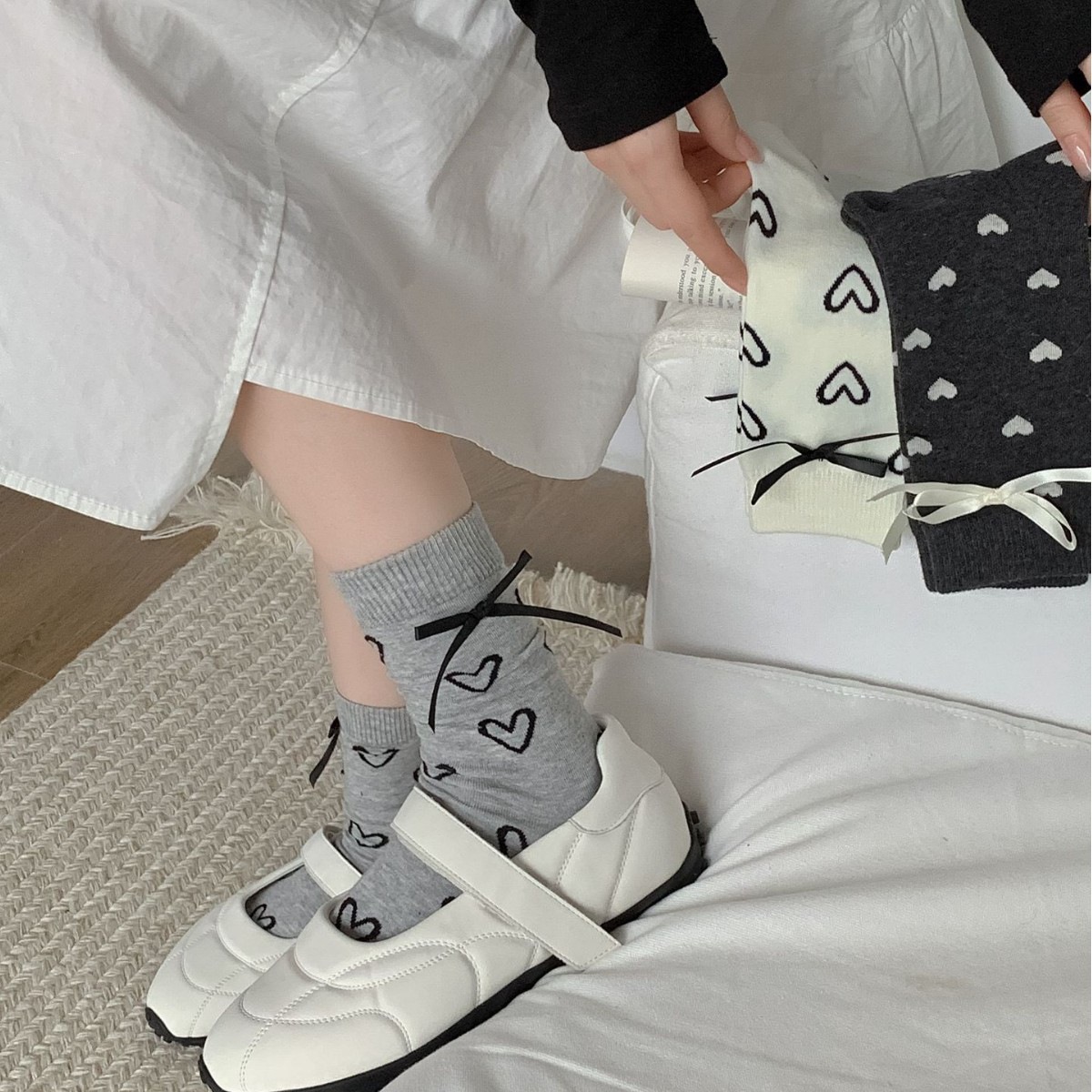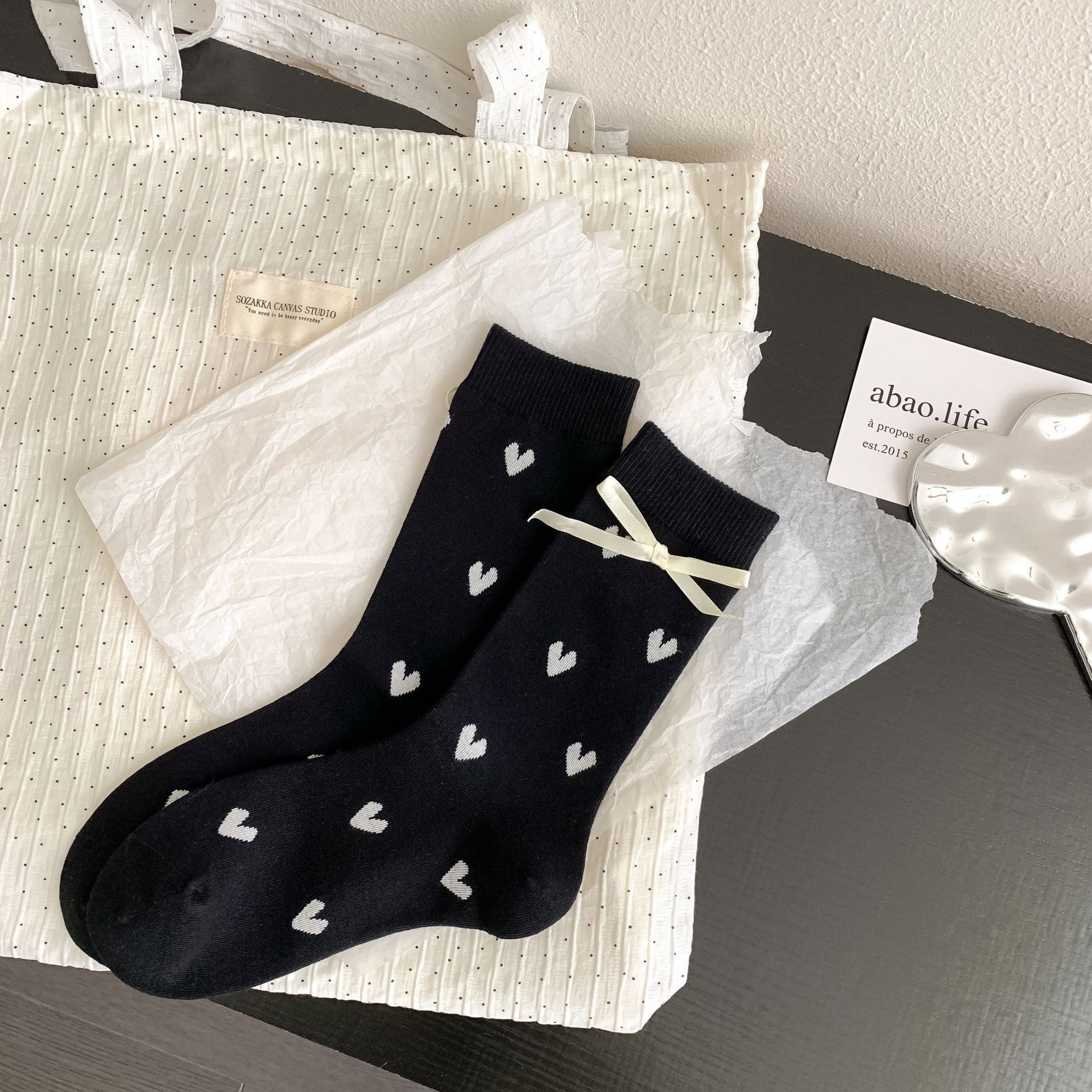韩系丝带 爱心波点蝴蝶结芭蕾风ins 堆堆袜女中筒袜