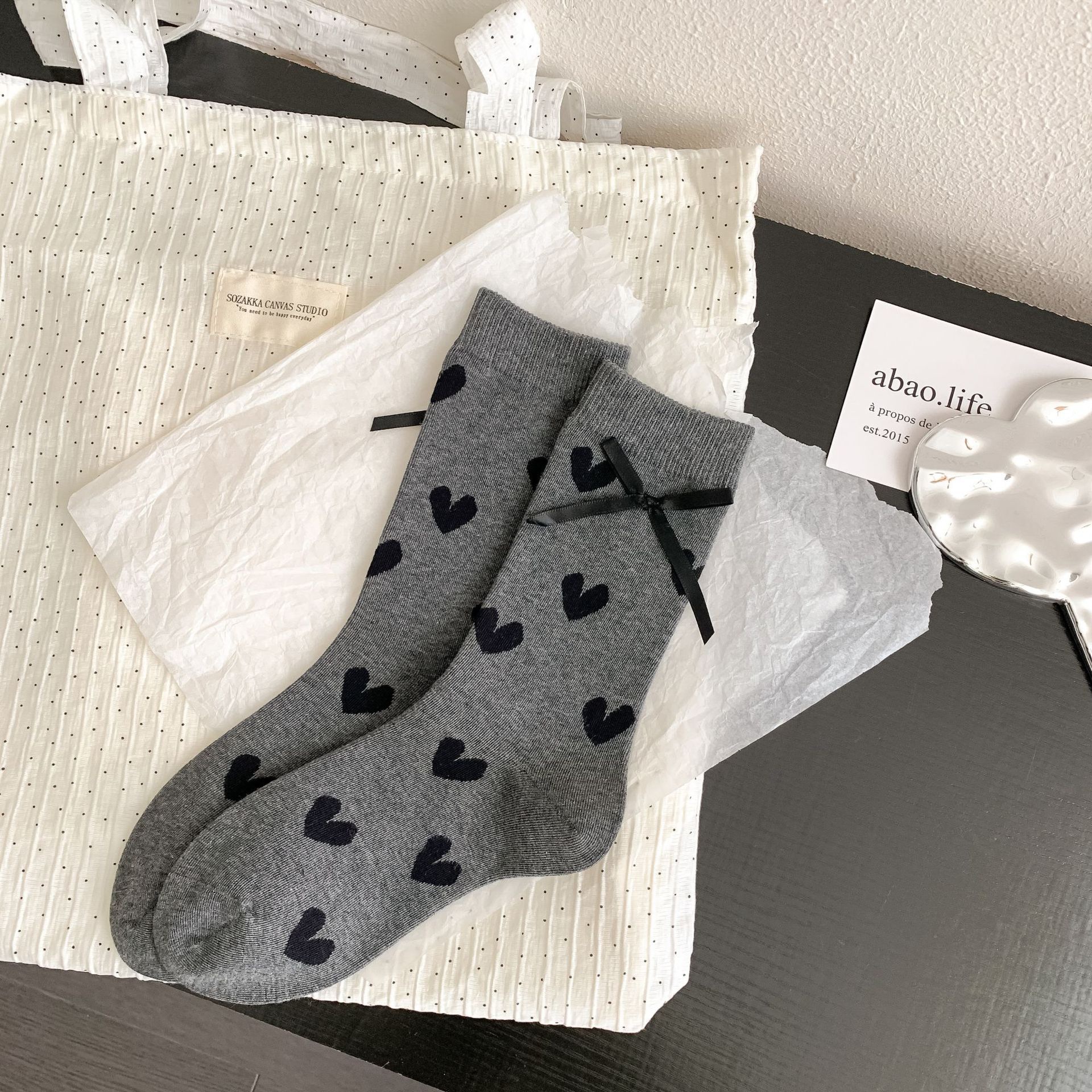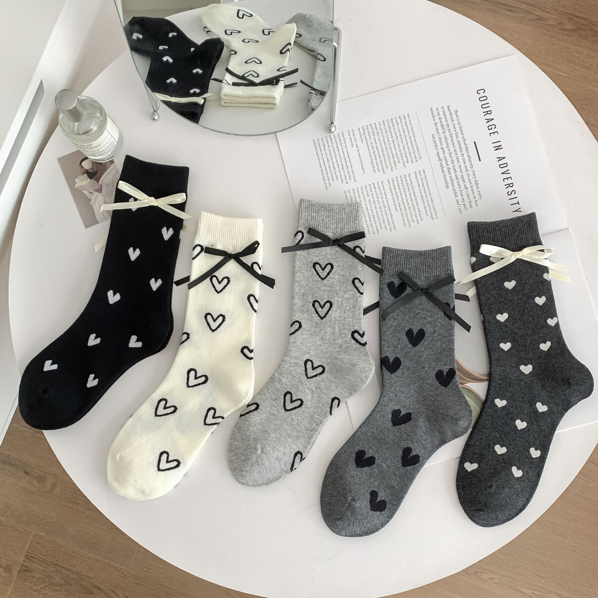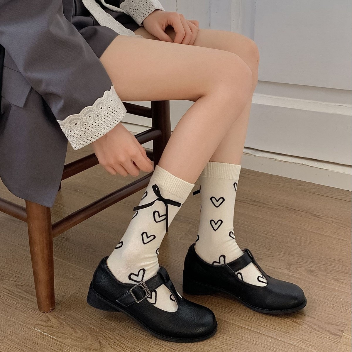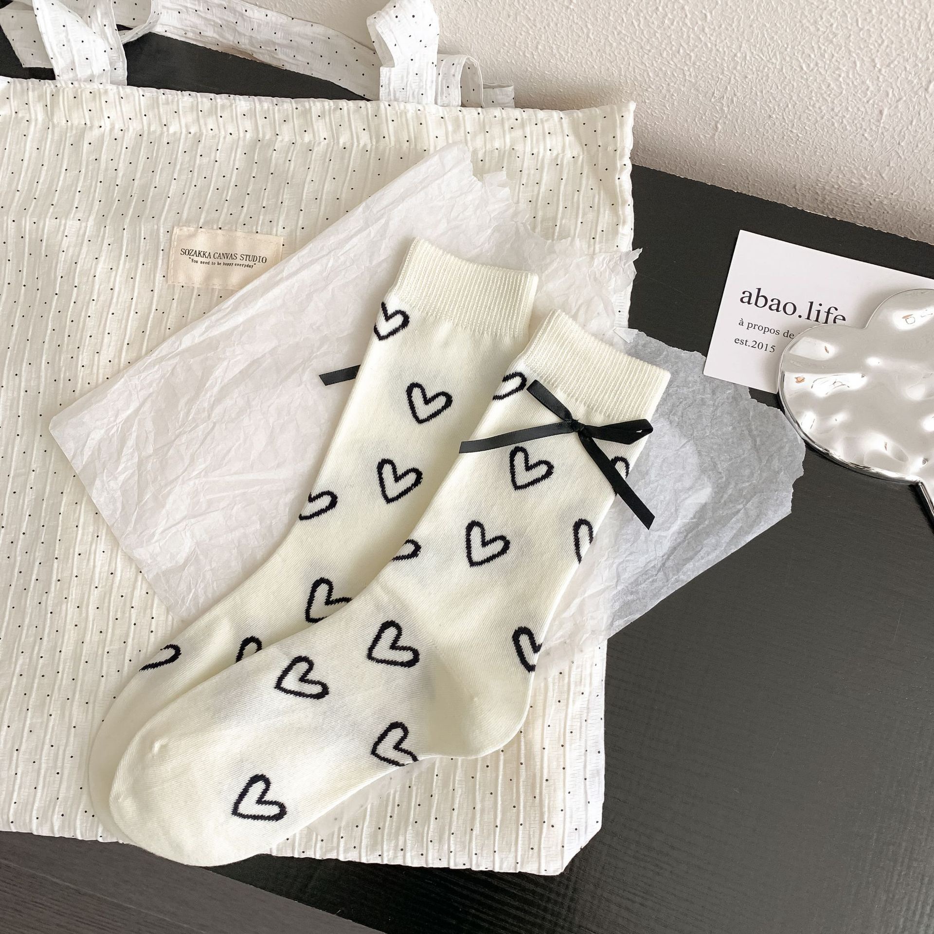 韩系丝带 爱心波点蝴蝶结芭蕾风ins 堆堆袜女中筒袜