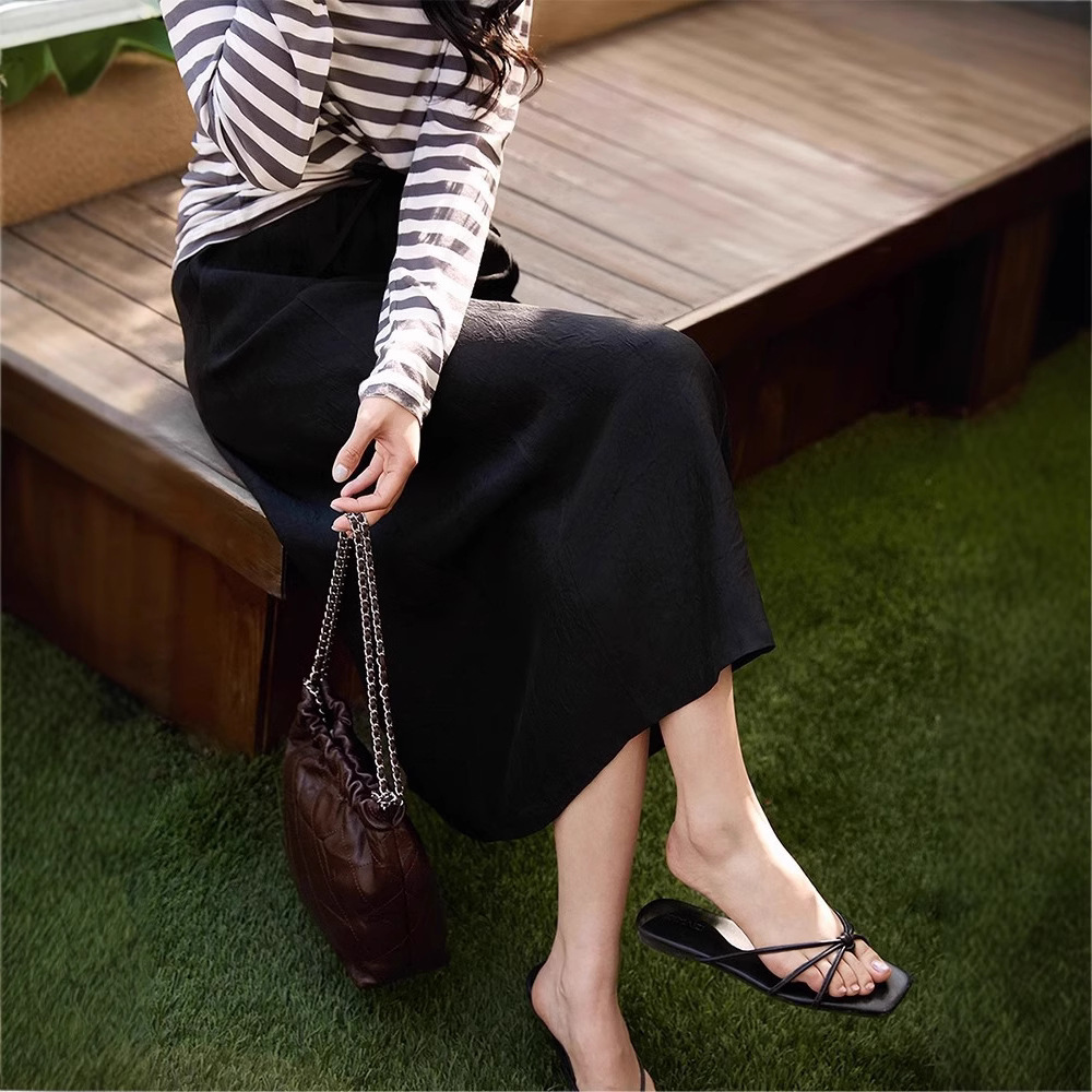 CHAO级推荐~醋酸裙通勤大气优雅抽绳松紧腰半身裙25年春夏女新款