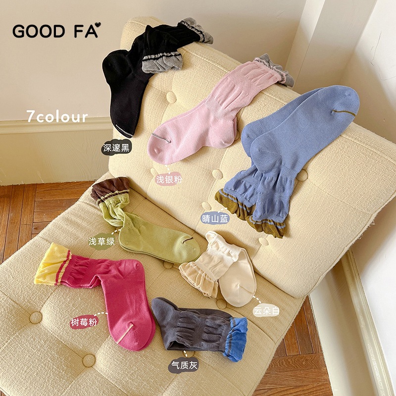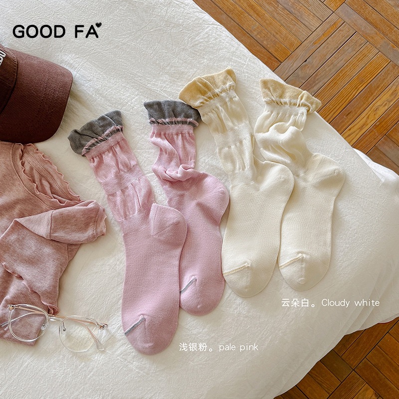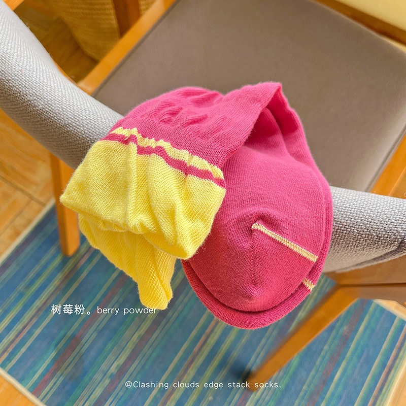 2025年春夏新款撞色移圈云朵花边日系堆堆袜女袜
