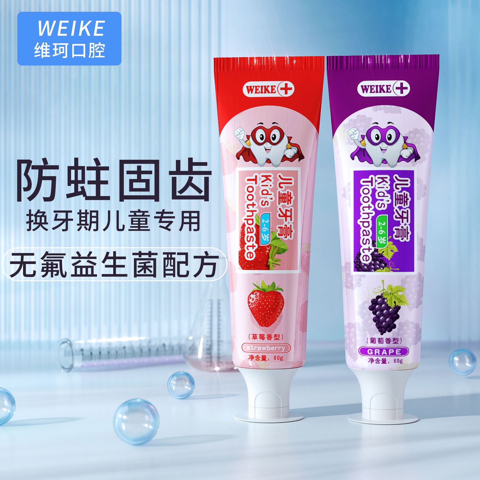 维珂益生菌儿童牙膏厂家宝宝无氟长效防蛀固齿专用牙膏正品