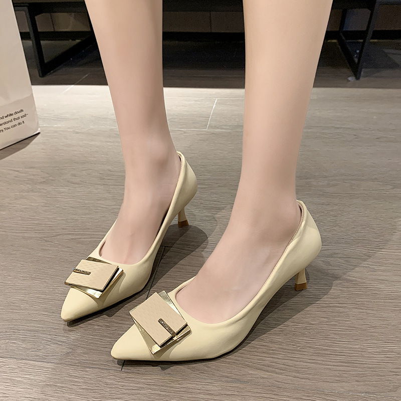 夏季新款潮搭尖头方扣单鞋气质风时尚名媛高跟鞋女细跟女鞋