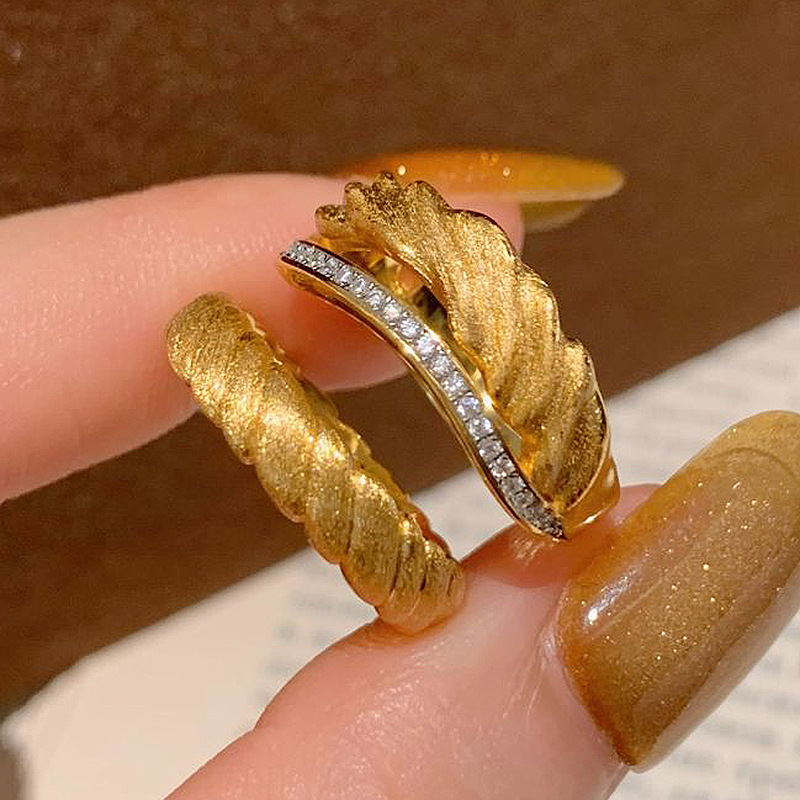 小红书爆款古法拉丝金色戒指新款超重工精致时尚指环