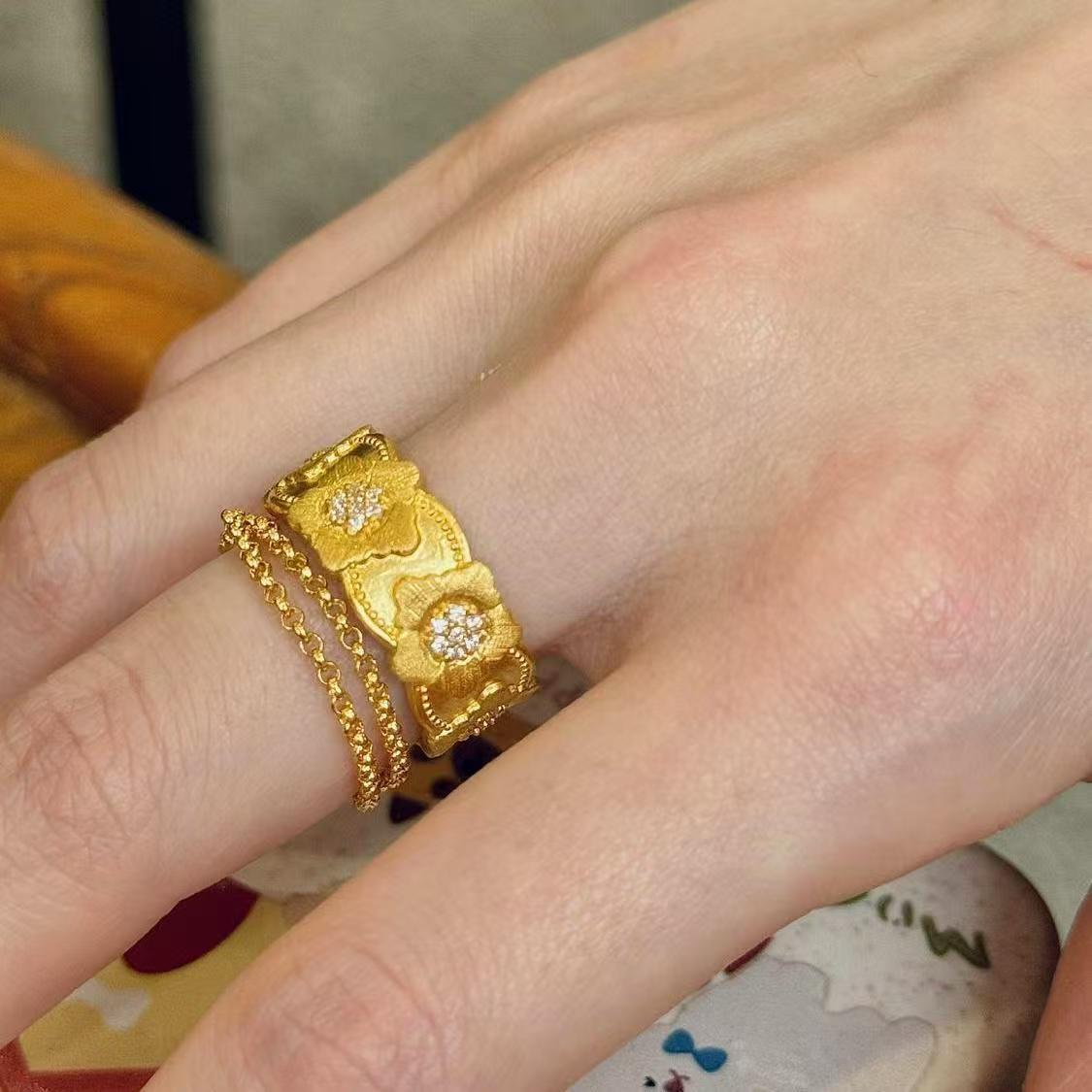 小红书爆款老钱风小金花戒指戒指女复古新中式叠戴天花板小花指环