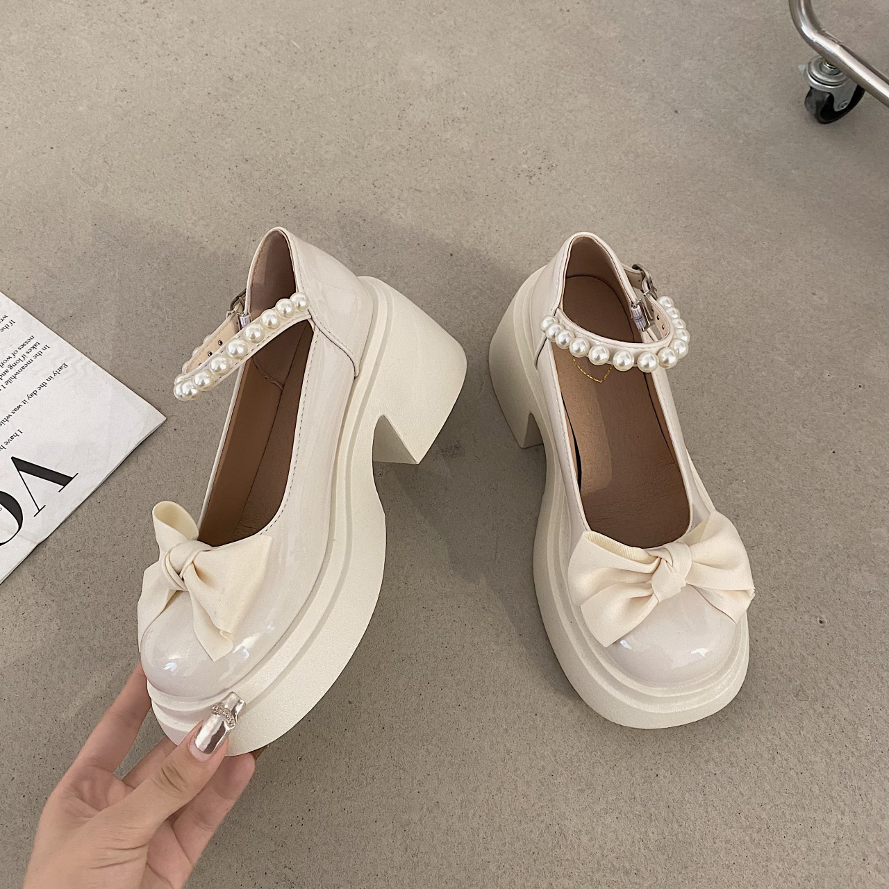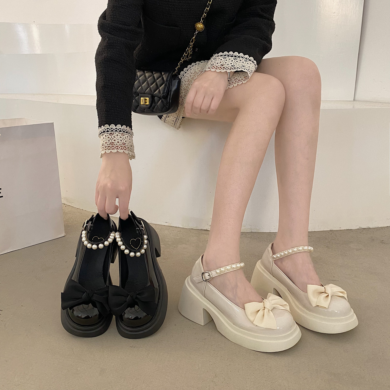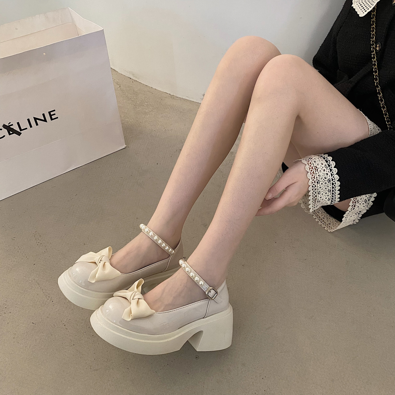 玛丽珍小皮鞋新款法式名媛风气质蝴蝶结厚底松糕高跟鞋