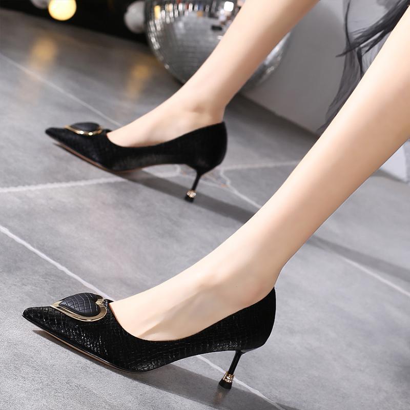 名媛风尖头细跟防滑高跟鞋女春季新款爱心气质百搭浅口单鞋