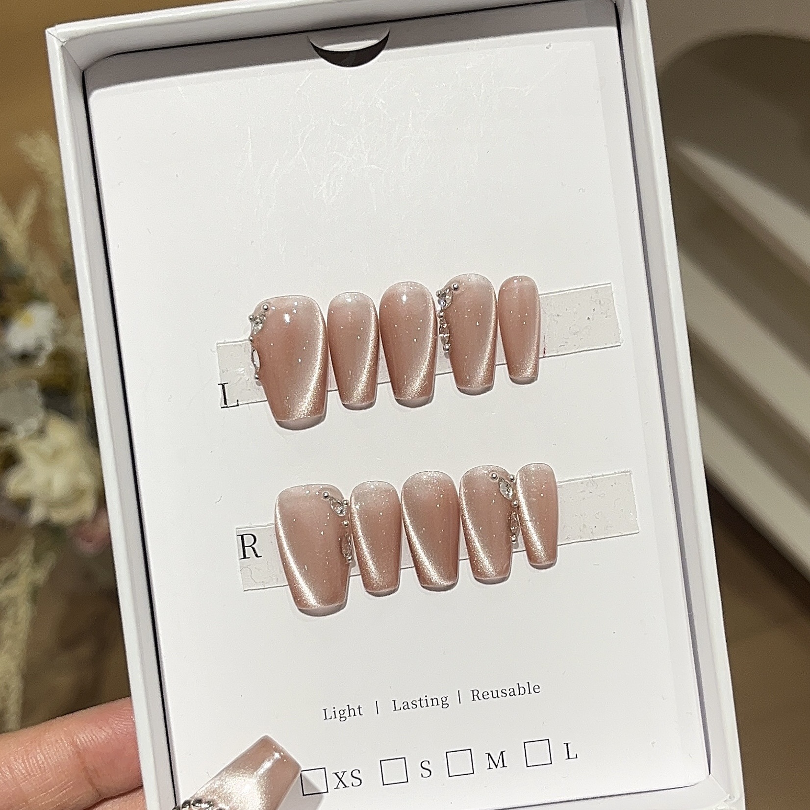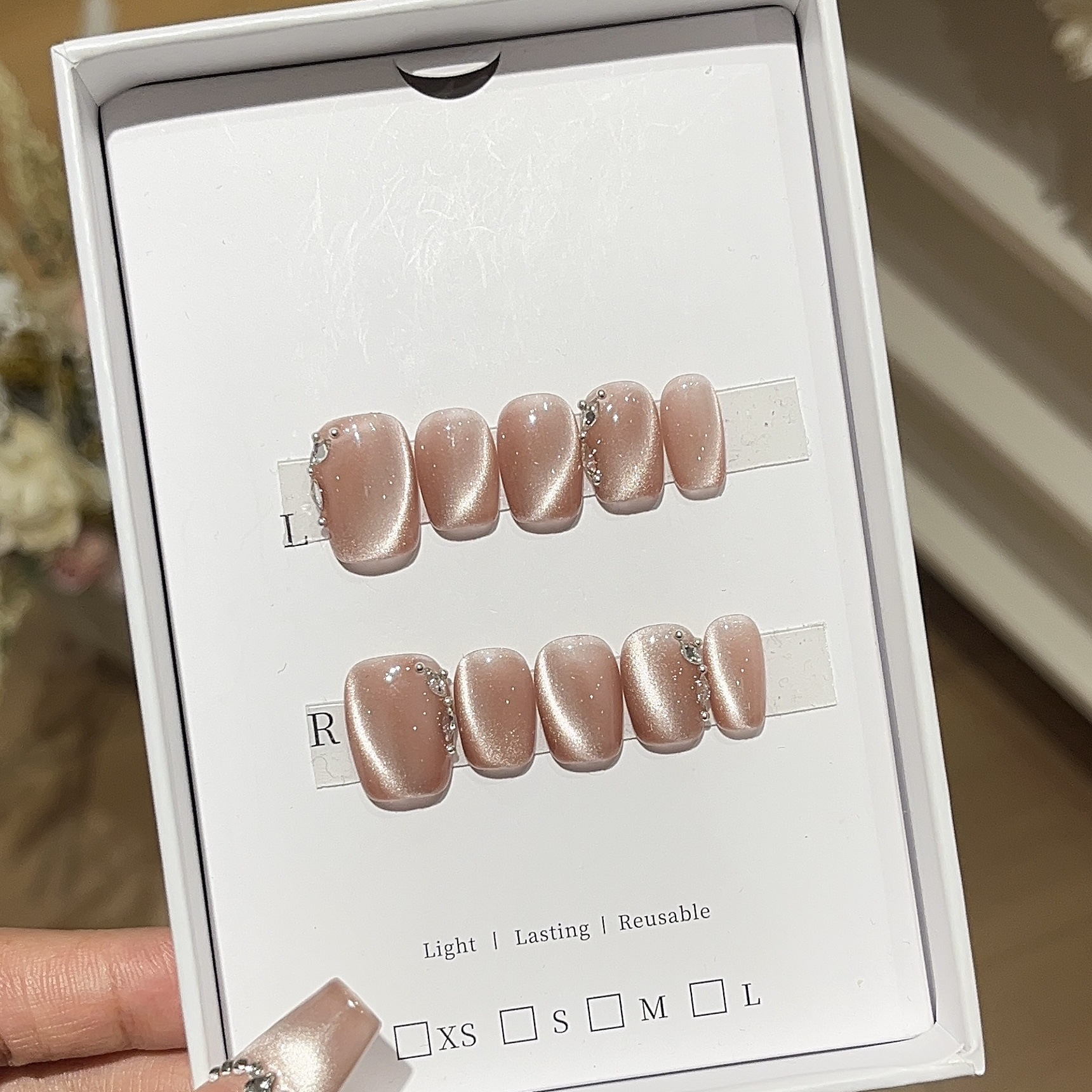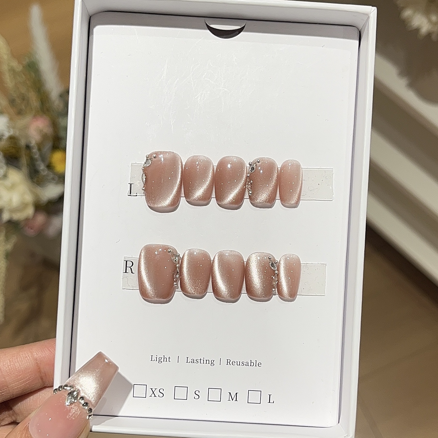 一只顾美甲厂【原创实拍】穿戴甲短款玻璃珠追光猫眼玻璃珠猫眼