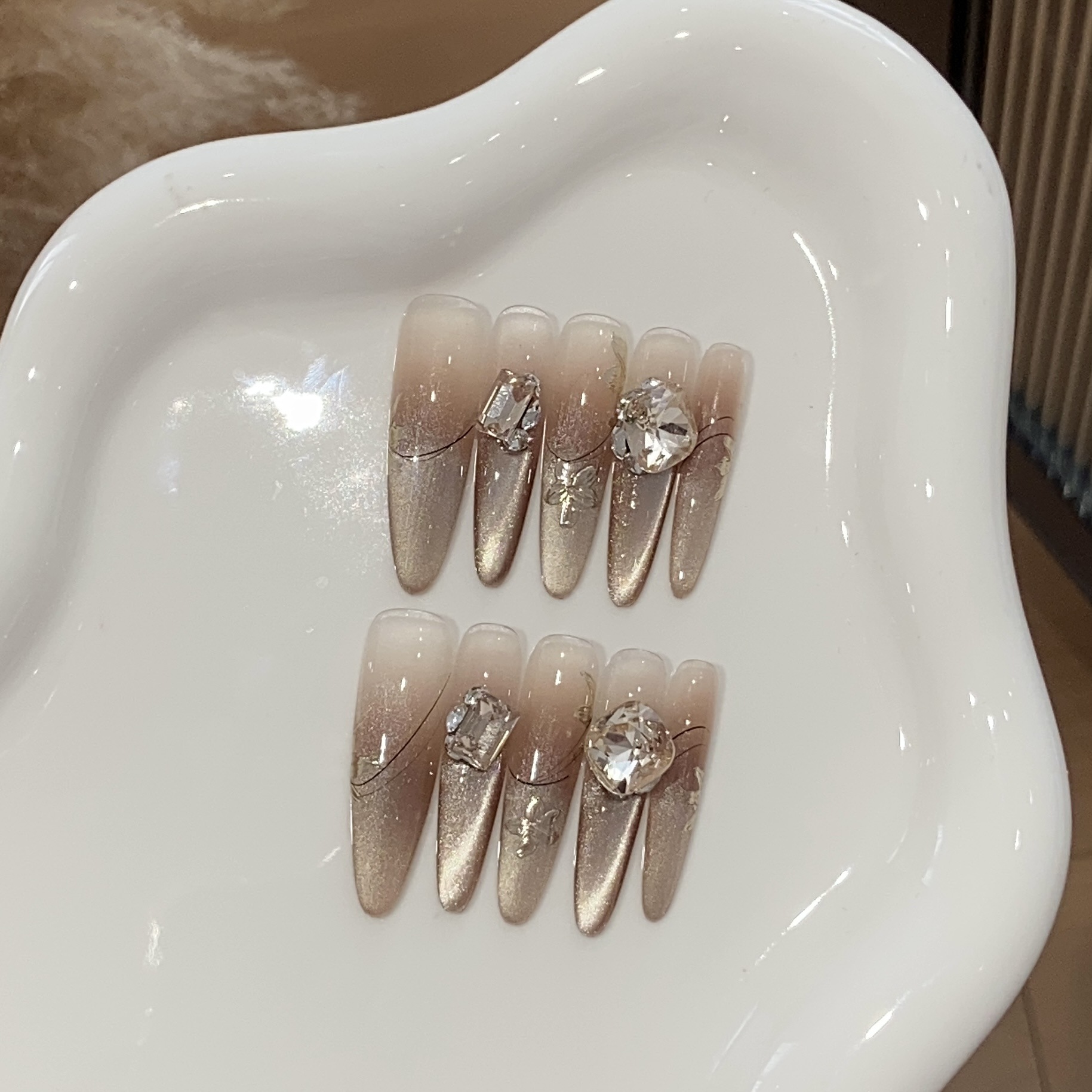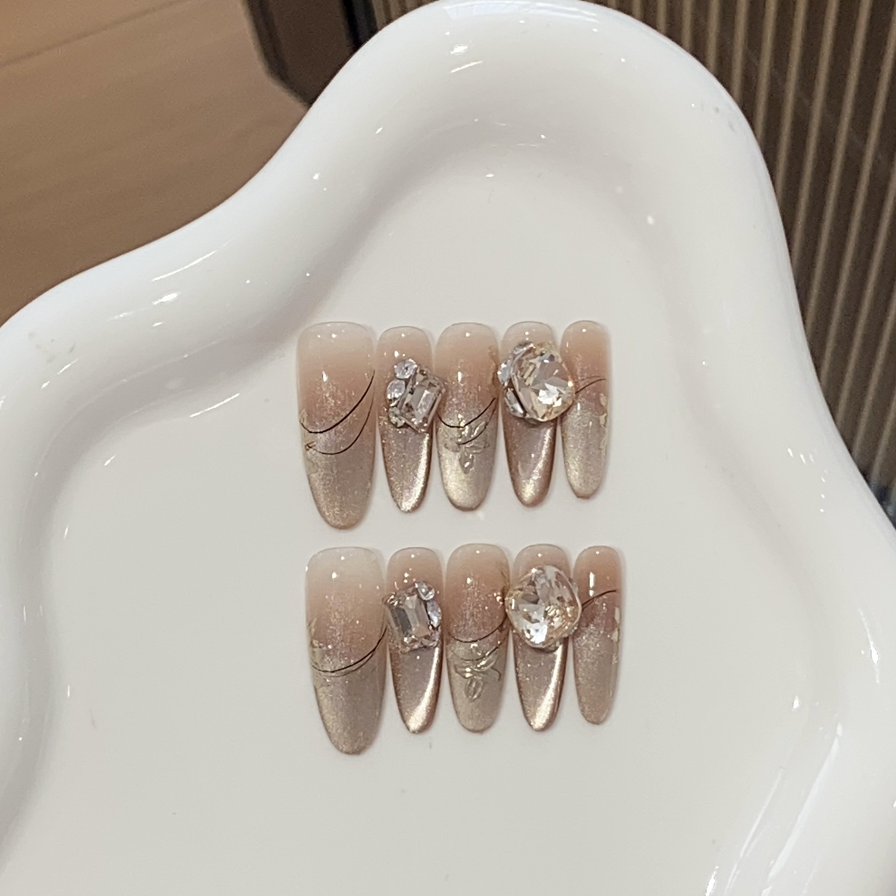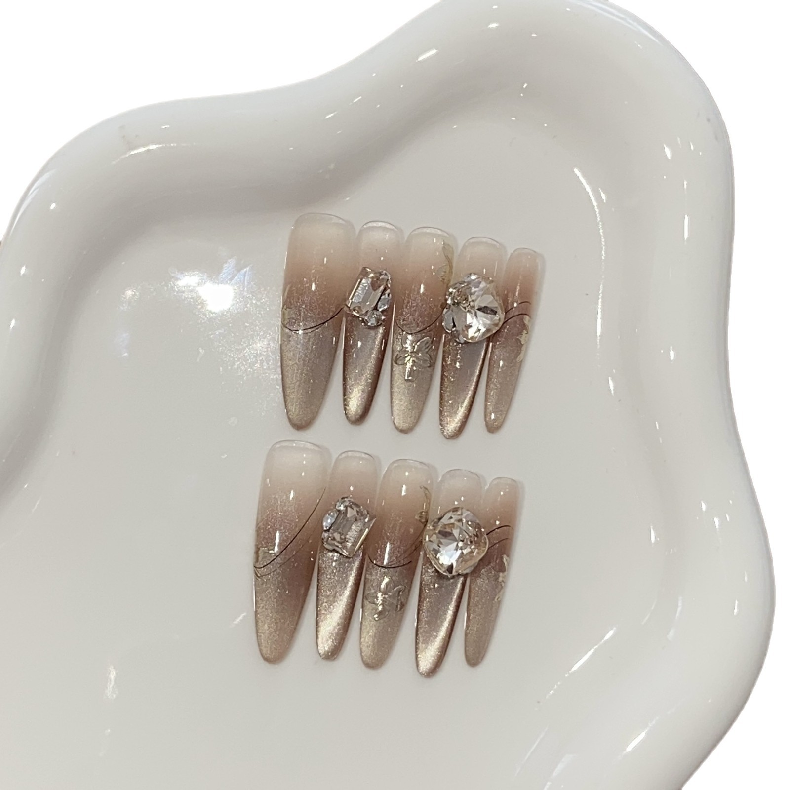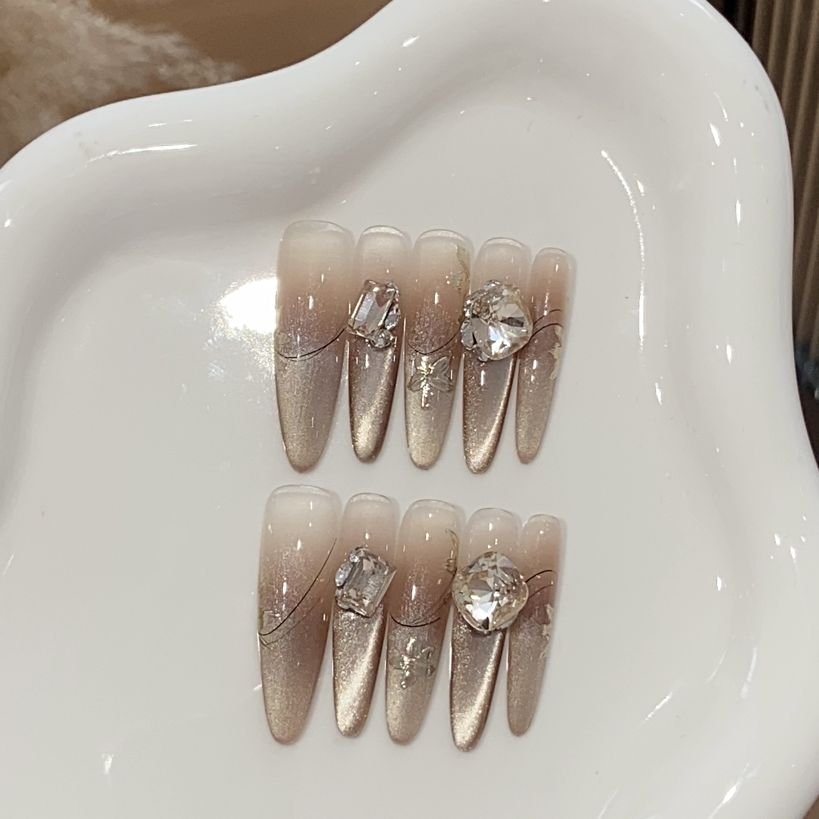 纯手工穿戴甲西洋丁香富甲千金轻奢爆闪堆钻法式气质美甲贴片成品