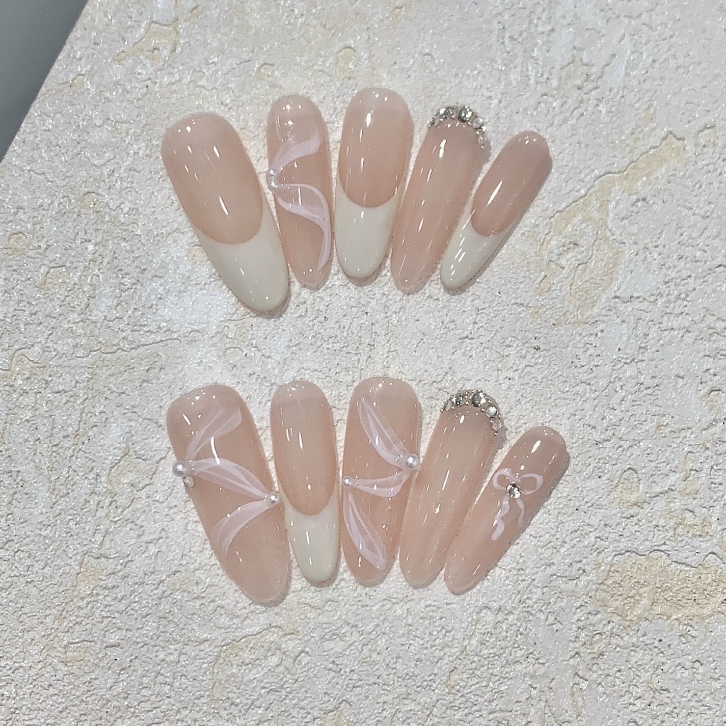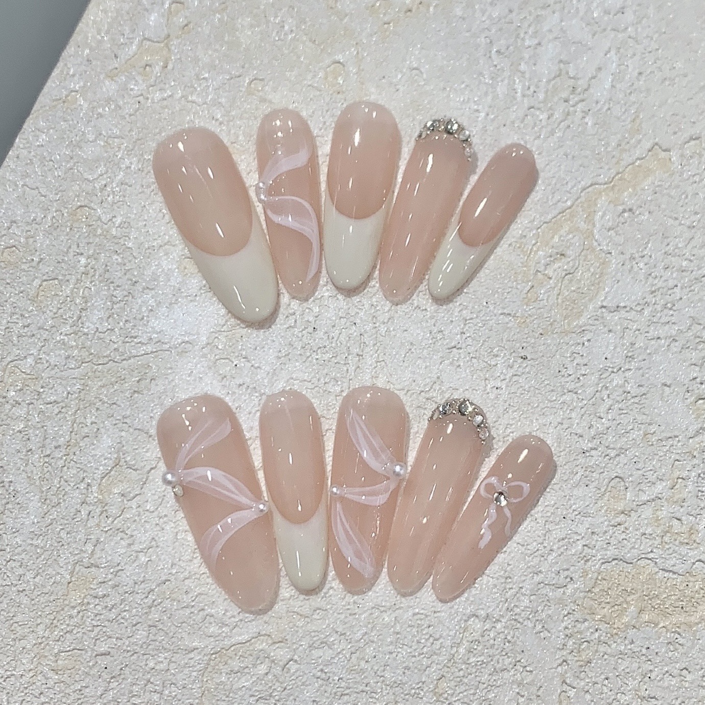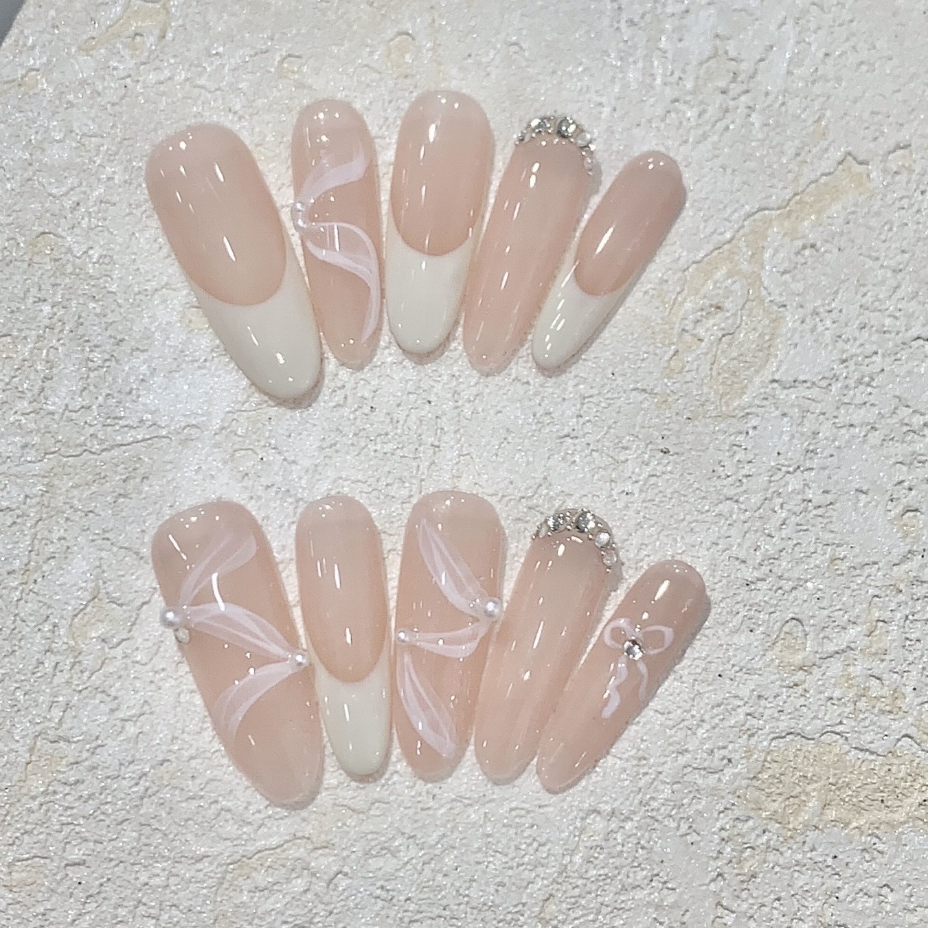 一只顾美甲厂【原创实拍】芭蕾少女系列法式飘带白茶入梦指甲贴