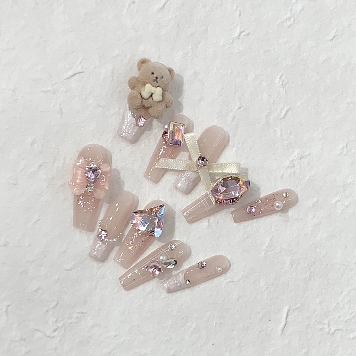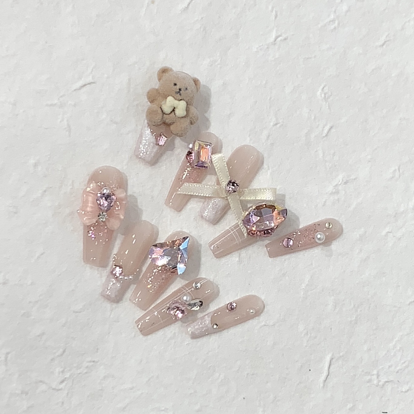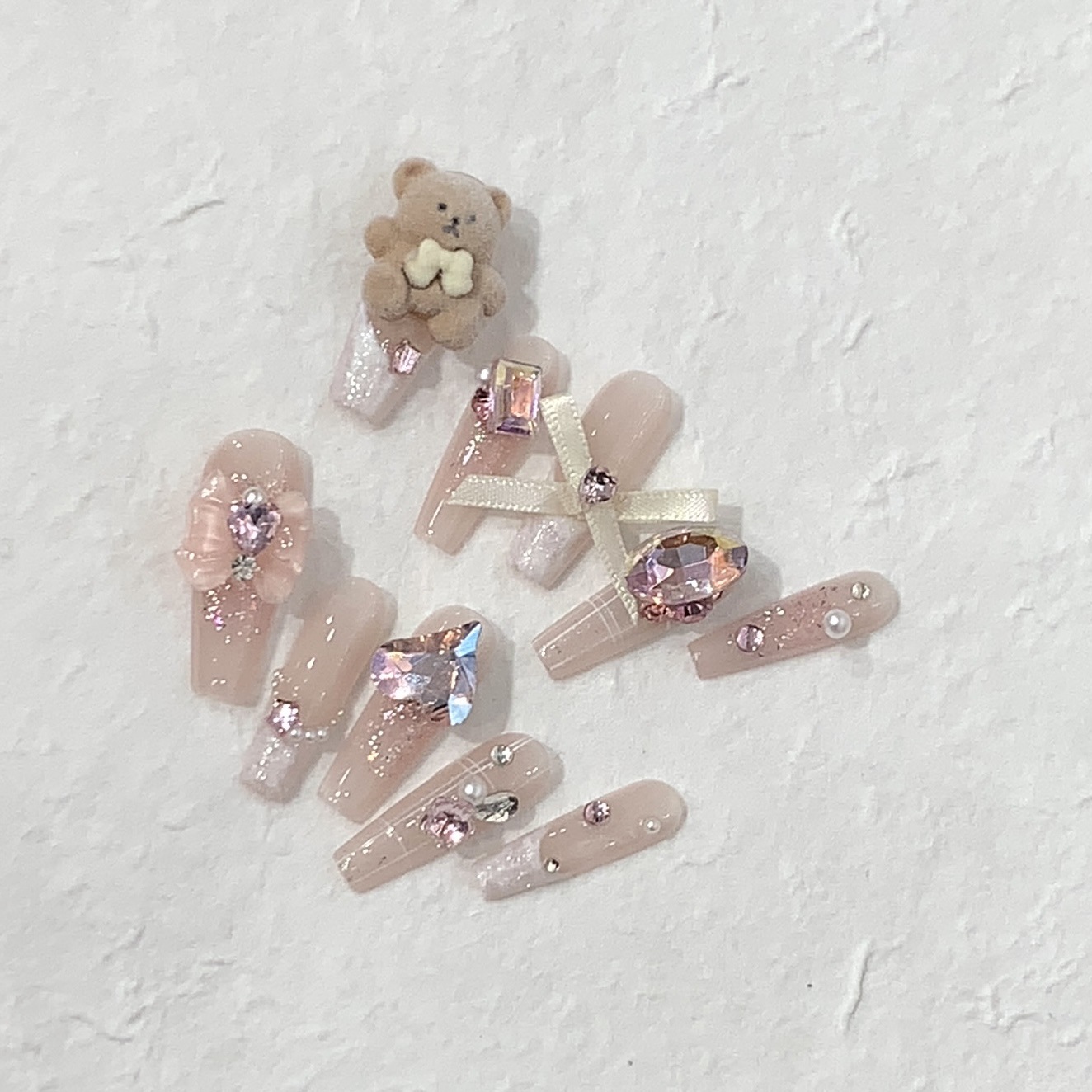 一只顾美甲厂【原创实拍】纯欲氛围感蝴蝶珍珠法式小熊安娜指甲贴