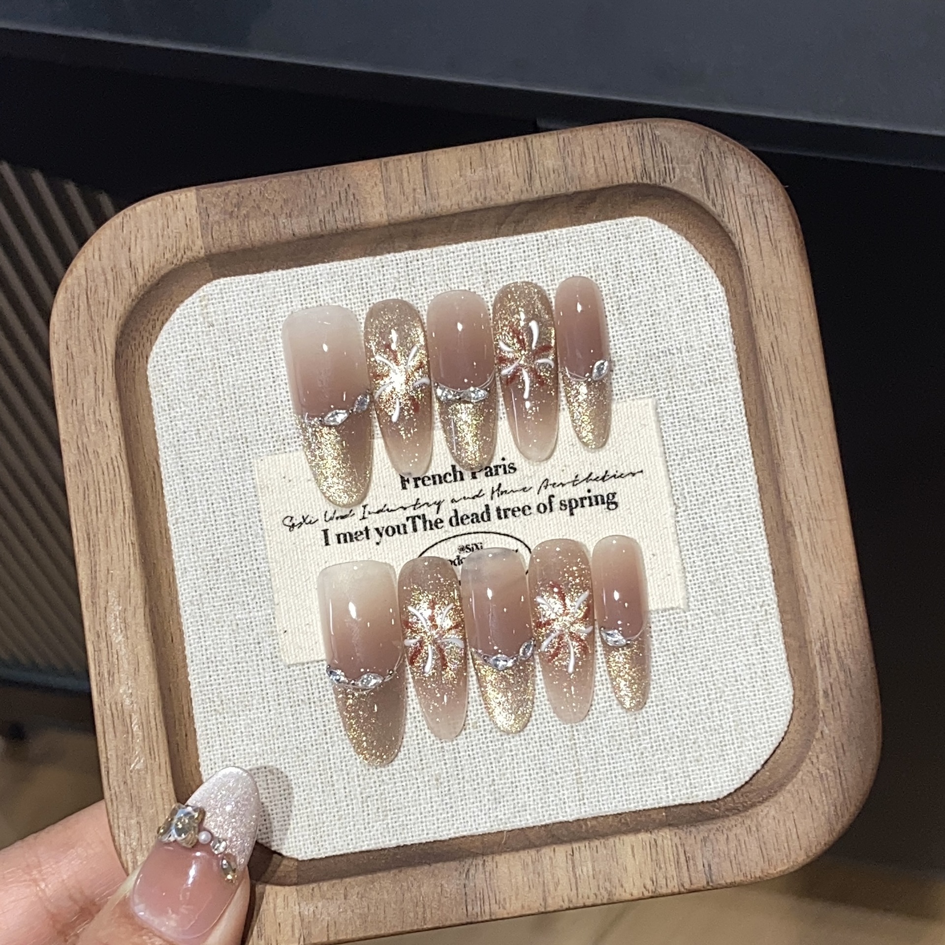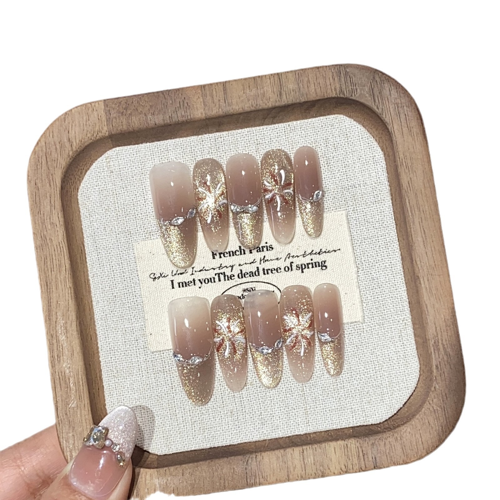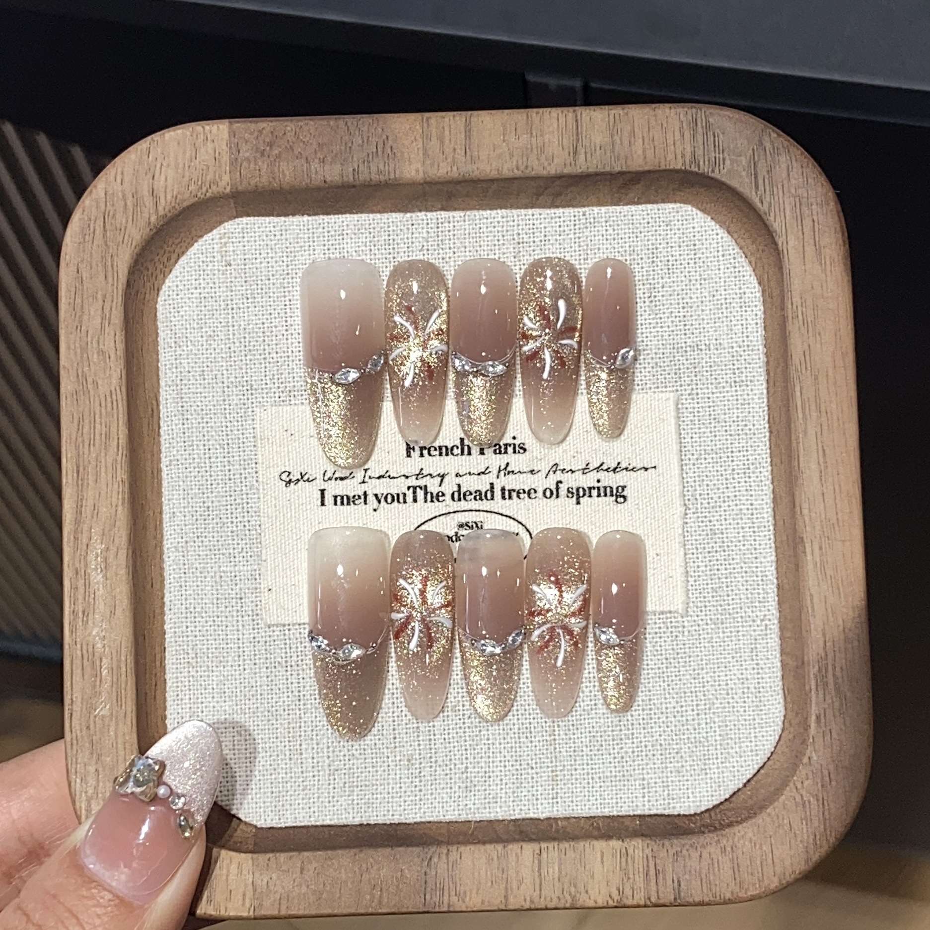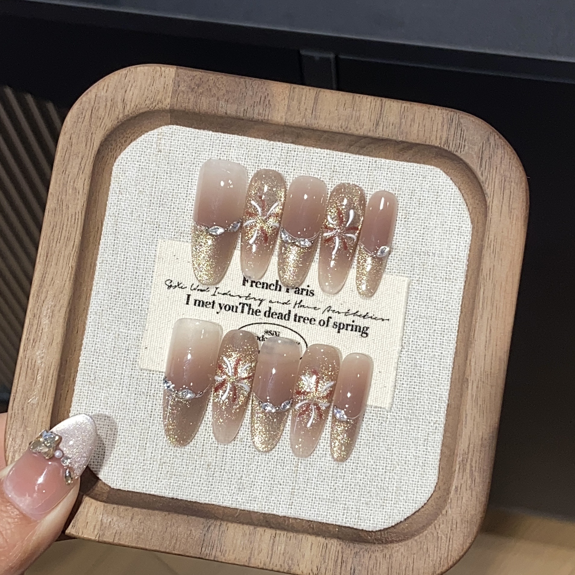 一只顾美甲 显白冰透金色渐变爆闪法式手绘烟花烟火可拆卸穿戴甲
