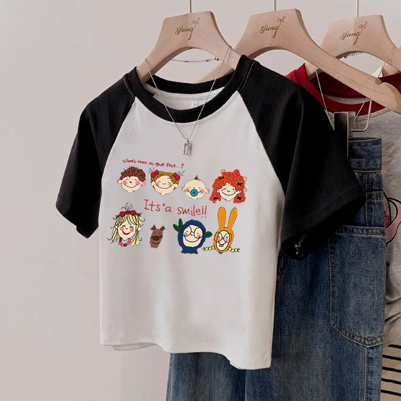 纯棉短袖t恤女夏季小个子多巴胺穿搭设计感小众辣妹正肩短款上衣