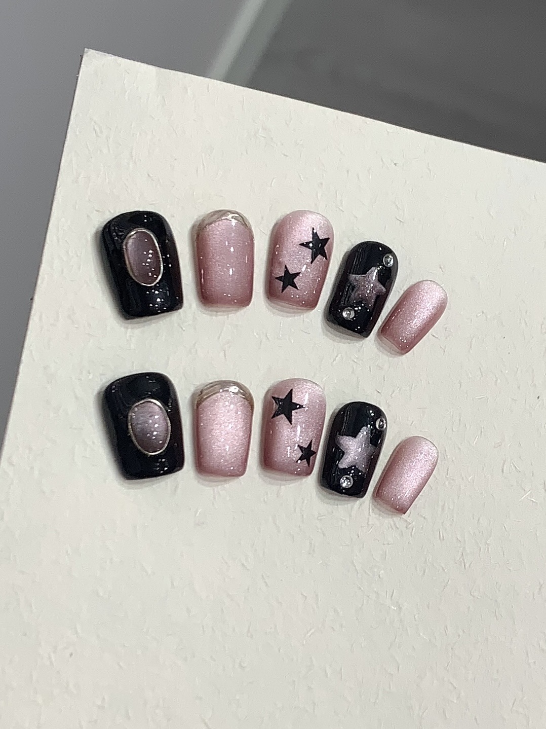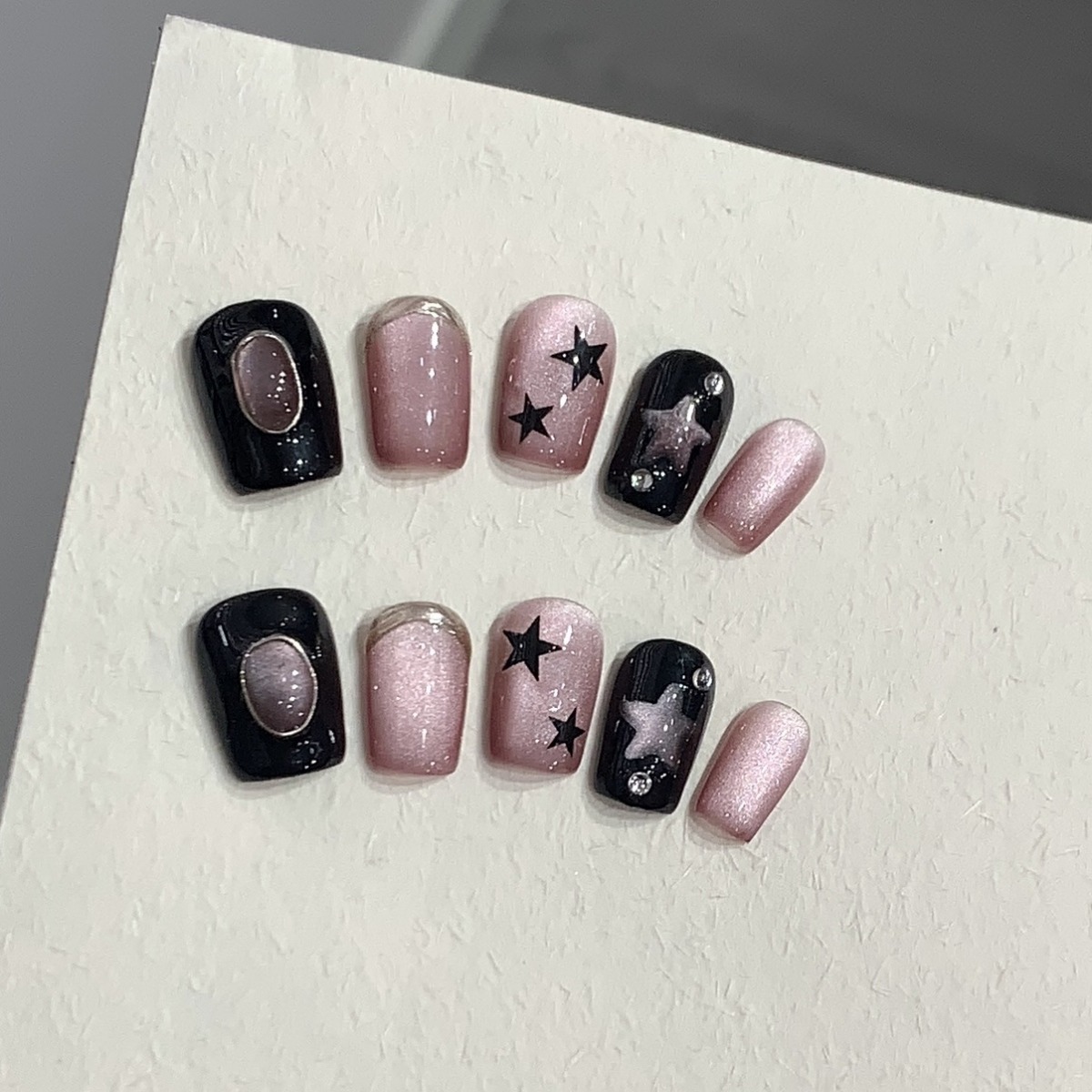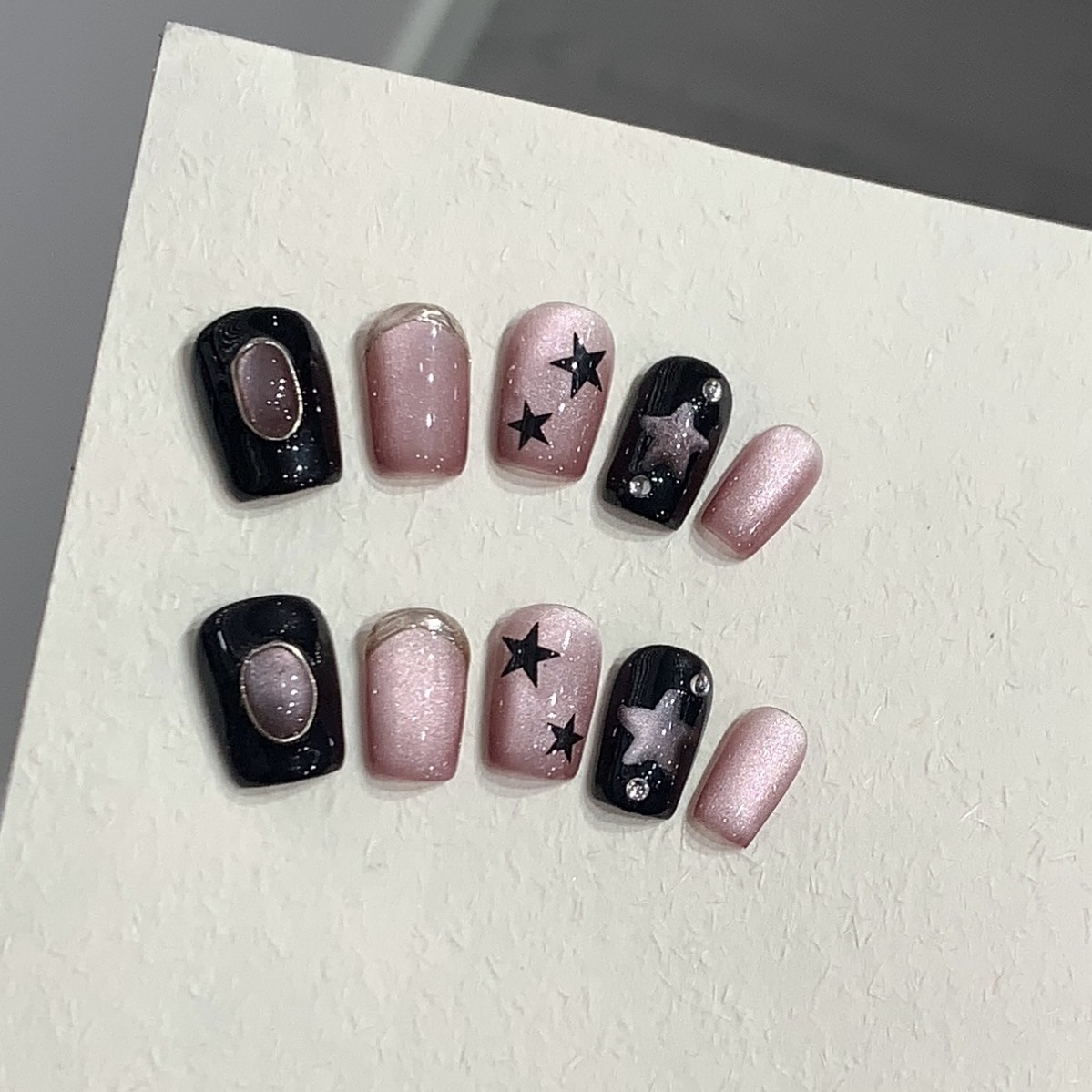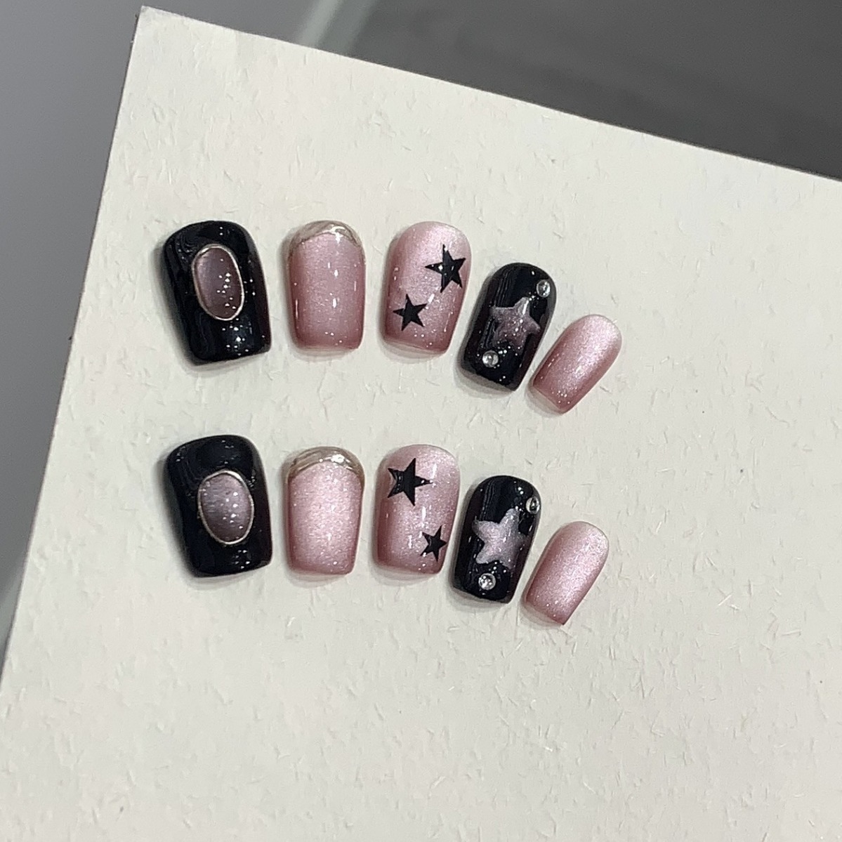 一只顾美甲厂【原创实拍】聚焦显白甜酷辣妹风猫眼粉色焦点指甲贴