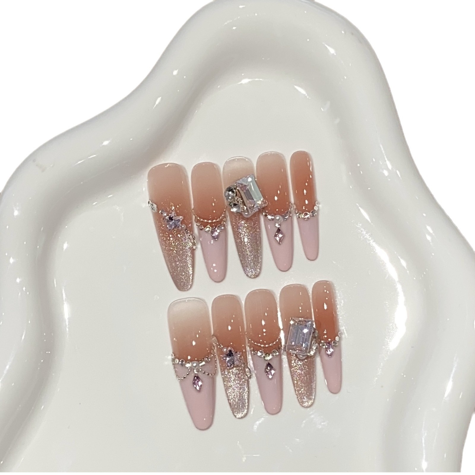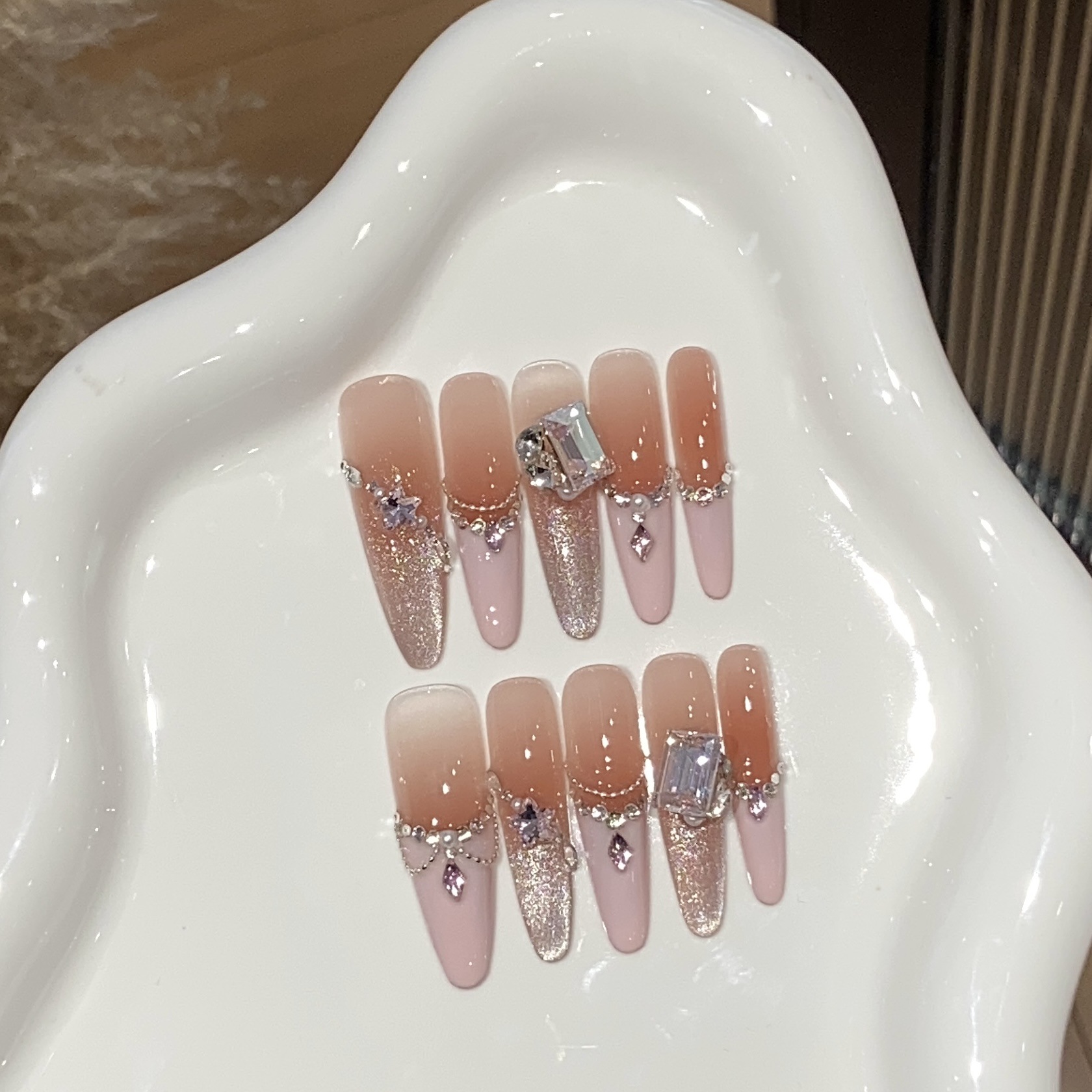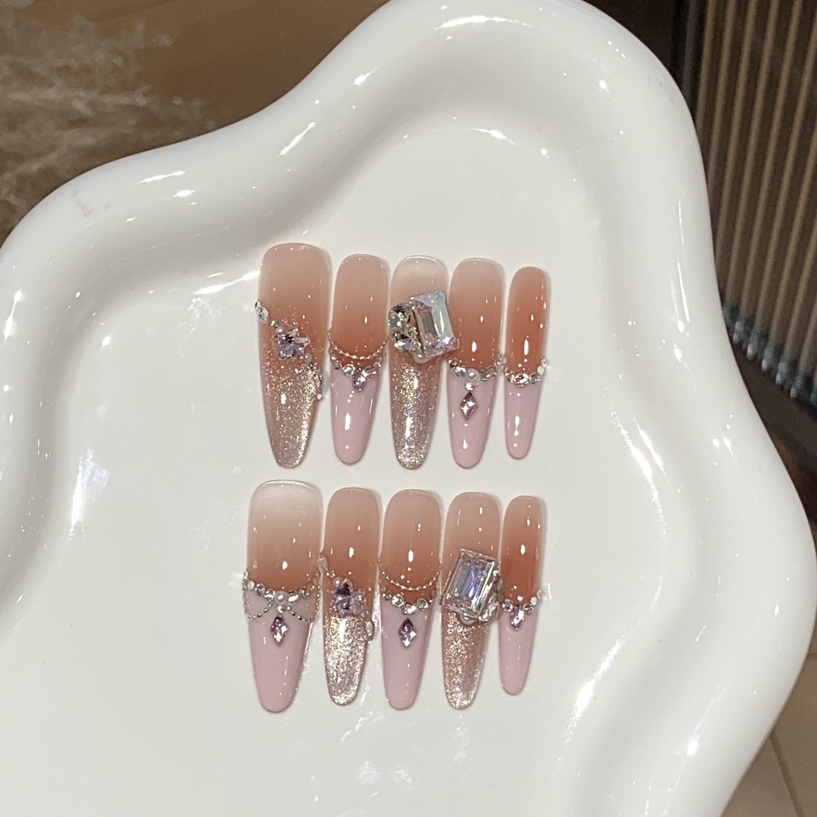 艺禾【猫眼菱格】新款纯手工光疗美拉德色系猫眼穿戴甲片可批发