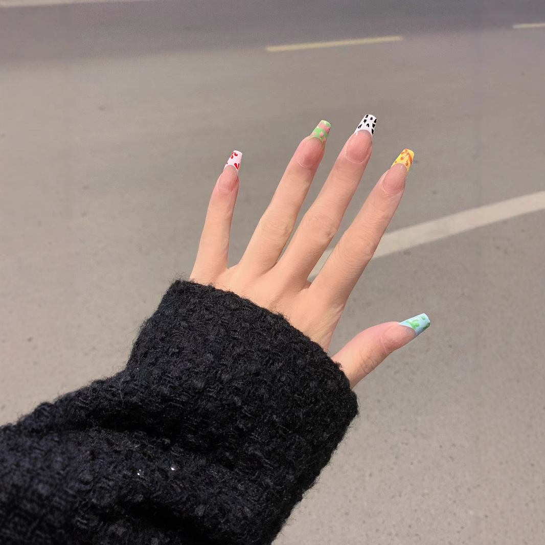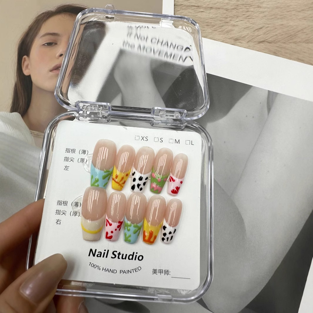 一只顾美甲厂 甜甜辣妹糖果法式 新款ins裸色纯欲风穿戴式美甲