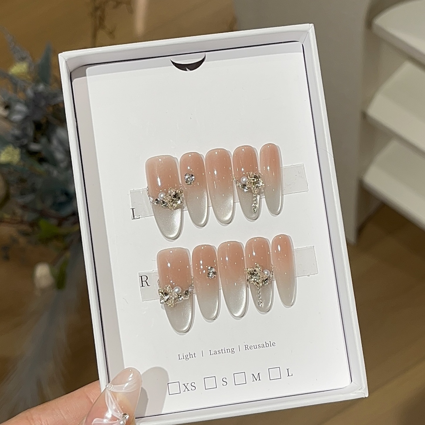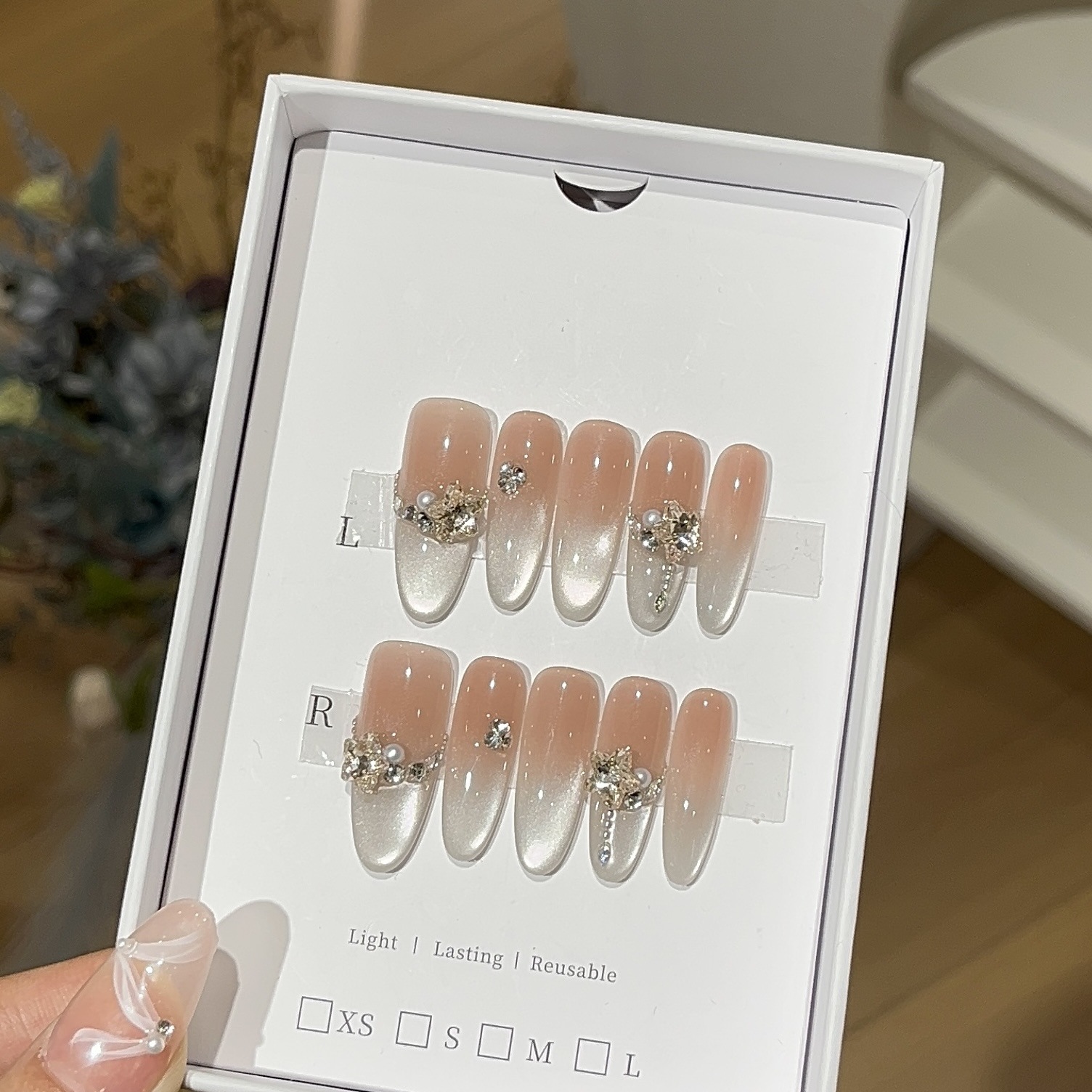 一只顾【纯欲清冷】 轻奢冰透爆闪渐变侧光猫眼香槟金K9钻穿戴甲