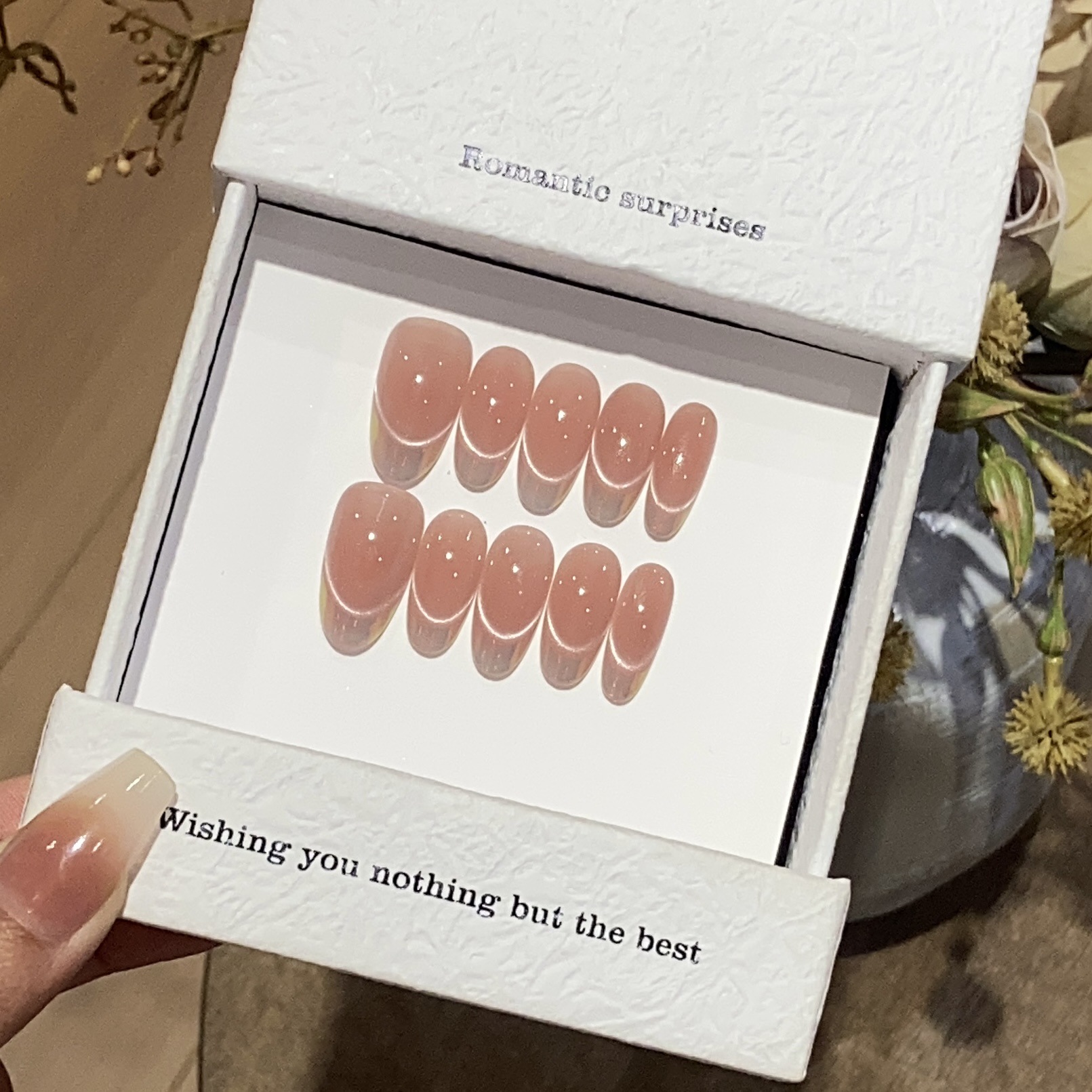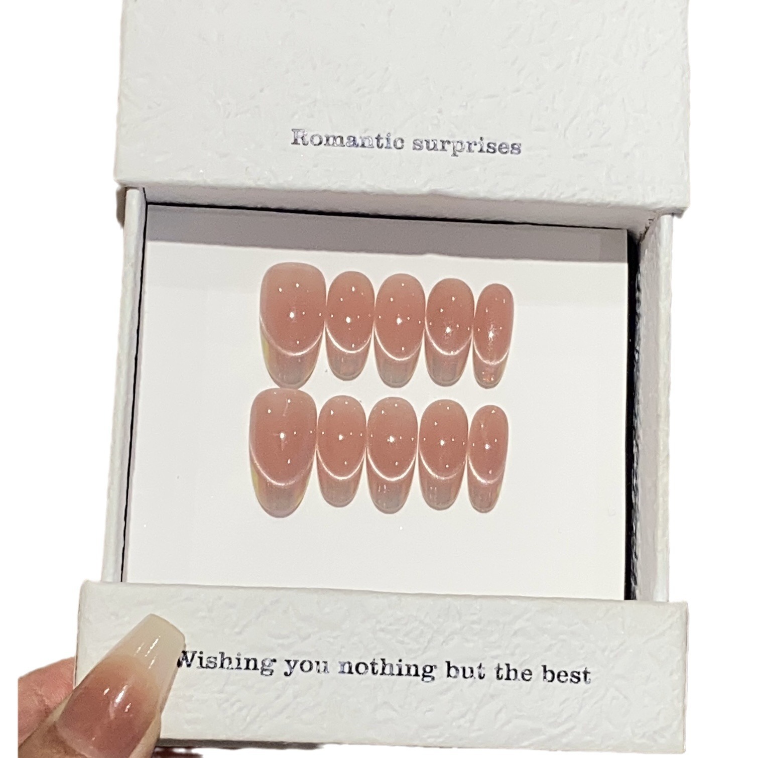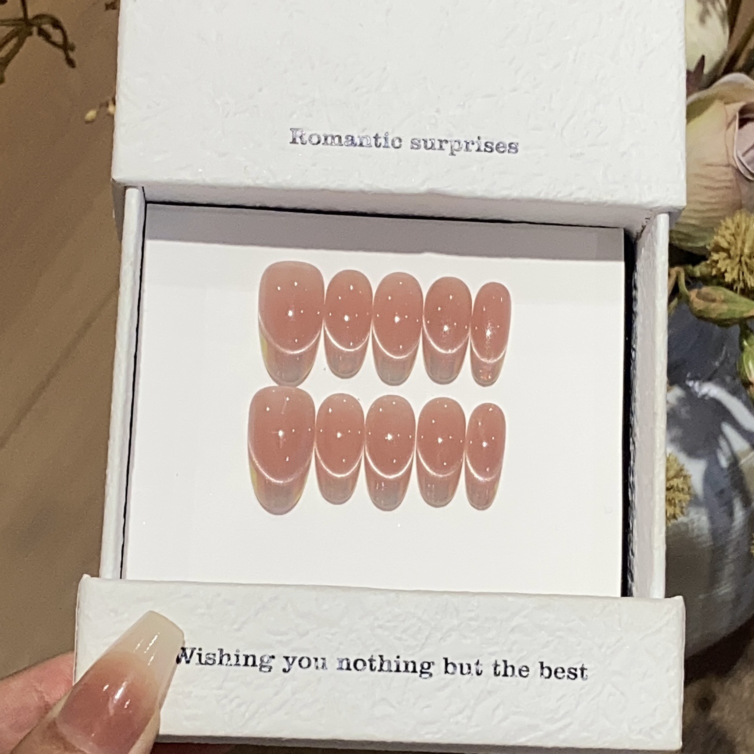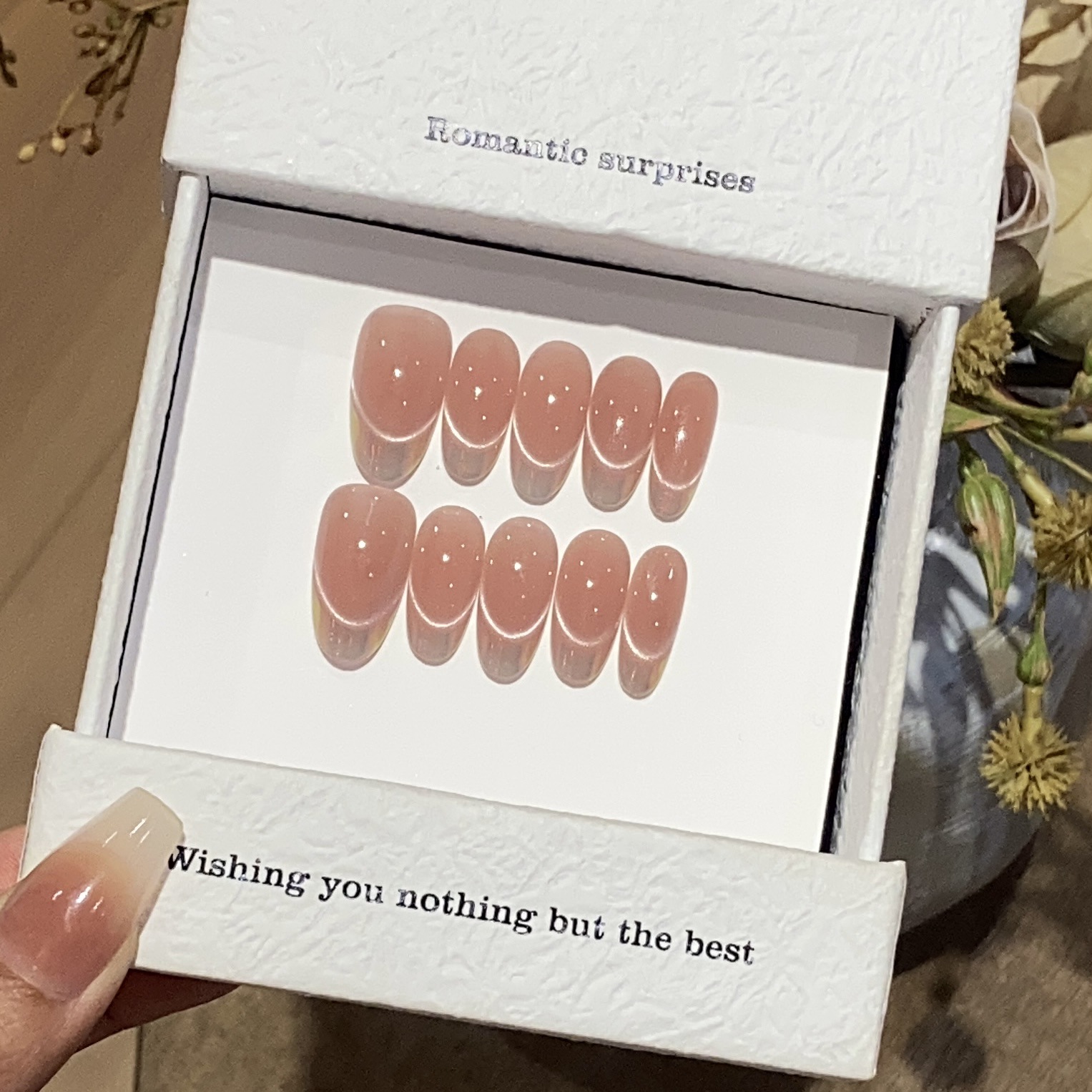一只顾美甲 高级简约纯色水蜜桃微笑法式猫眼锦瑟可拆卸贴片指甲