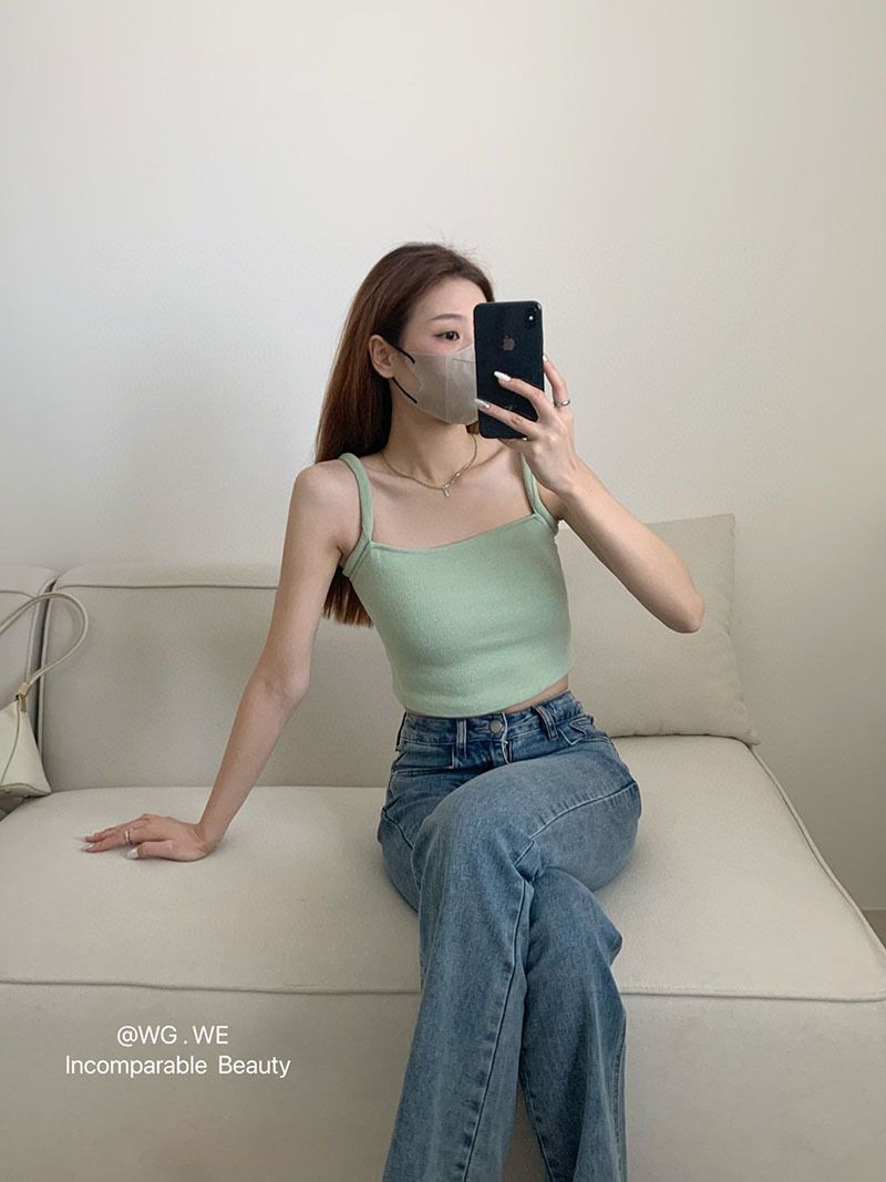 【全网低价】夏季甜辣背心橘色小众独特别致锁骨上衣短款小吊带
