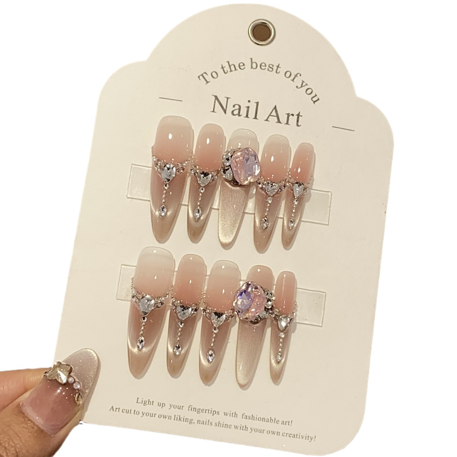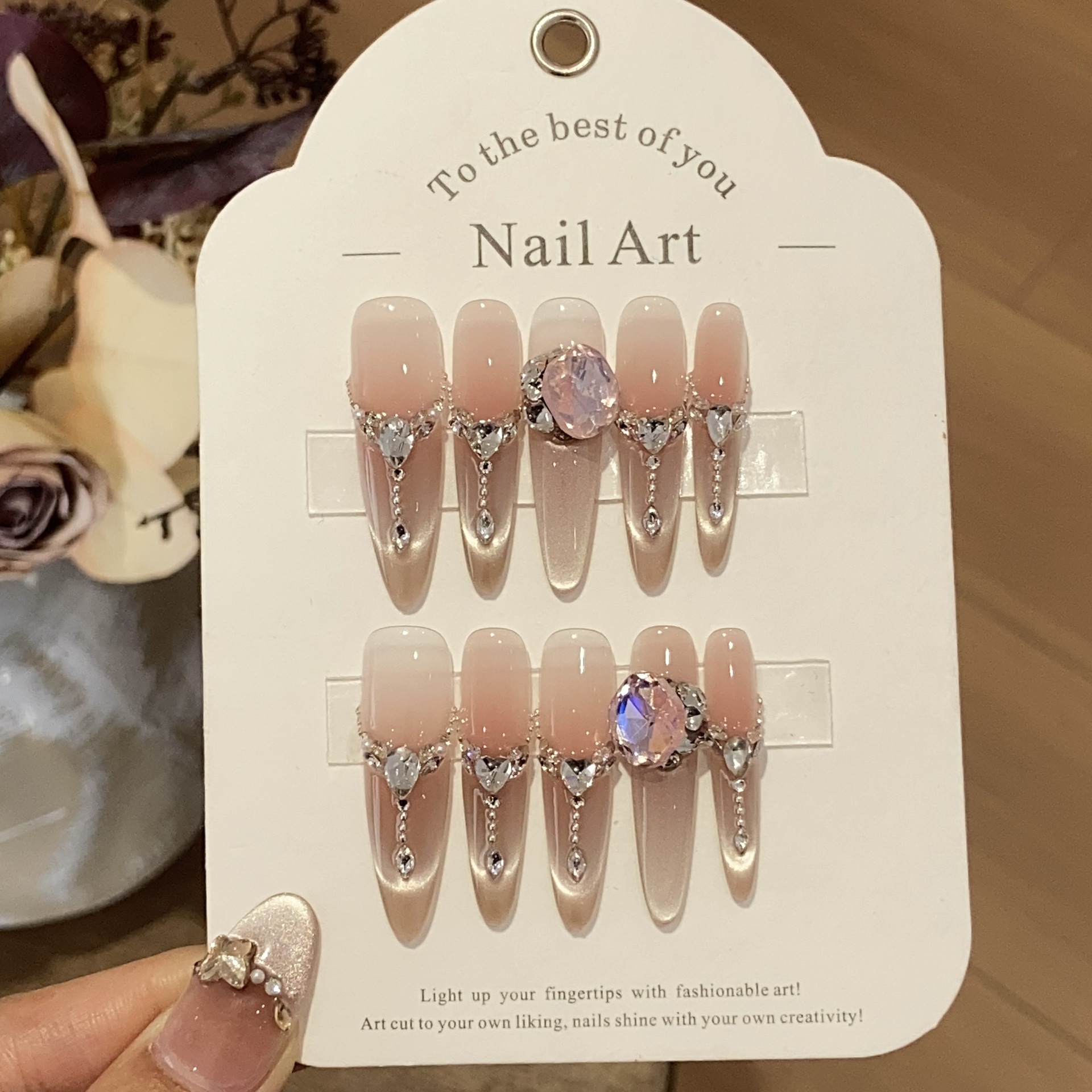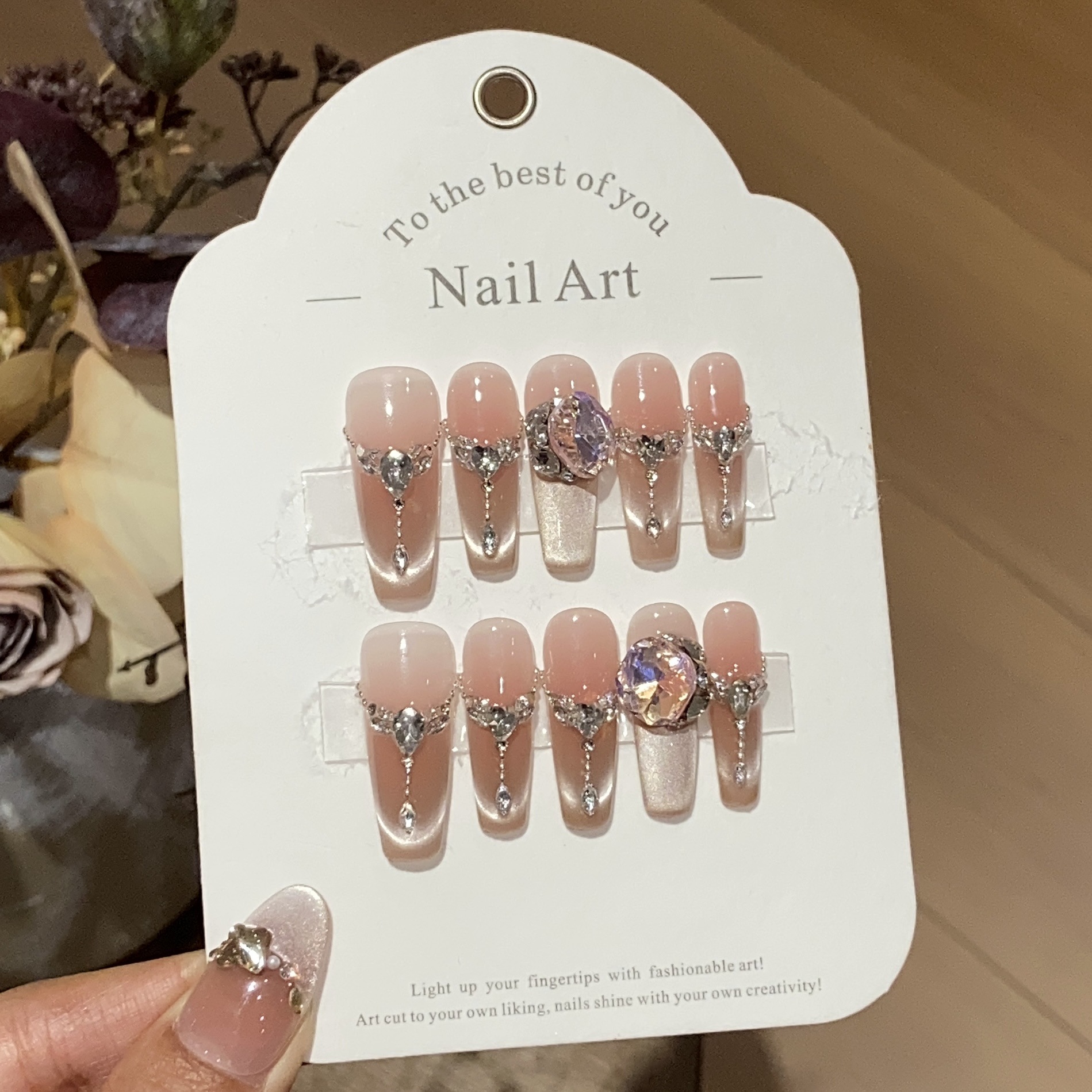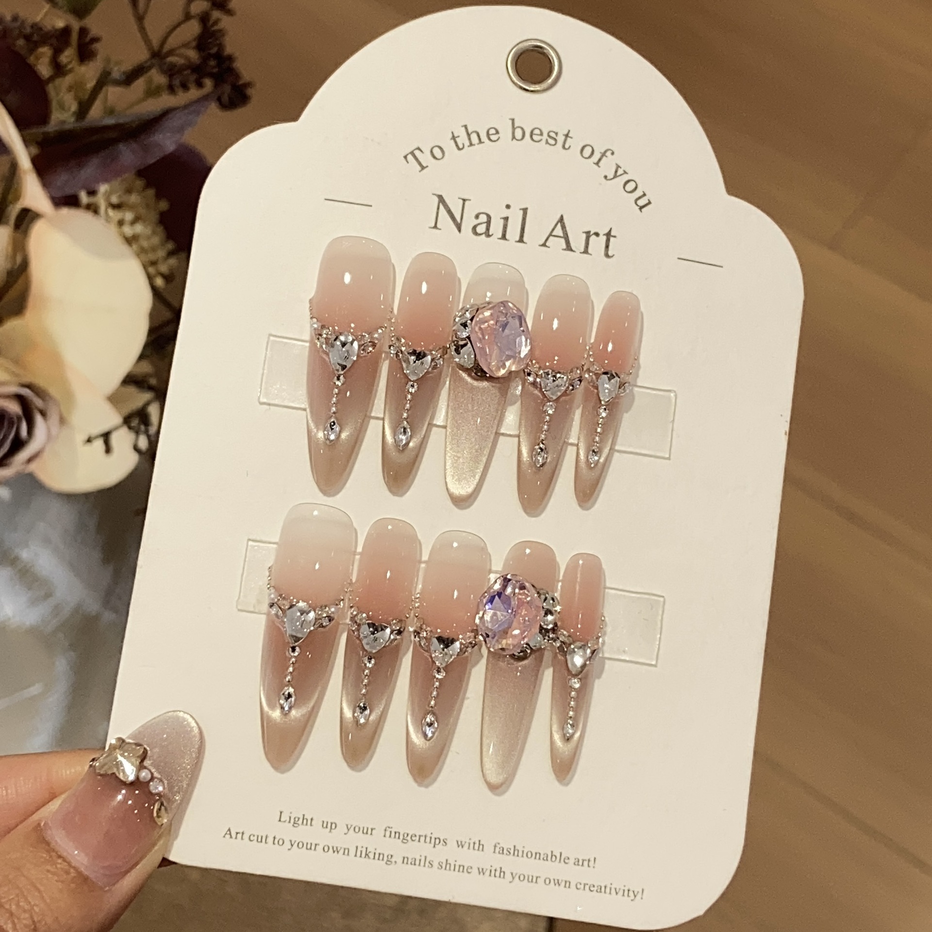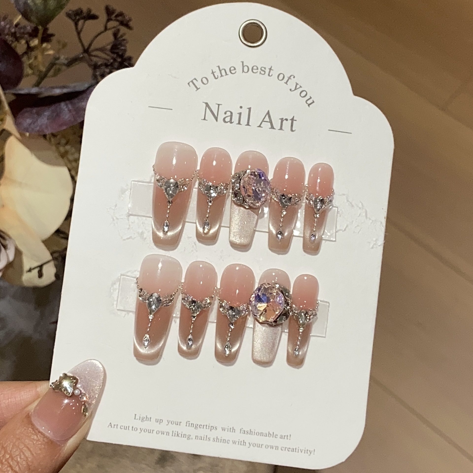 一只顾美甲 手工冰透裸色微笑猫眼合金链条精品K9仙女酵母穿戴甲