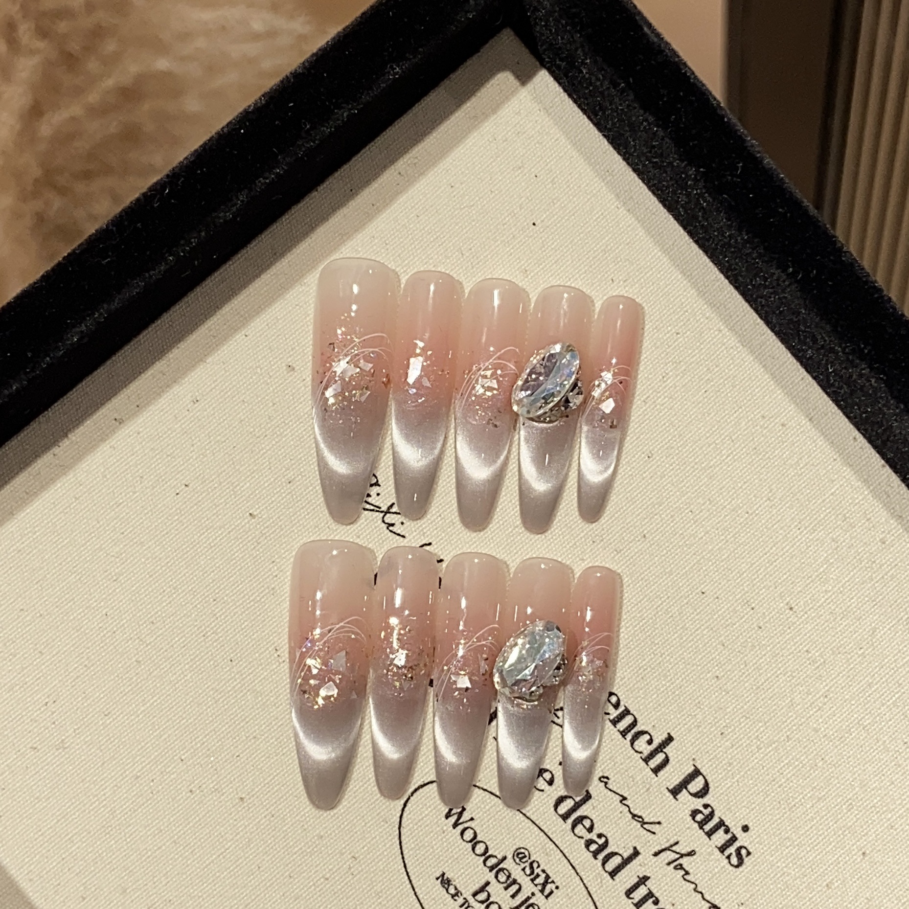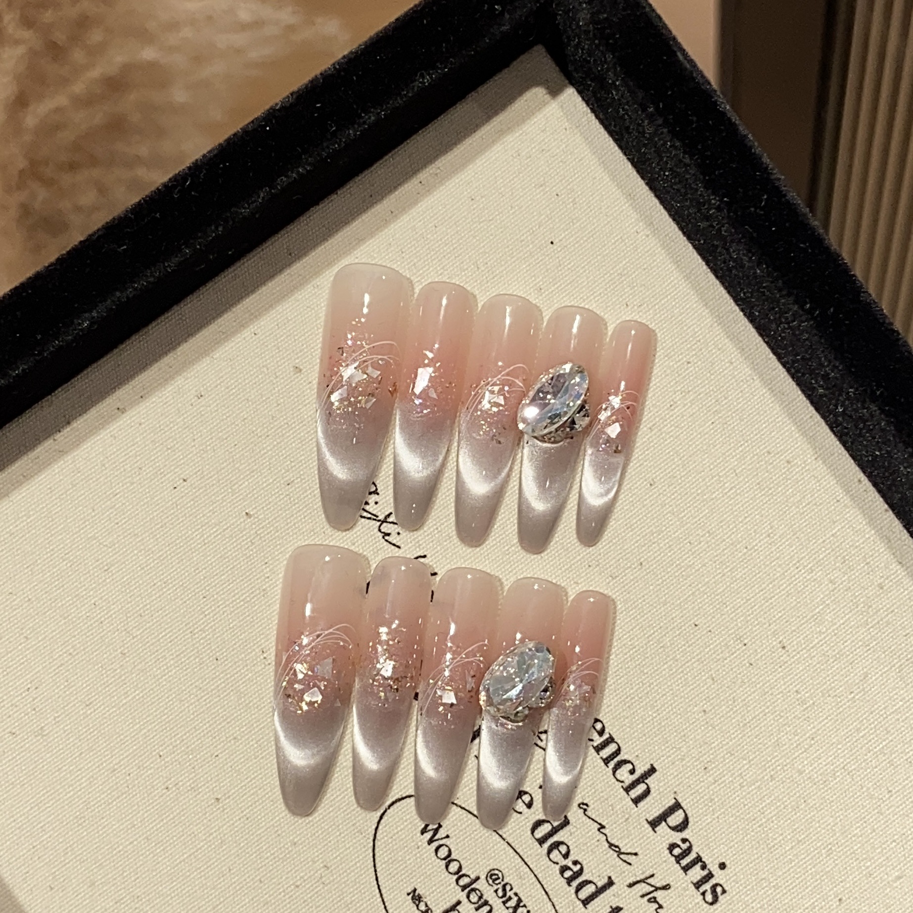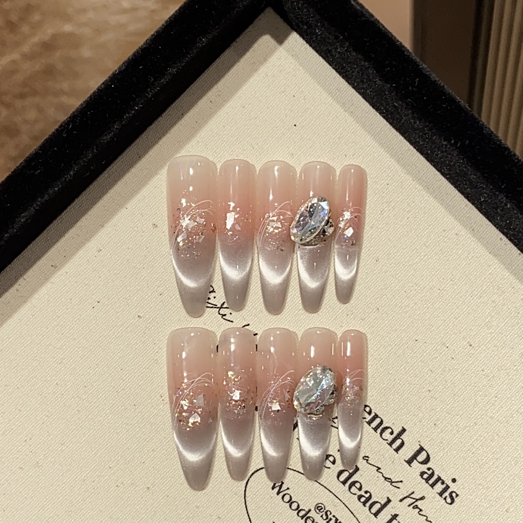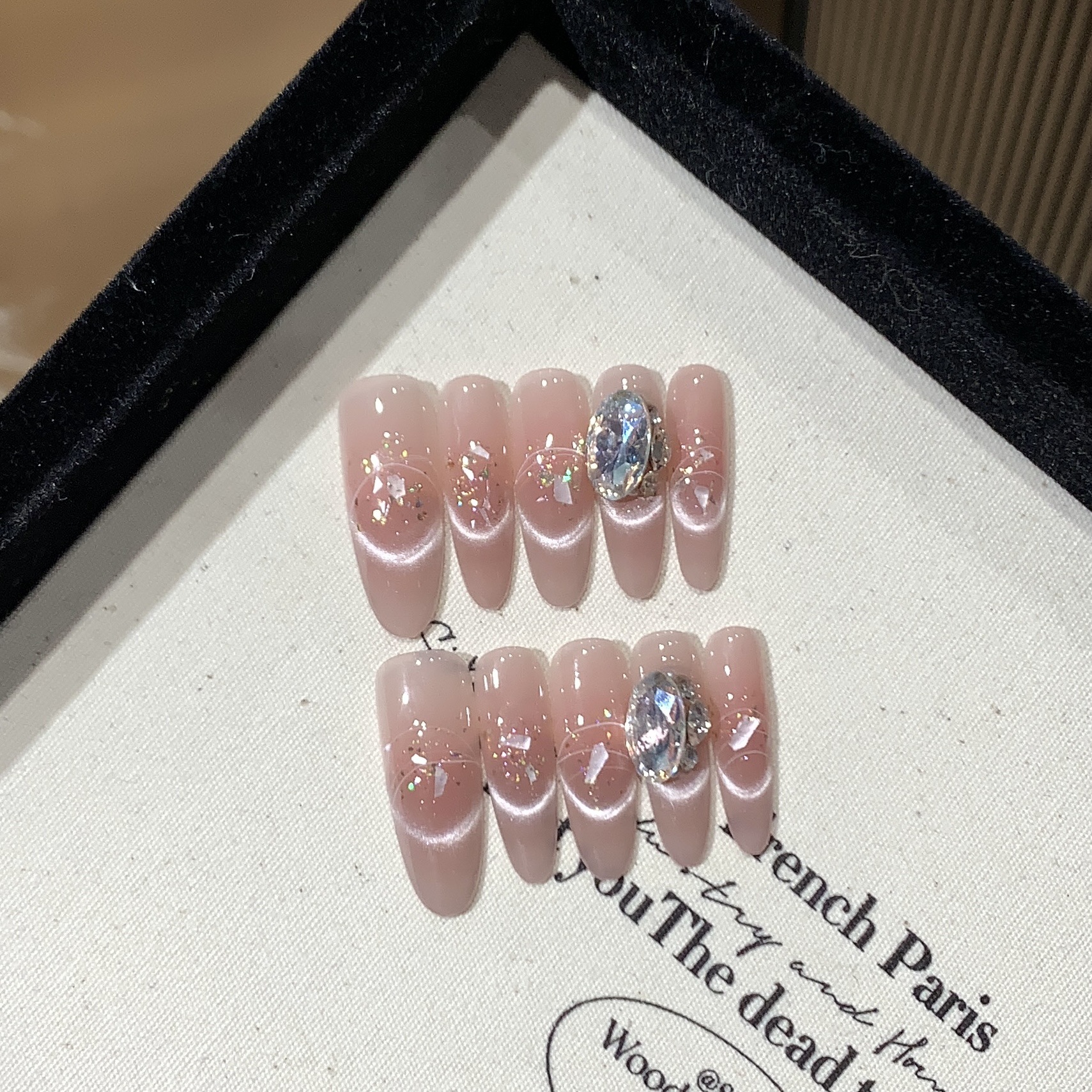 一只顾美甲 冰透渐变微笑猫眼亮片堆堆圆钻月神眷顾可拆卸穿戴甲
