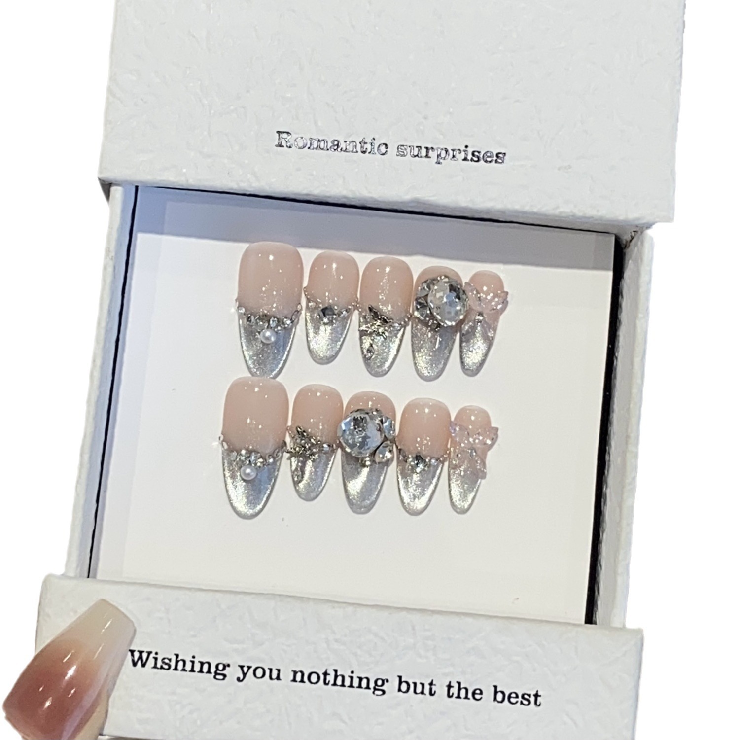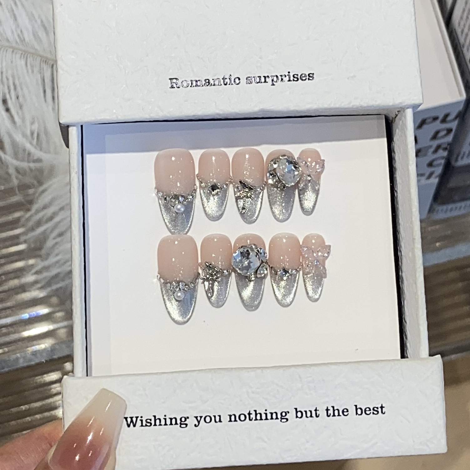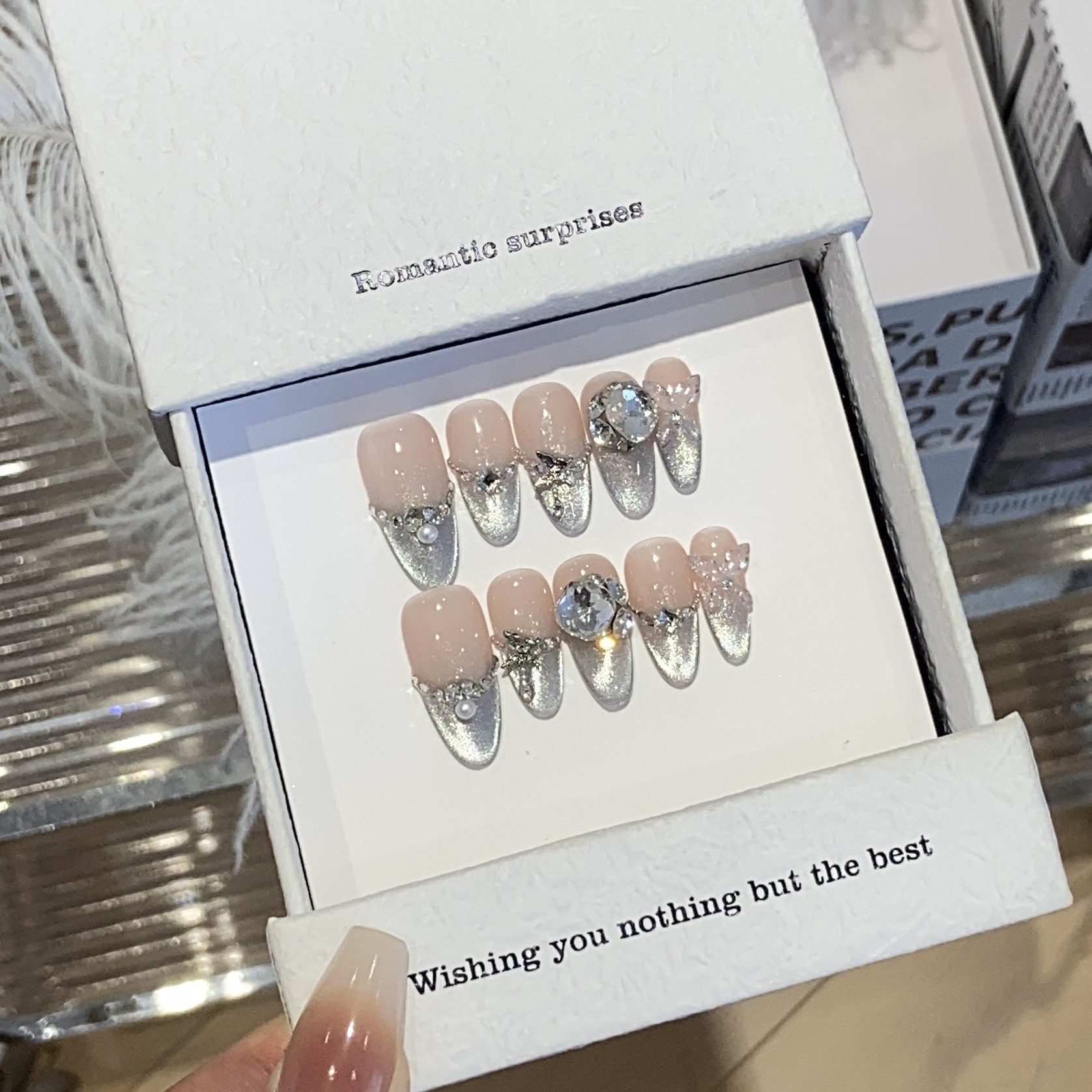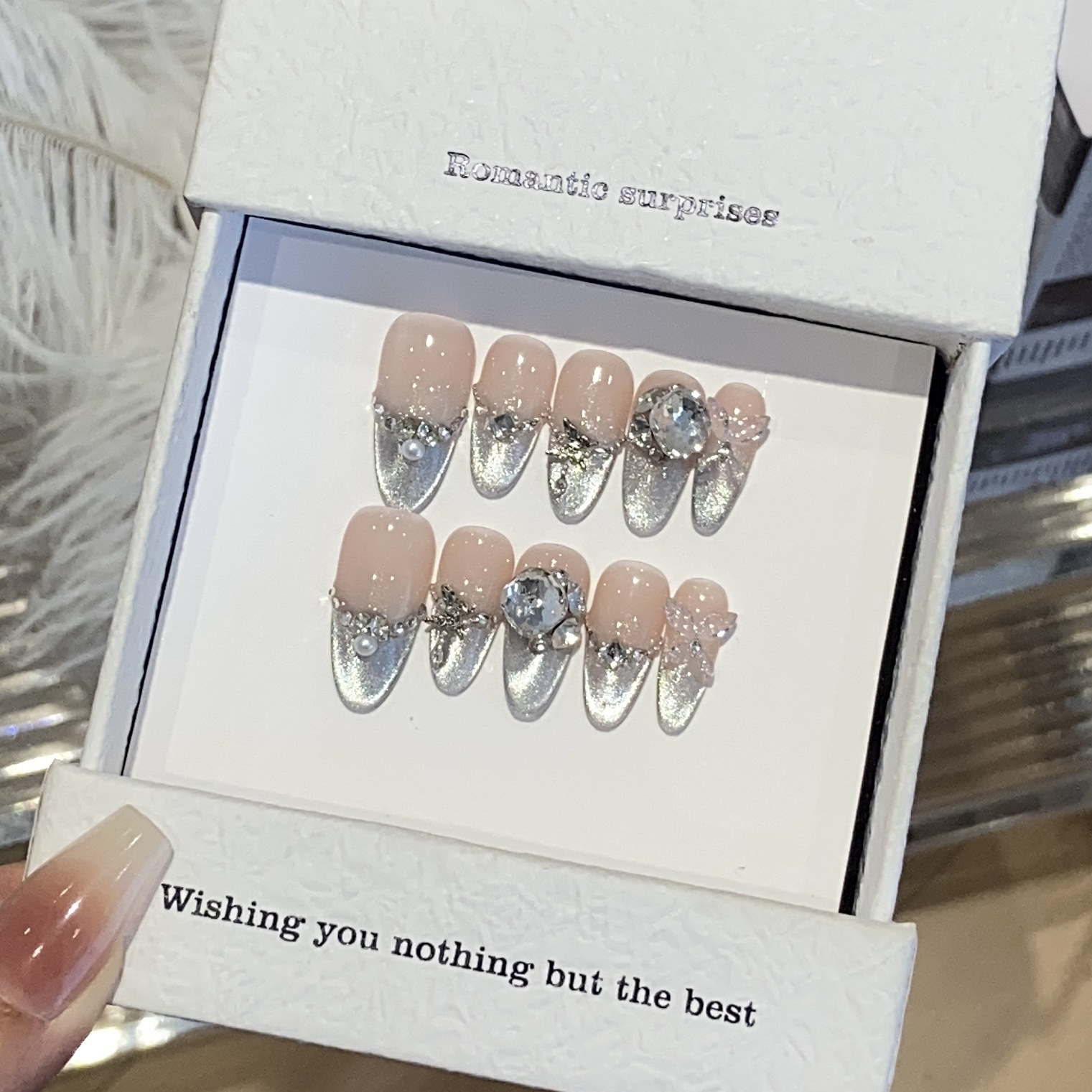 【手工美甲穿戴甲】秋冬新款光疗美甲贴片假指甲成品猫眼闪钻甲片