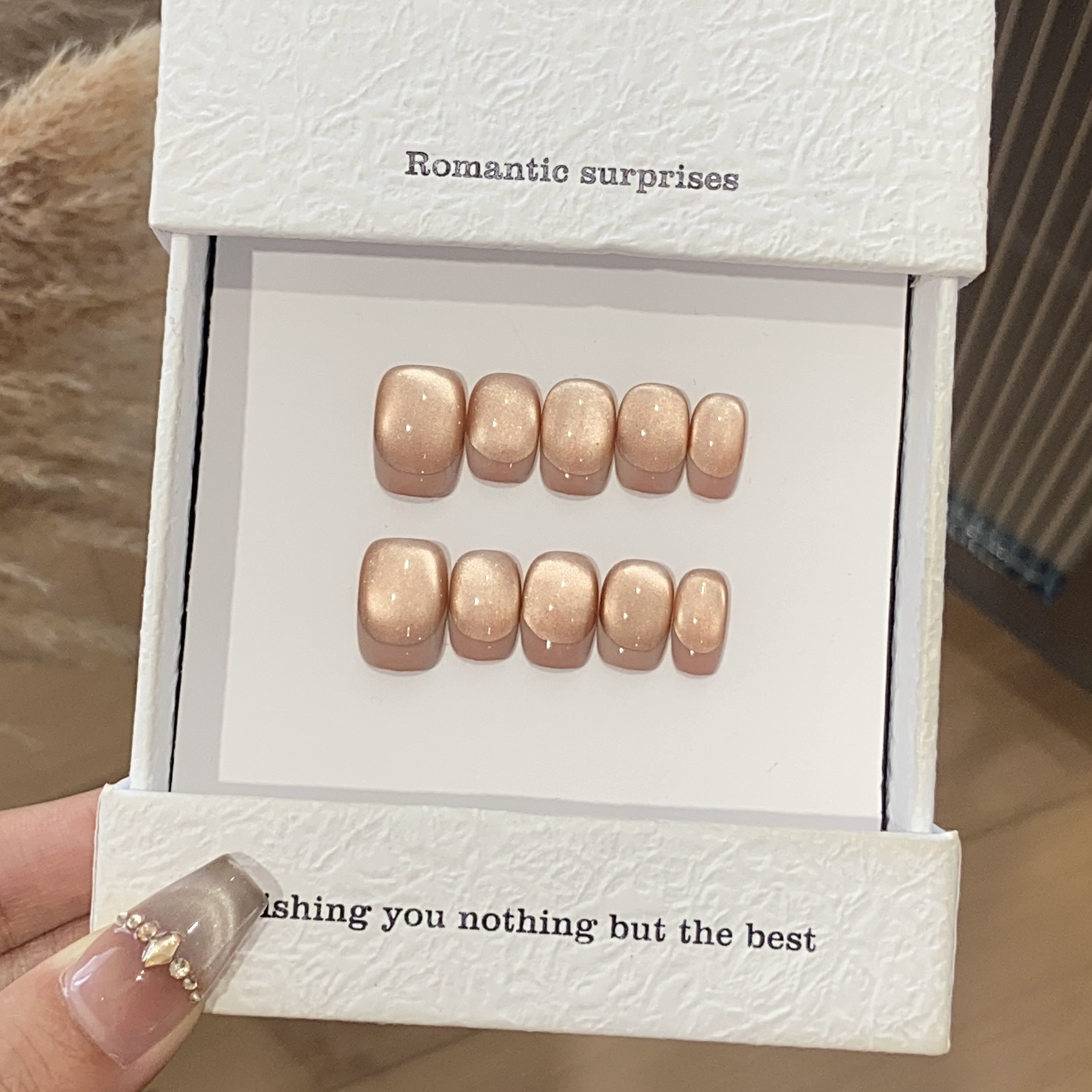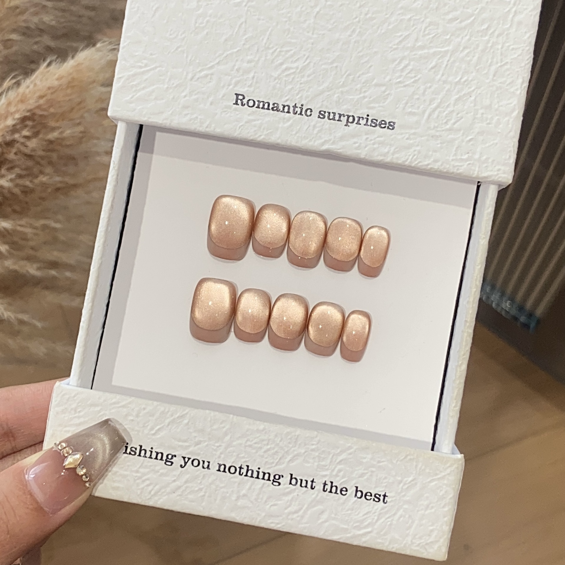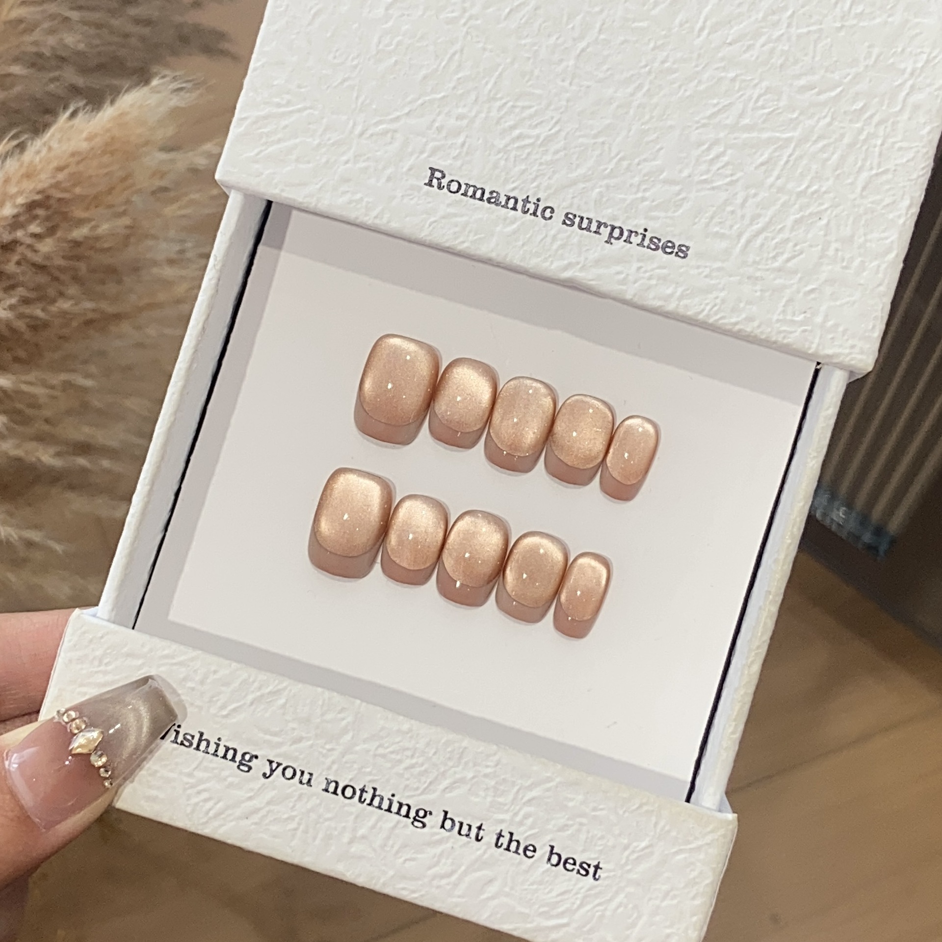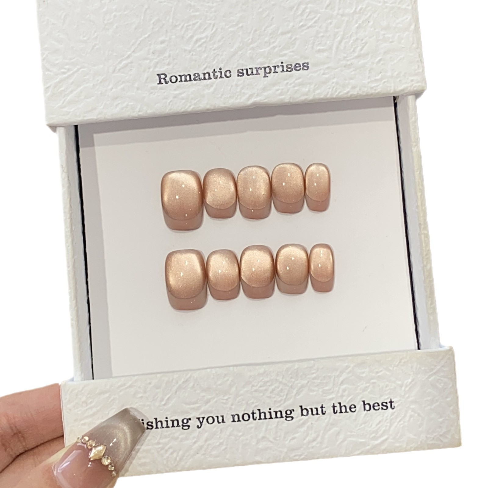 一只顾美甲 手工日常法式宽光猫眼小灯泡糖霜枣泥可拆卸穿戴甲片
