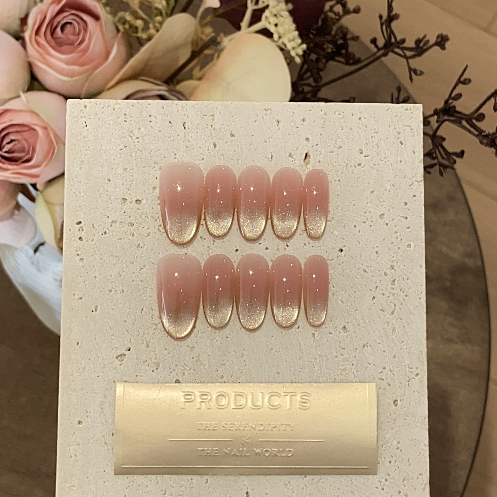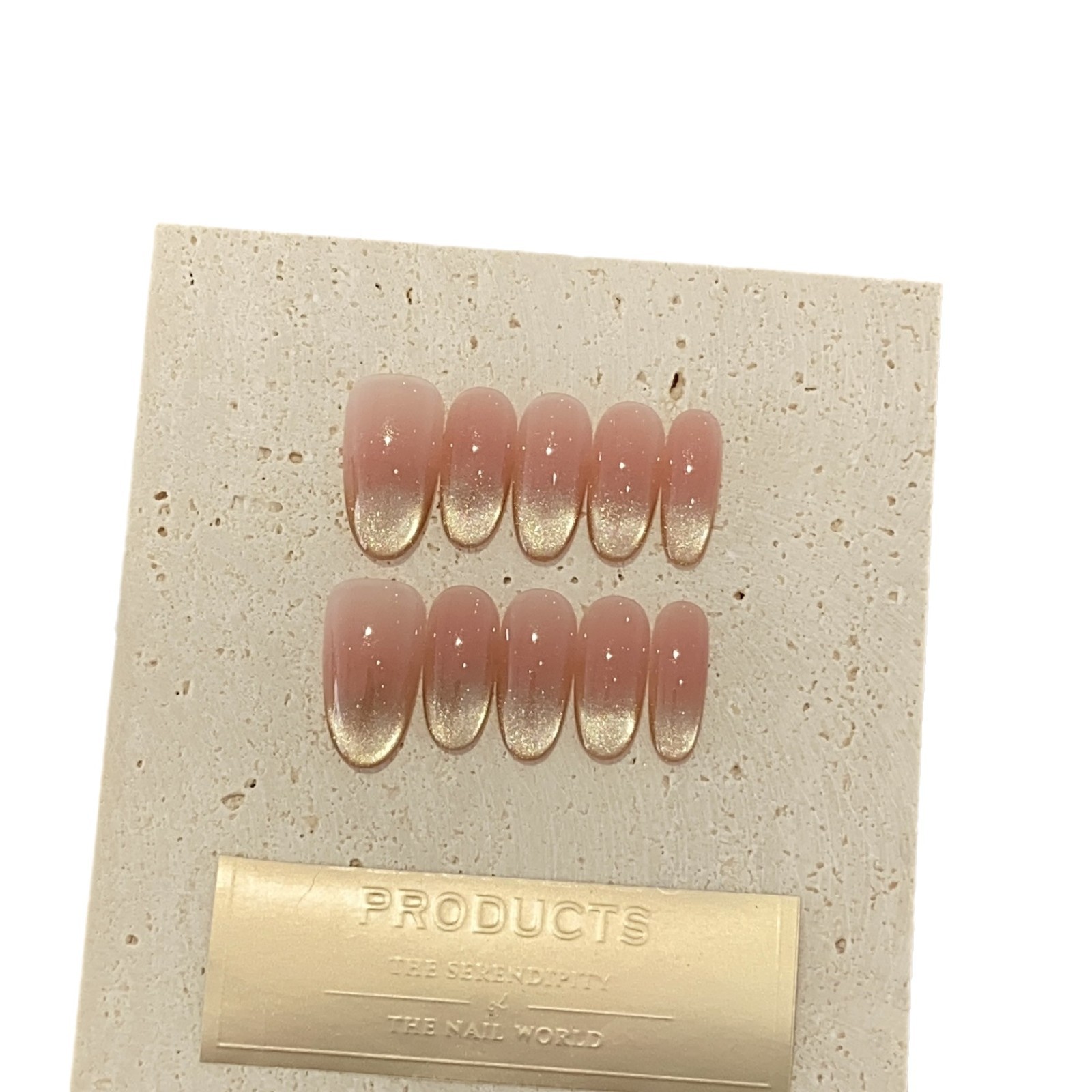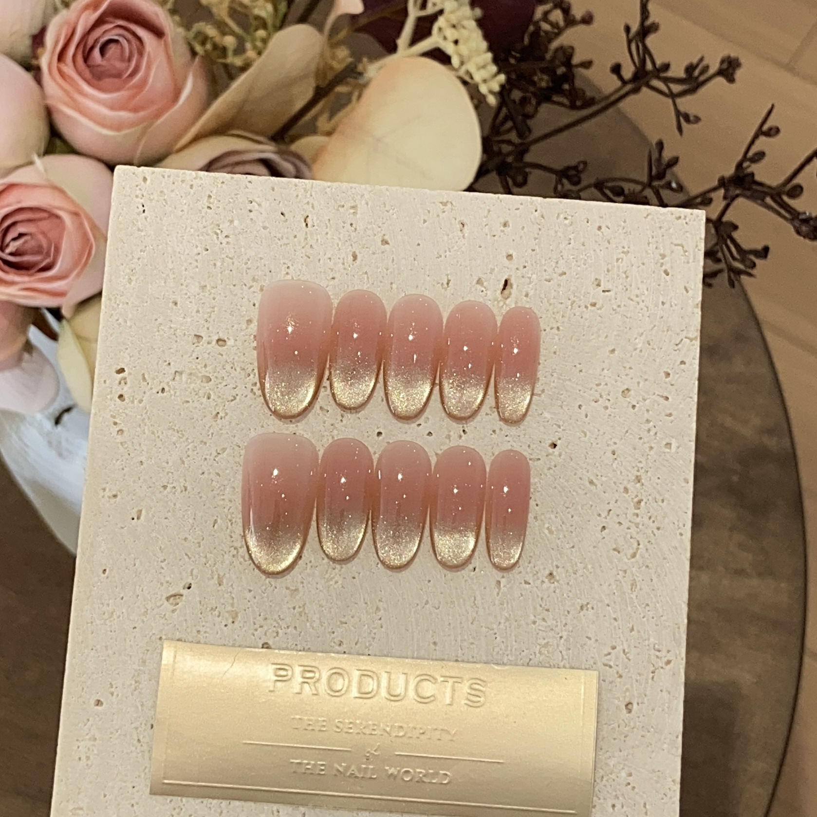 一只顾美甲 手工日常百搭裸粉渐变金猫眼细闪满天星可拆卸穿戴甲