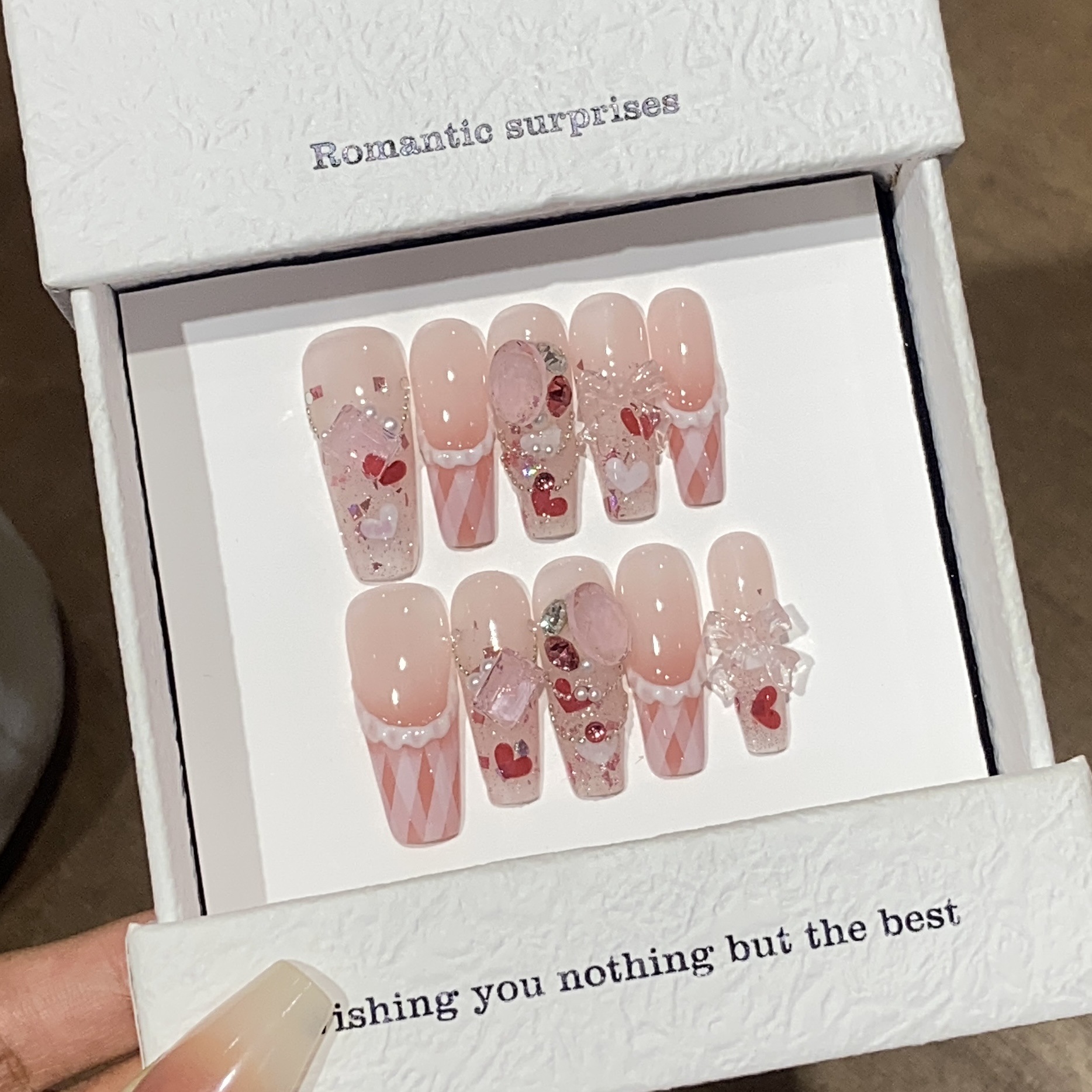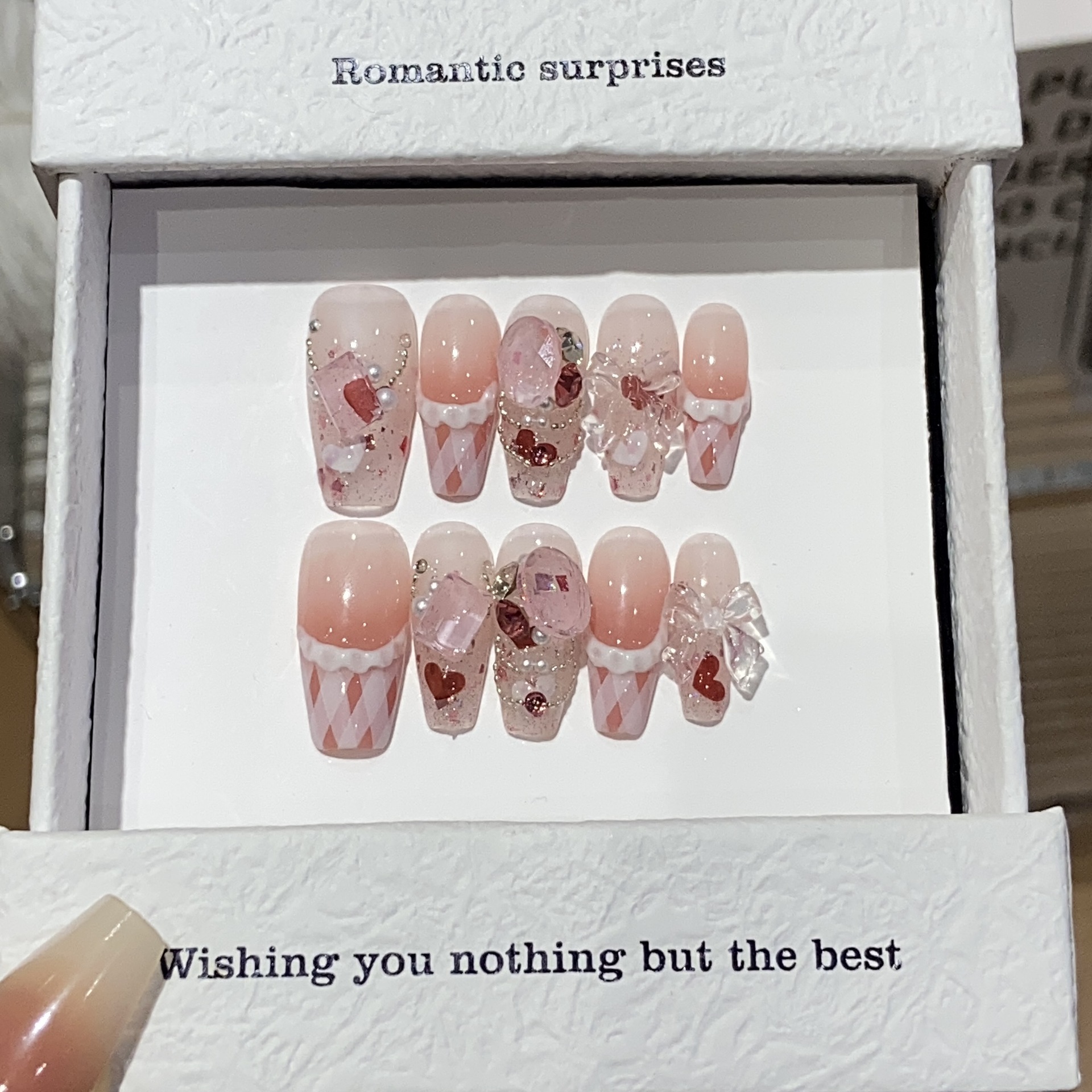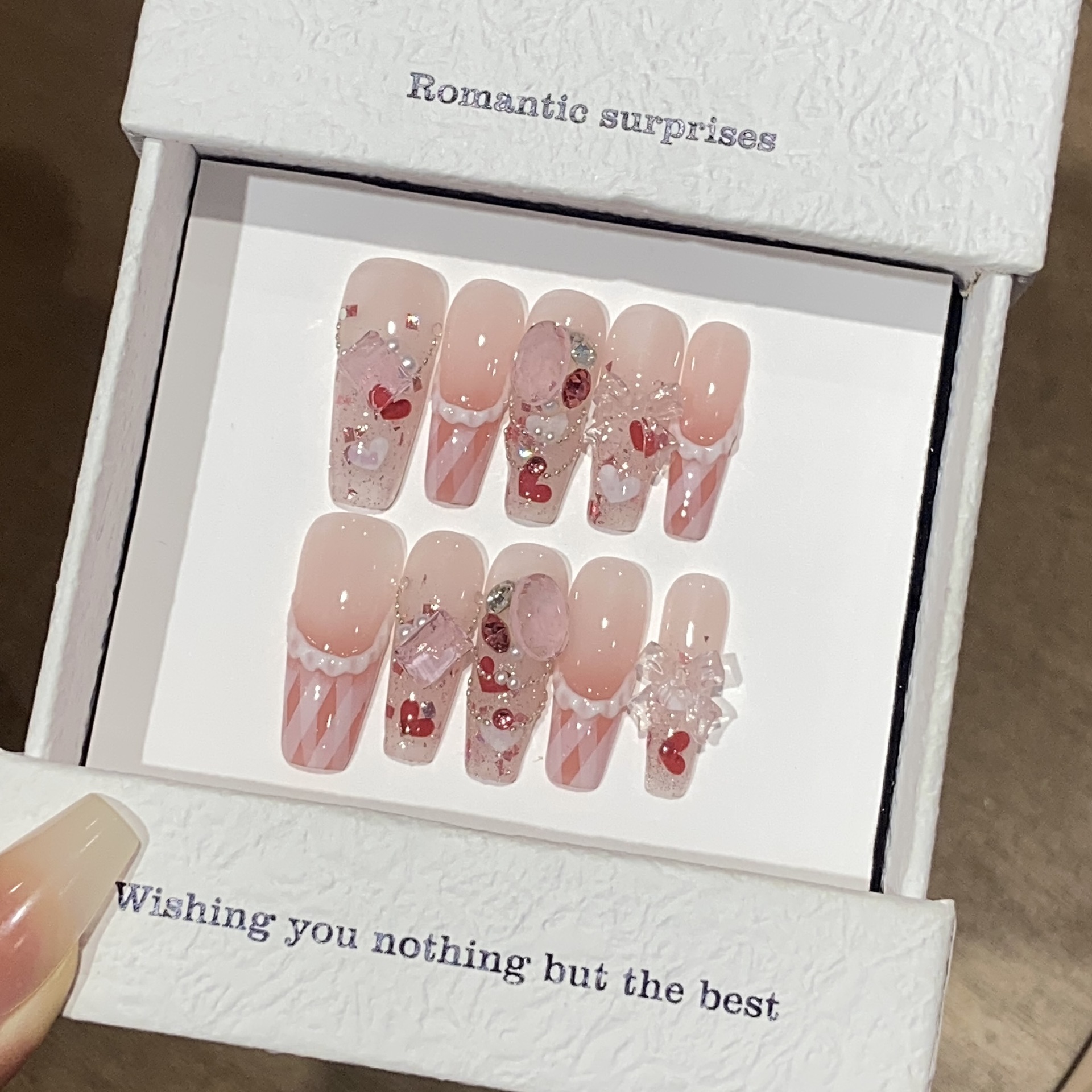 纯手工穿戴甲可拆卸光疗甲气质纯欲简约风透底桃桃美甲贴奶油桃桃