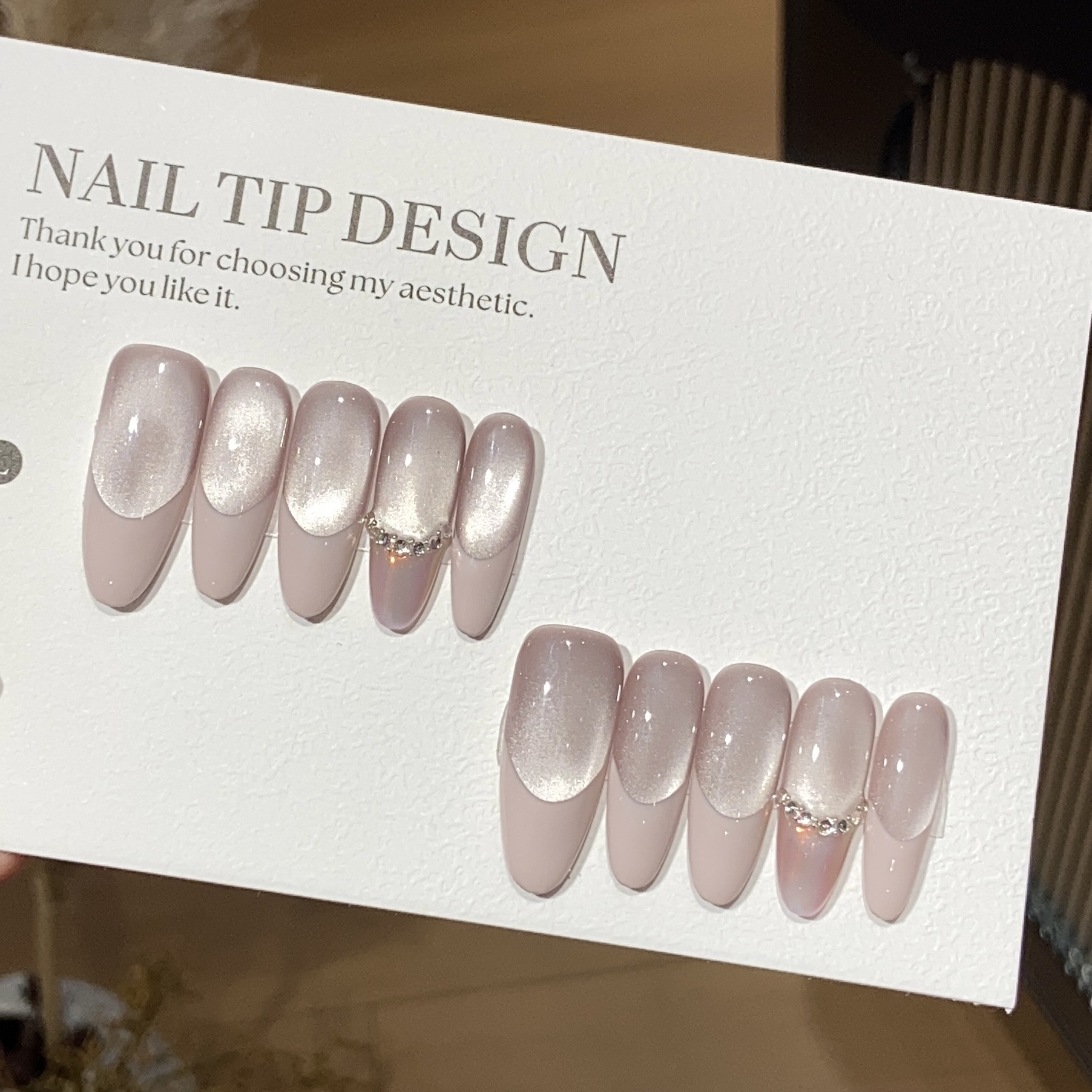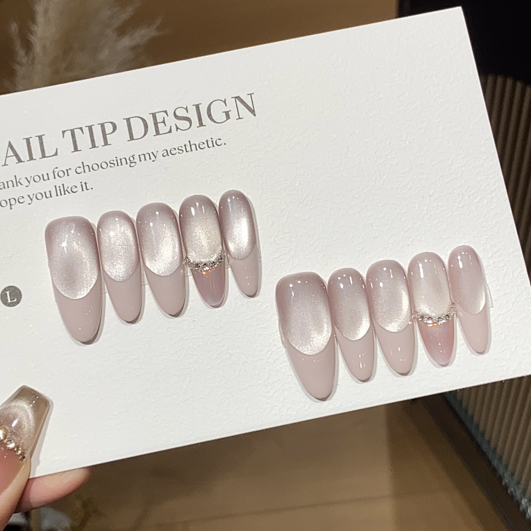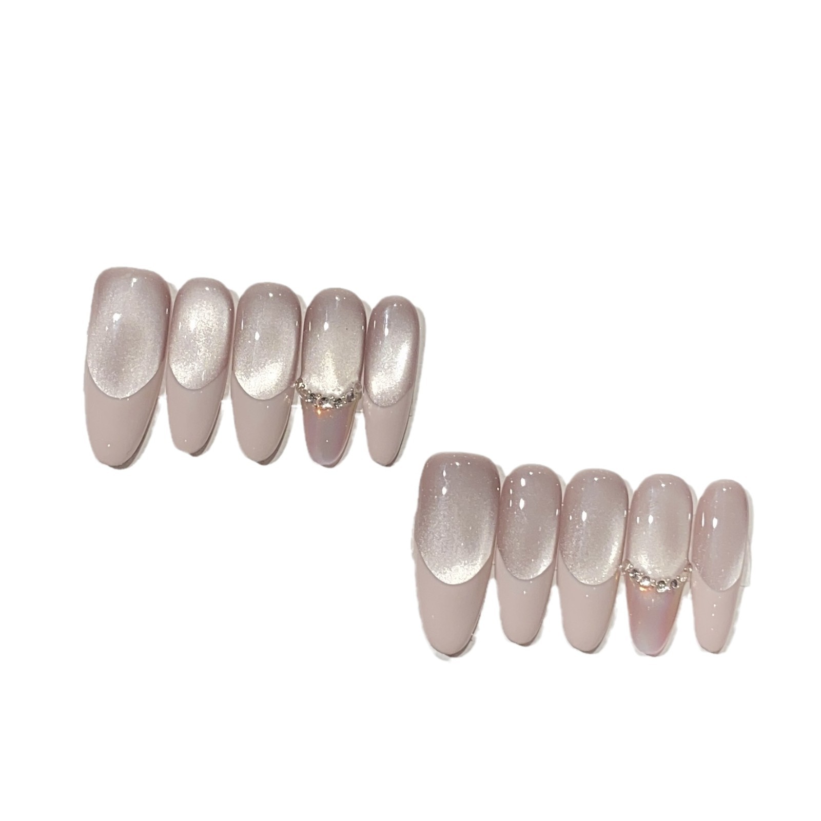 一只顾美甲 纯手工粉色法式小灯泡猫眼法式堆钻极光粉普拉多贴片