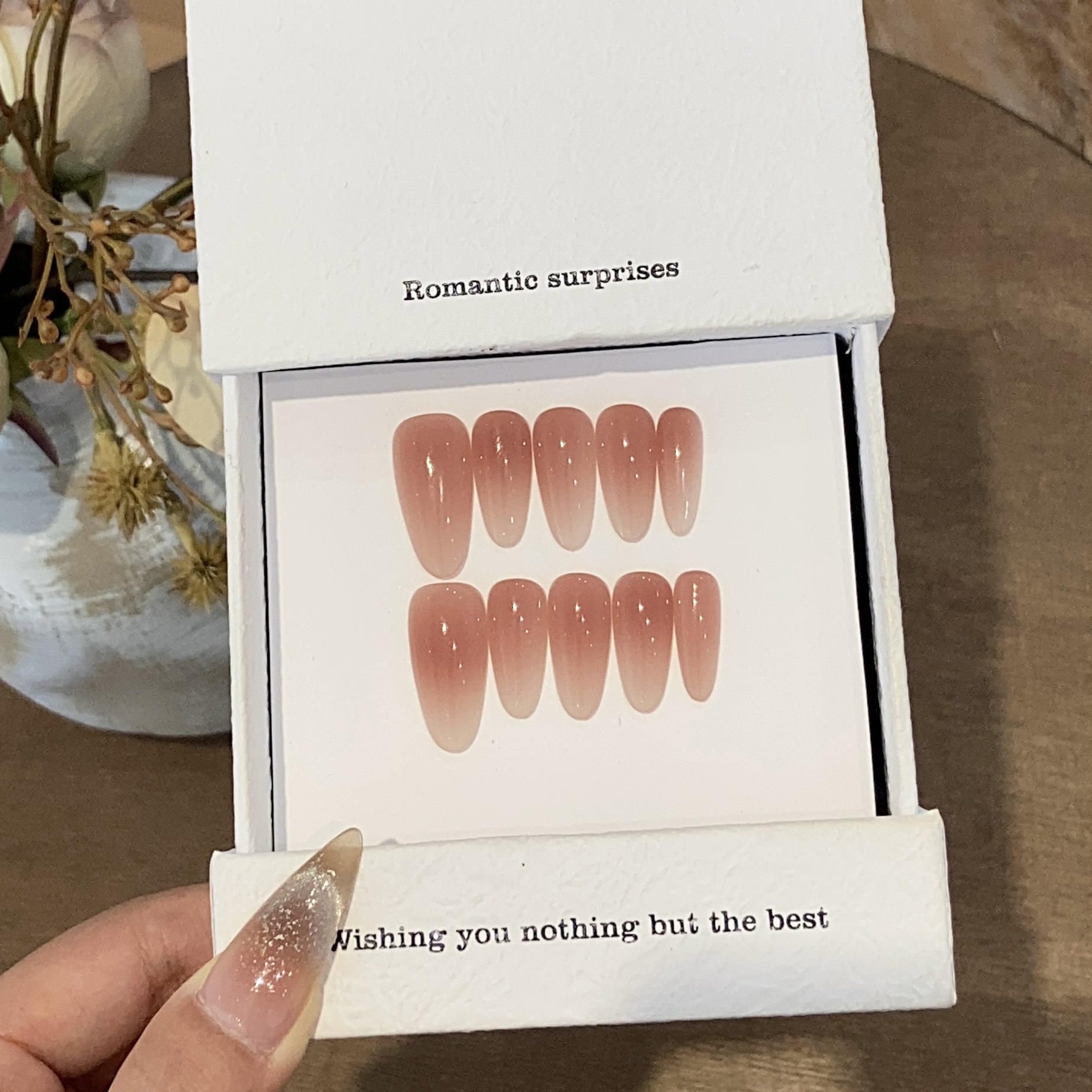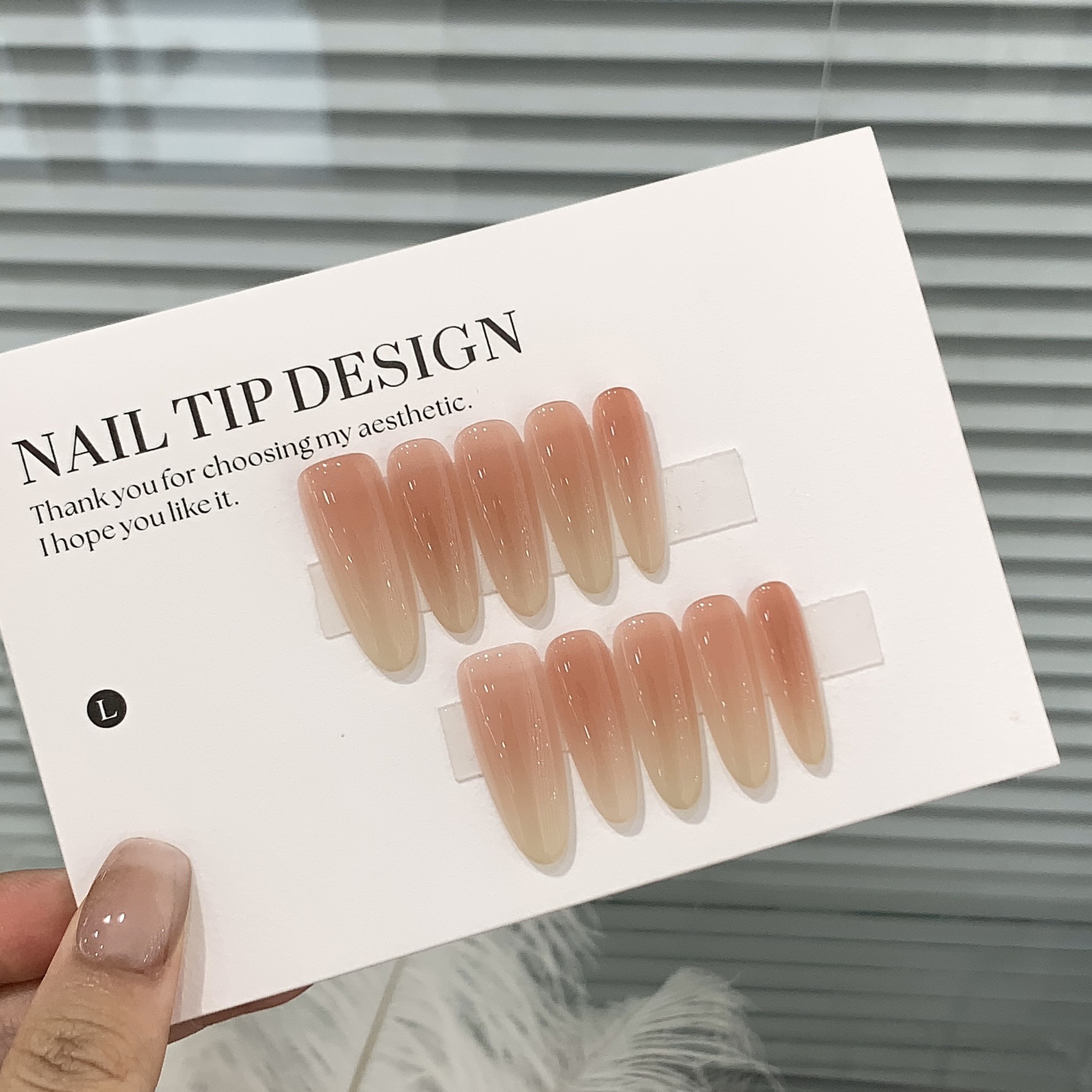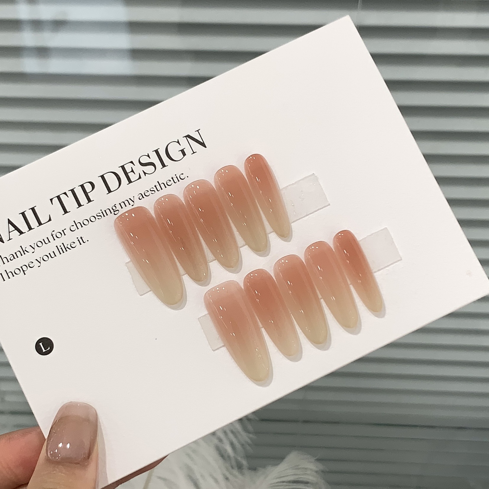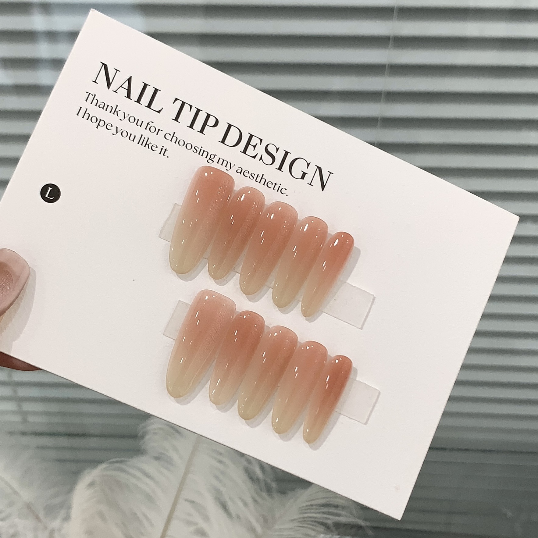 一只顾美甲 简约纯色高级冰透渐变水蜜桃百搭嬛嬛甲贴片穿戴甲